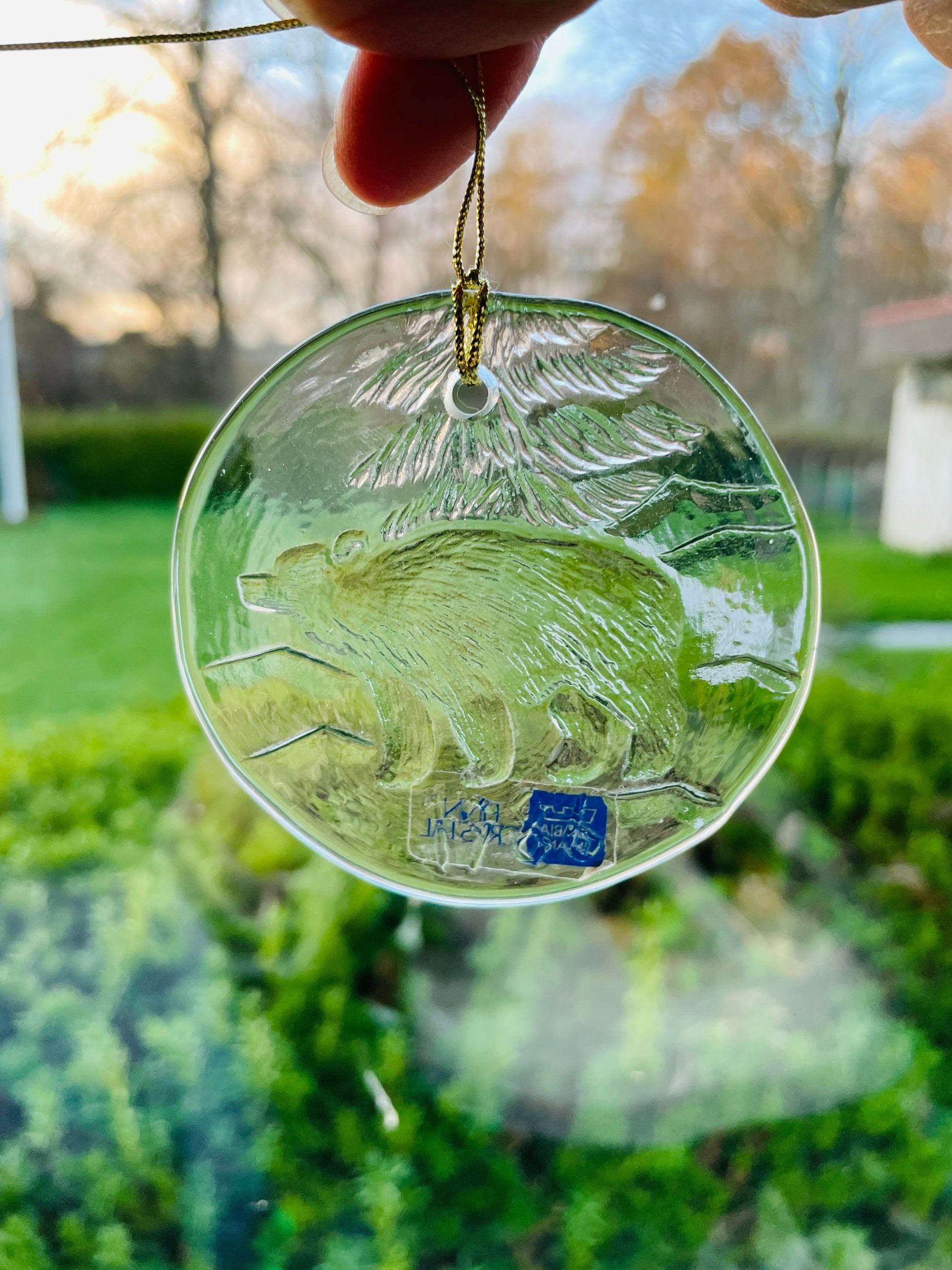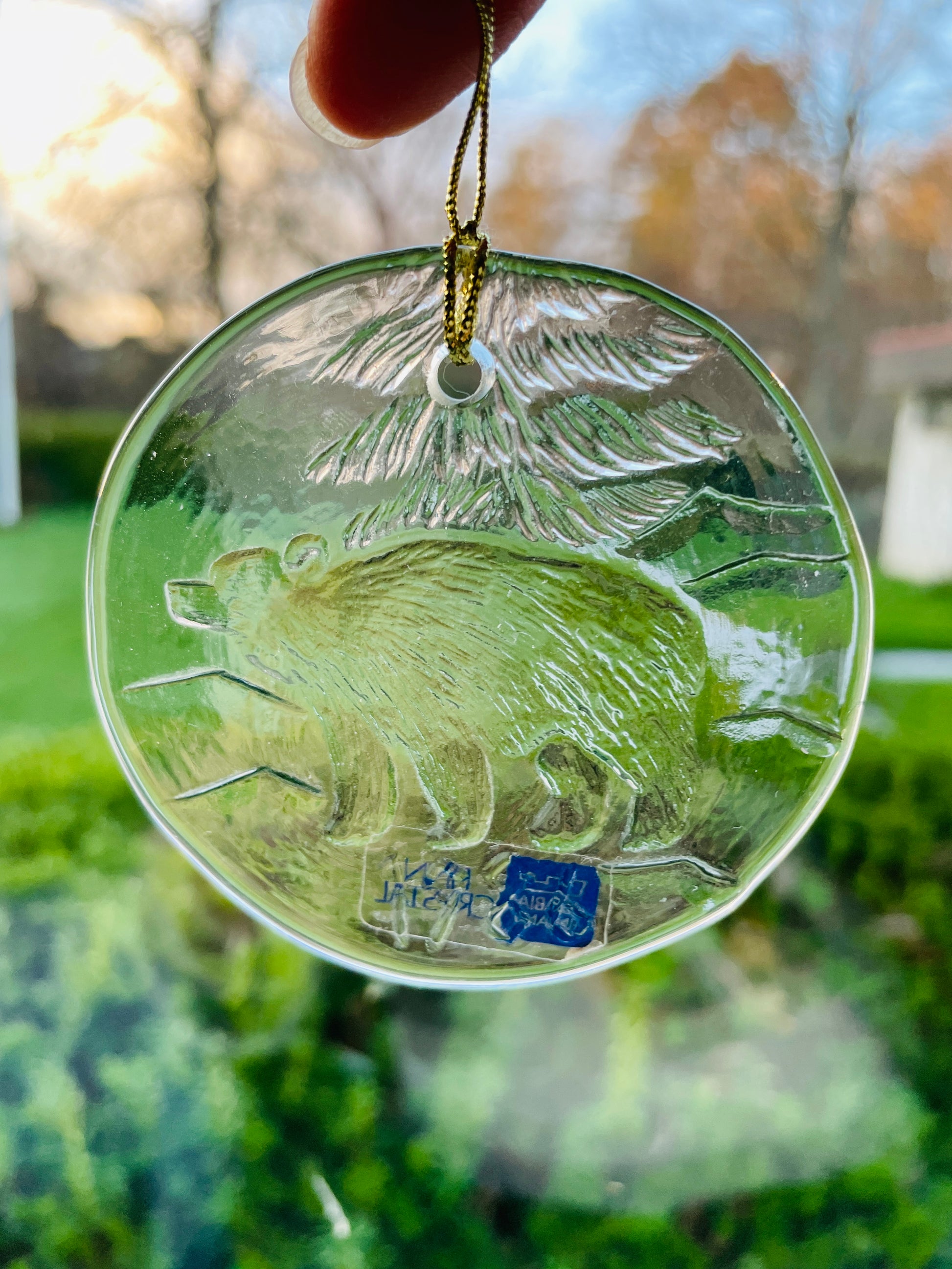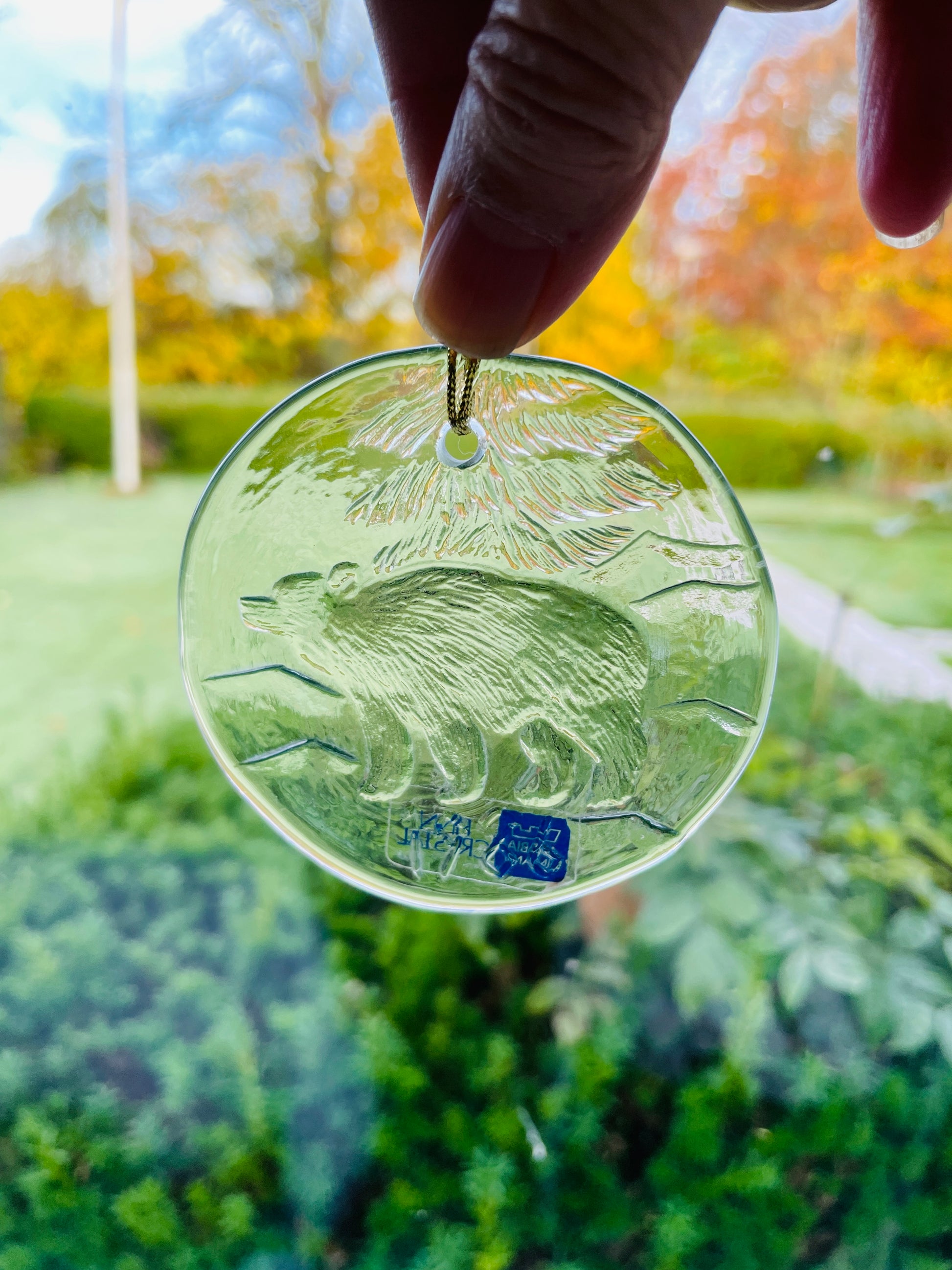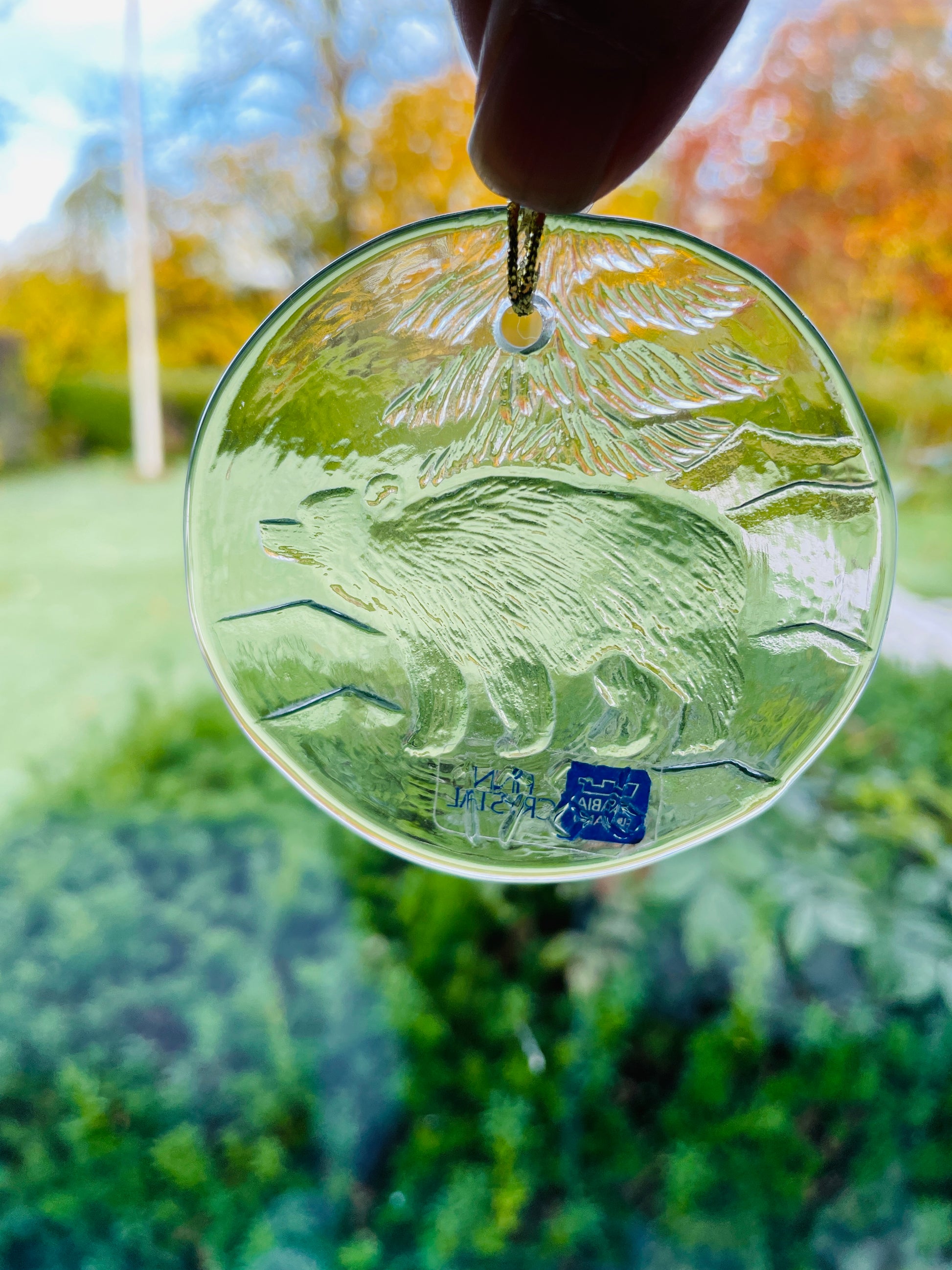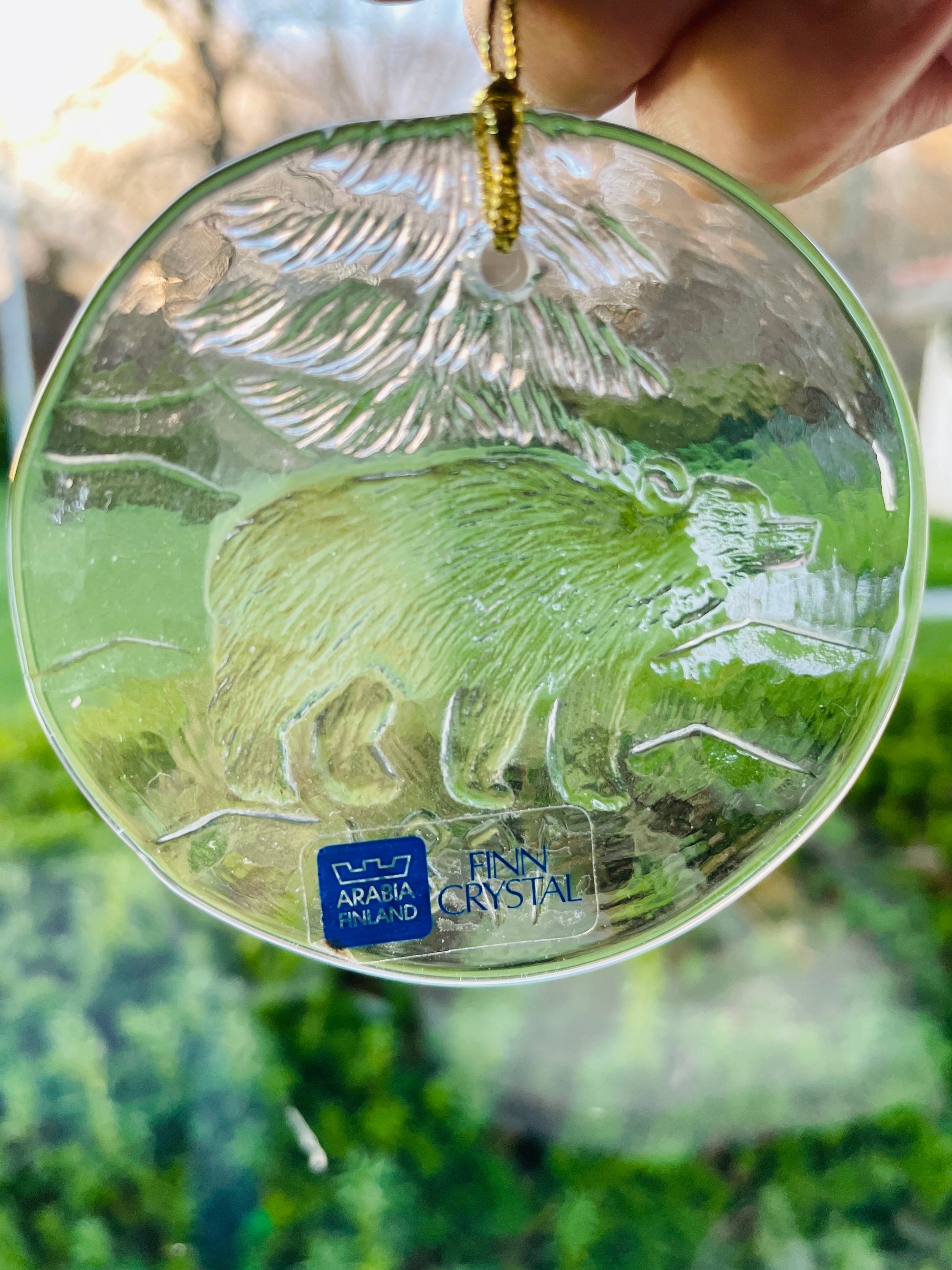 Arabia/アラビアよりクリスタルガラスのツリーに飾るオーナメントのご紹介です。森のクマさんをレリーフのように細かく描写した、ハンドメイドのガラスのオーナメントです。