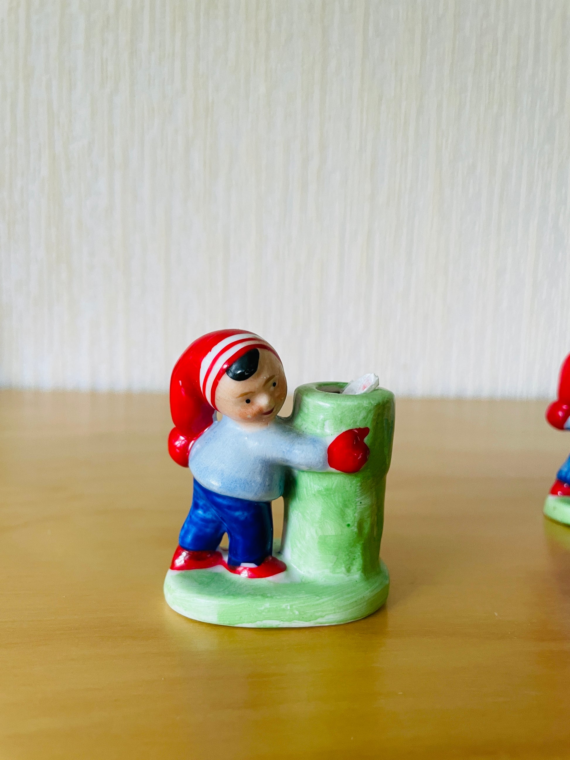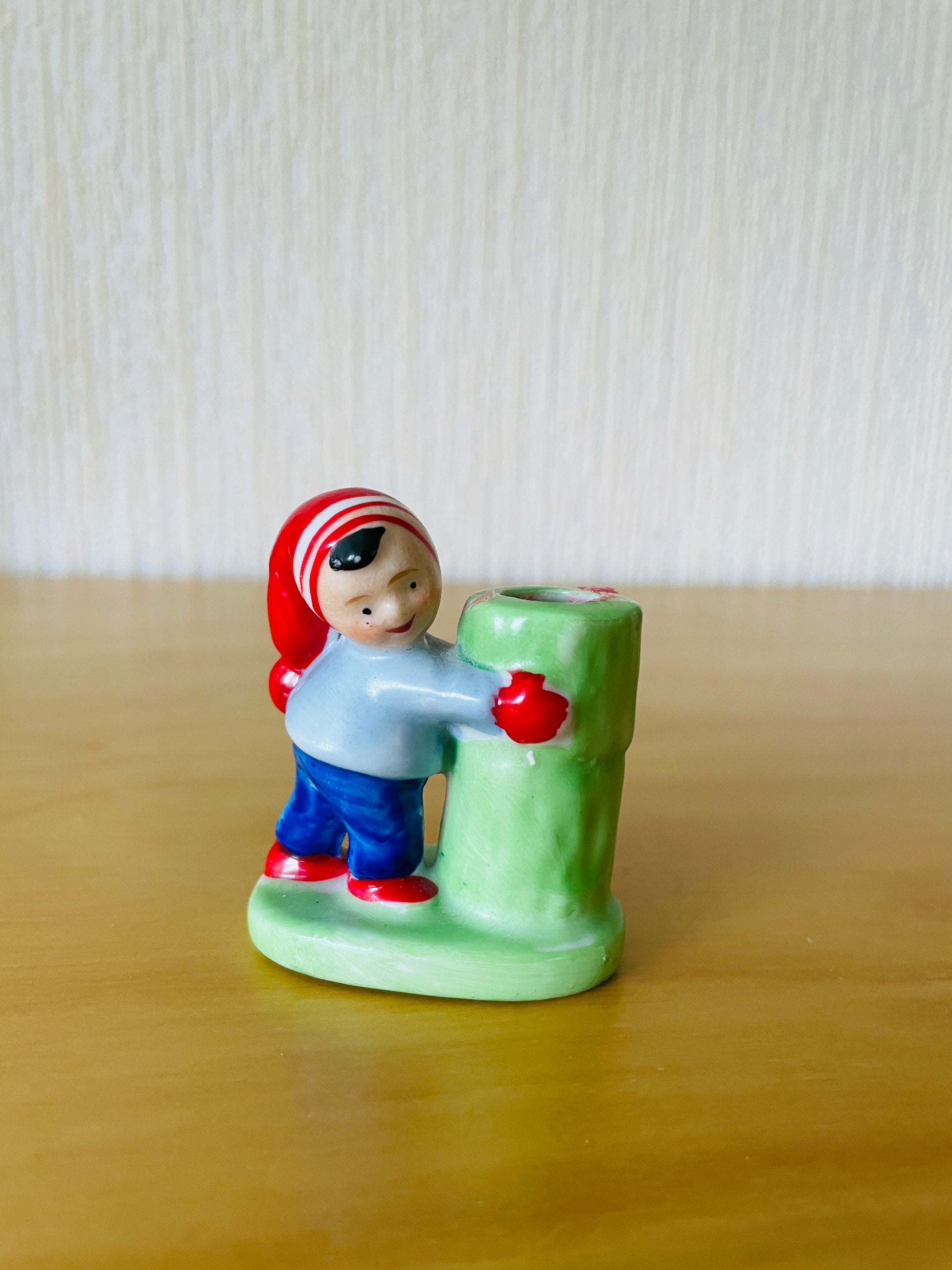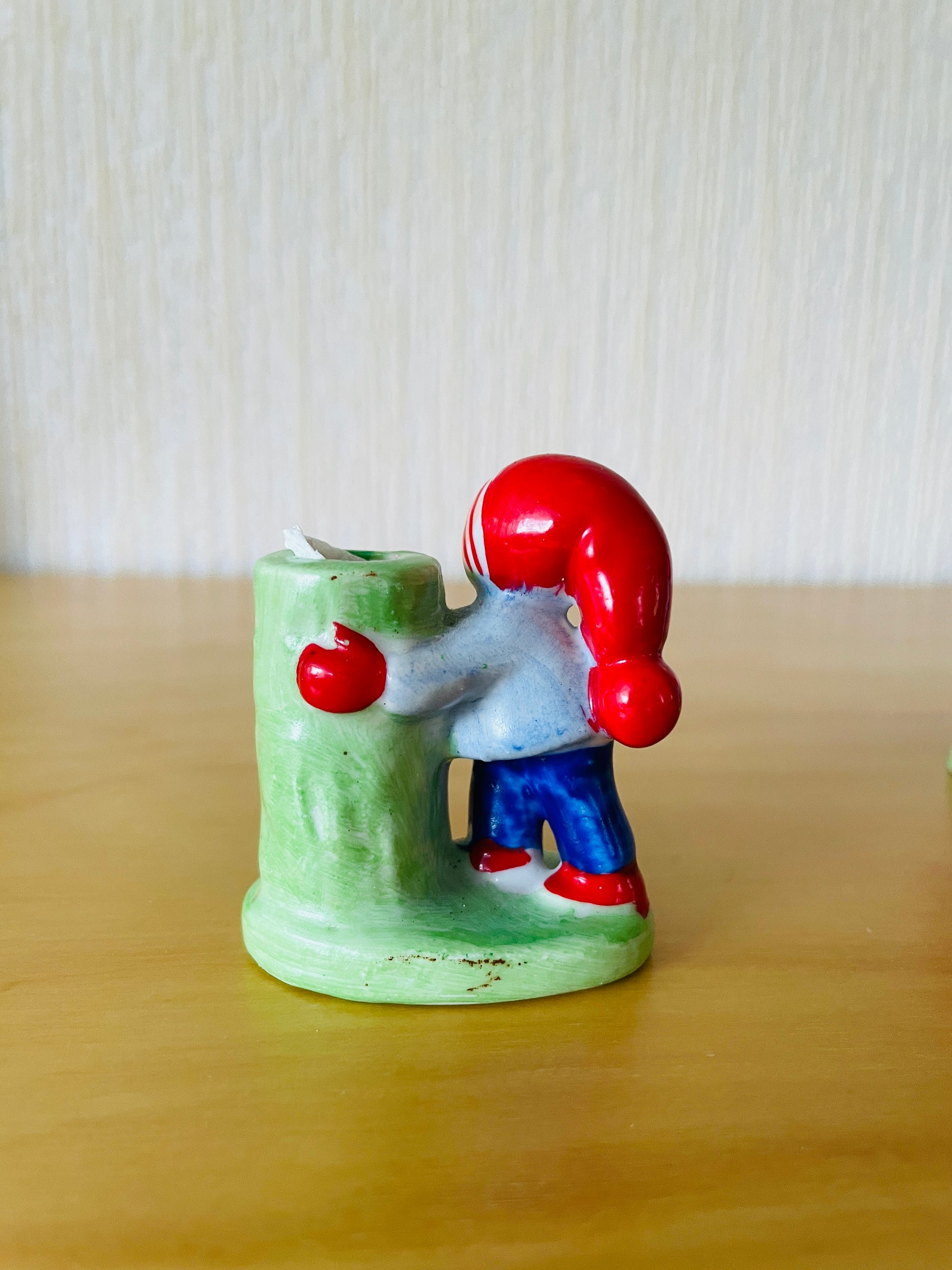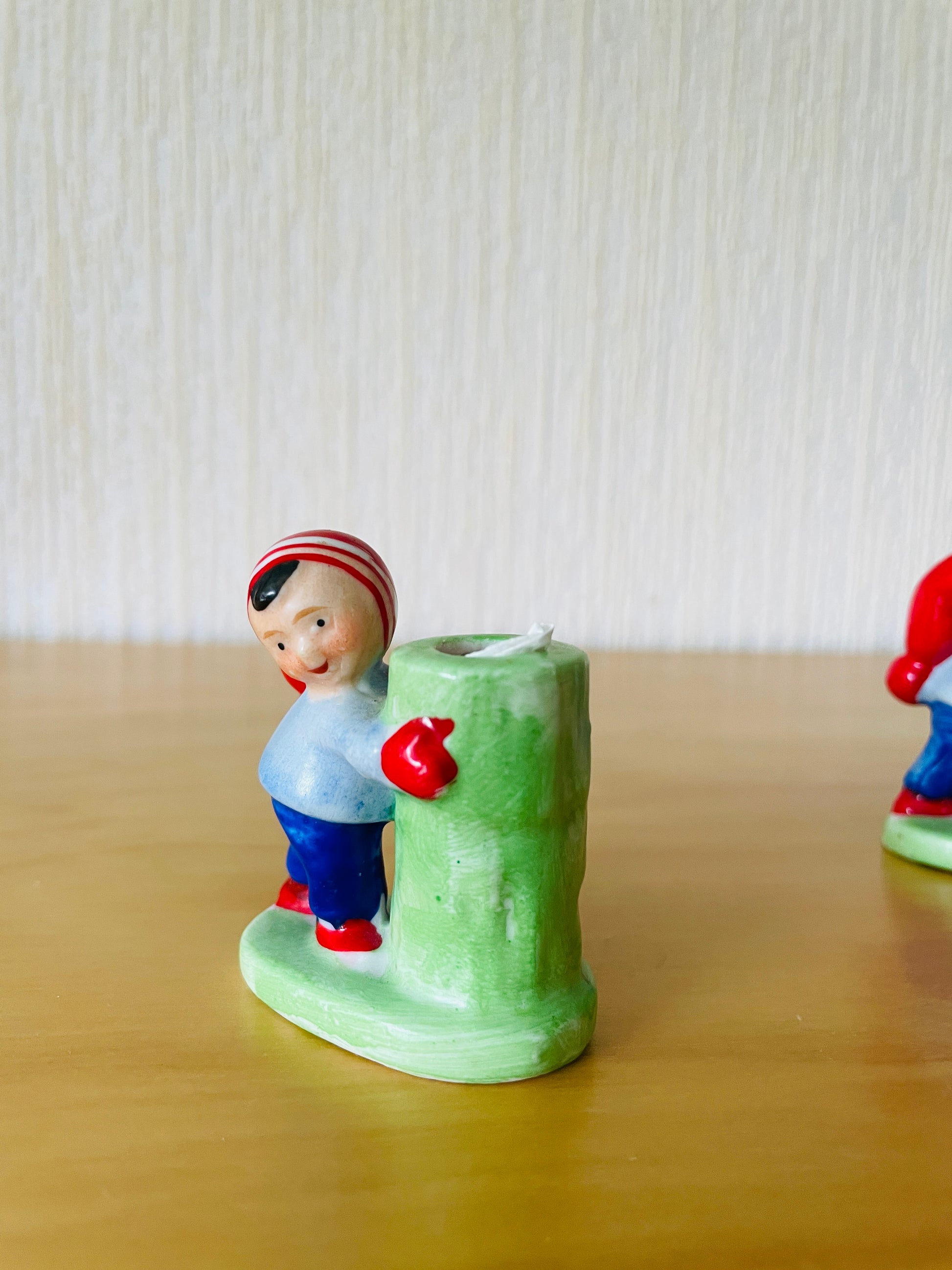 ミニキャンドルシリーズで小さな男の子がツリーを持っている、可愛らしいキャンドルスタンドです。今回、色々なミニキャンドルスタンドをご紹介していますが、どちらも1900年代初期に日本より輸出されたハンドペイントのキャンドルスタンドです。当時は日本のハンドペイントのカップ&ソーサーやクリスマスに向けた飾り物などがとてもヨーロッパやスウエーデンの人たちに好まれていたようです。日本では売られていない物なので、とても希少なものになります。こちらに合うキャンドルをおつけします。2個の在庫があります。