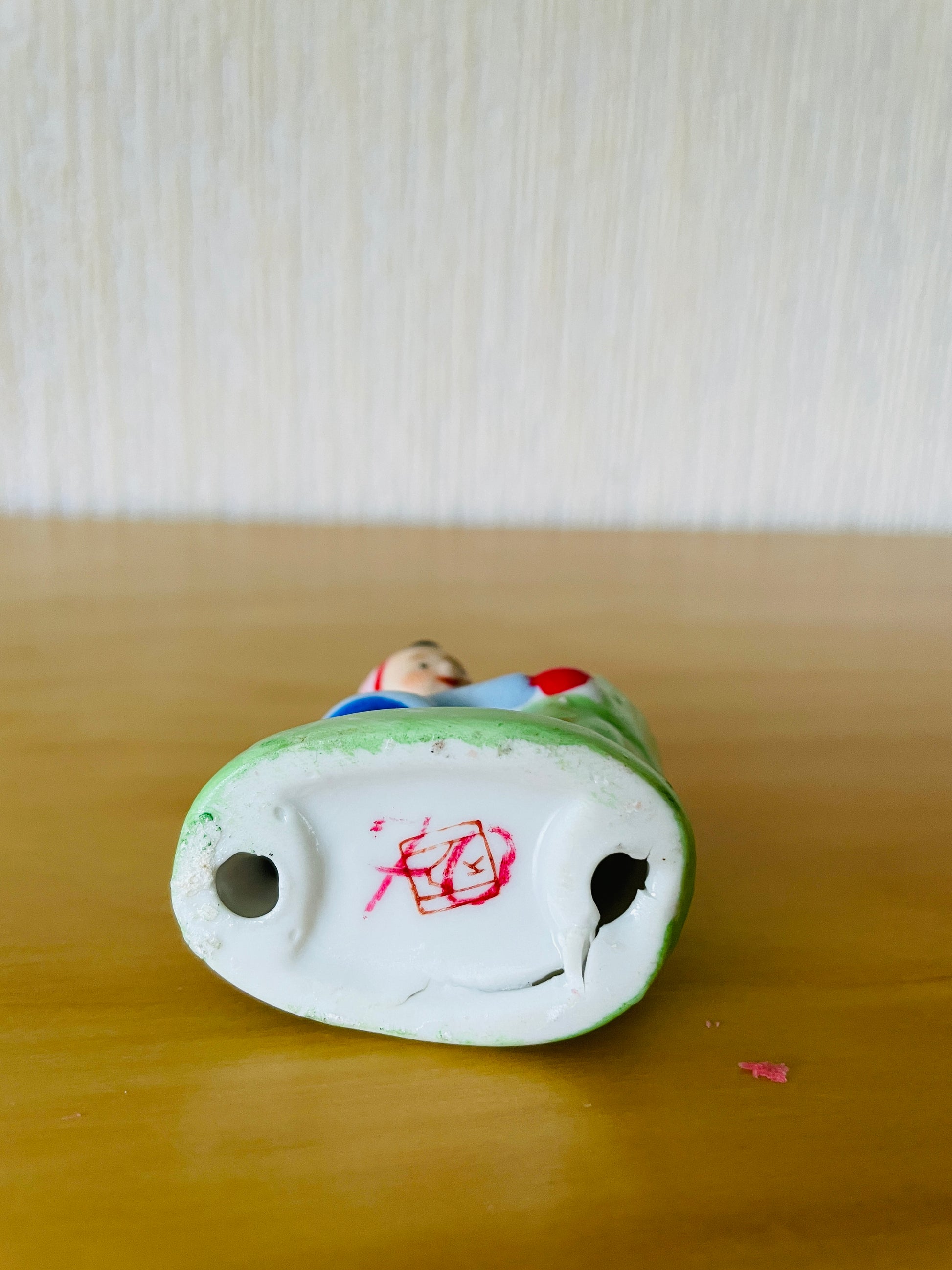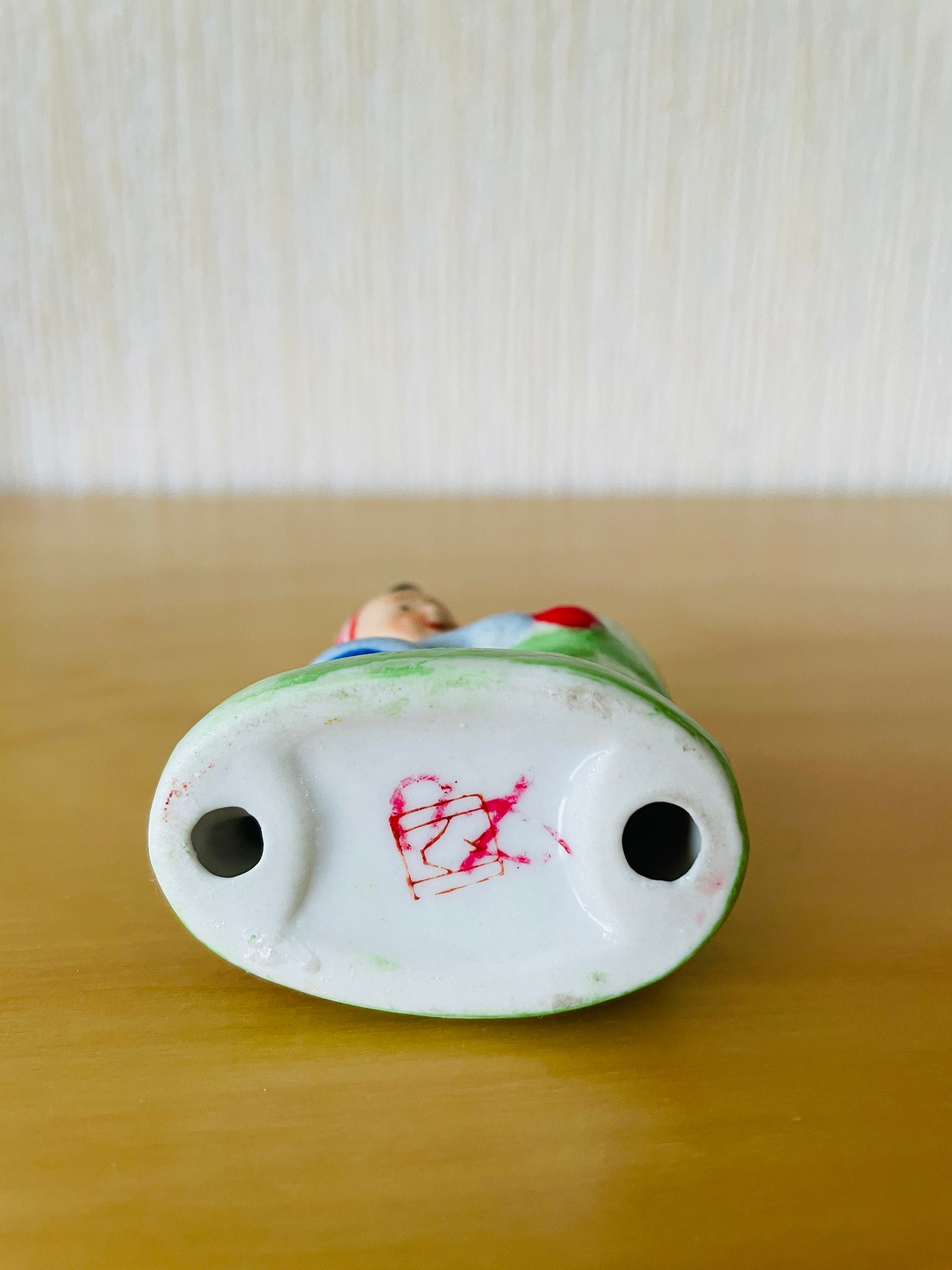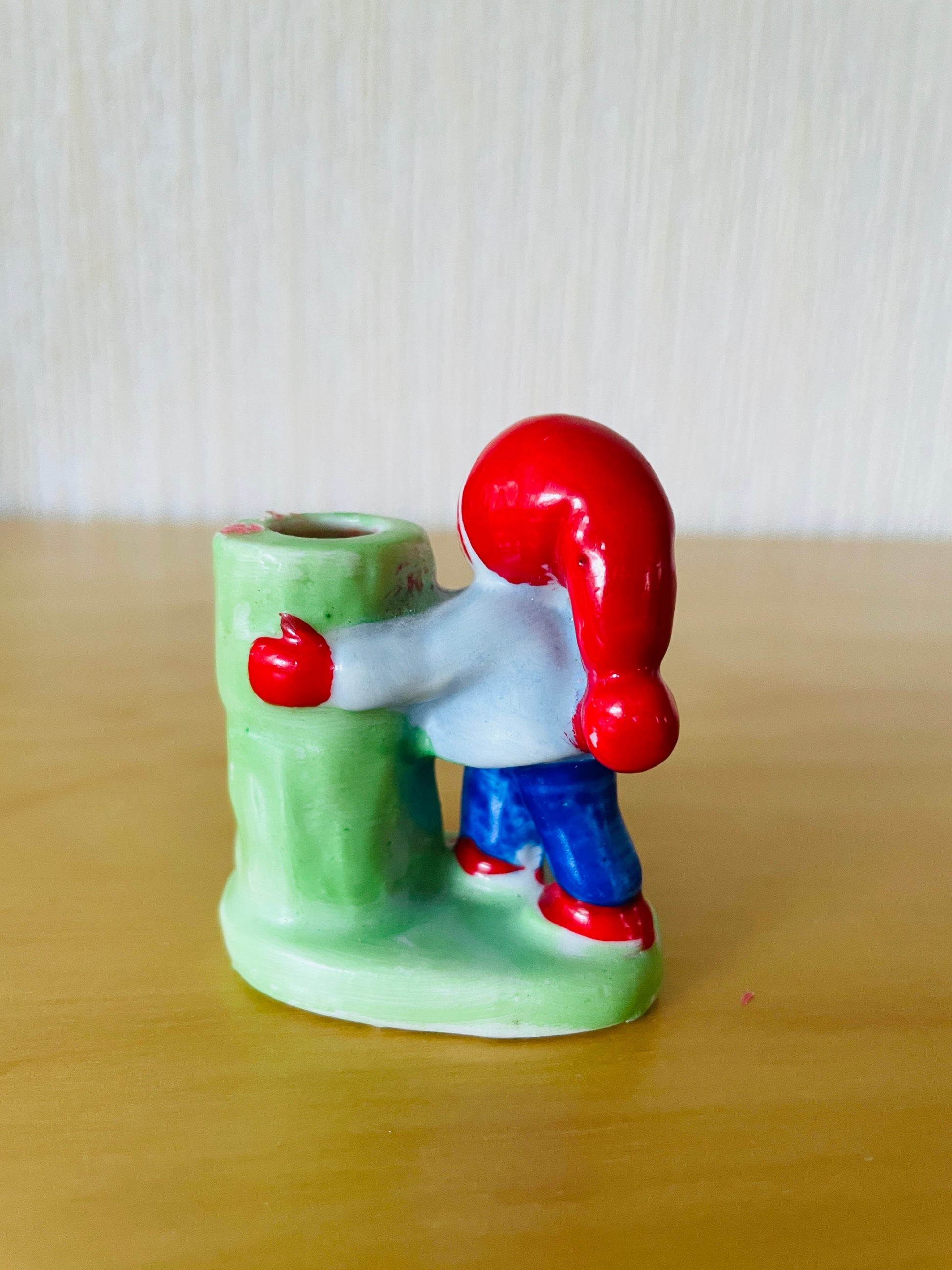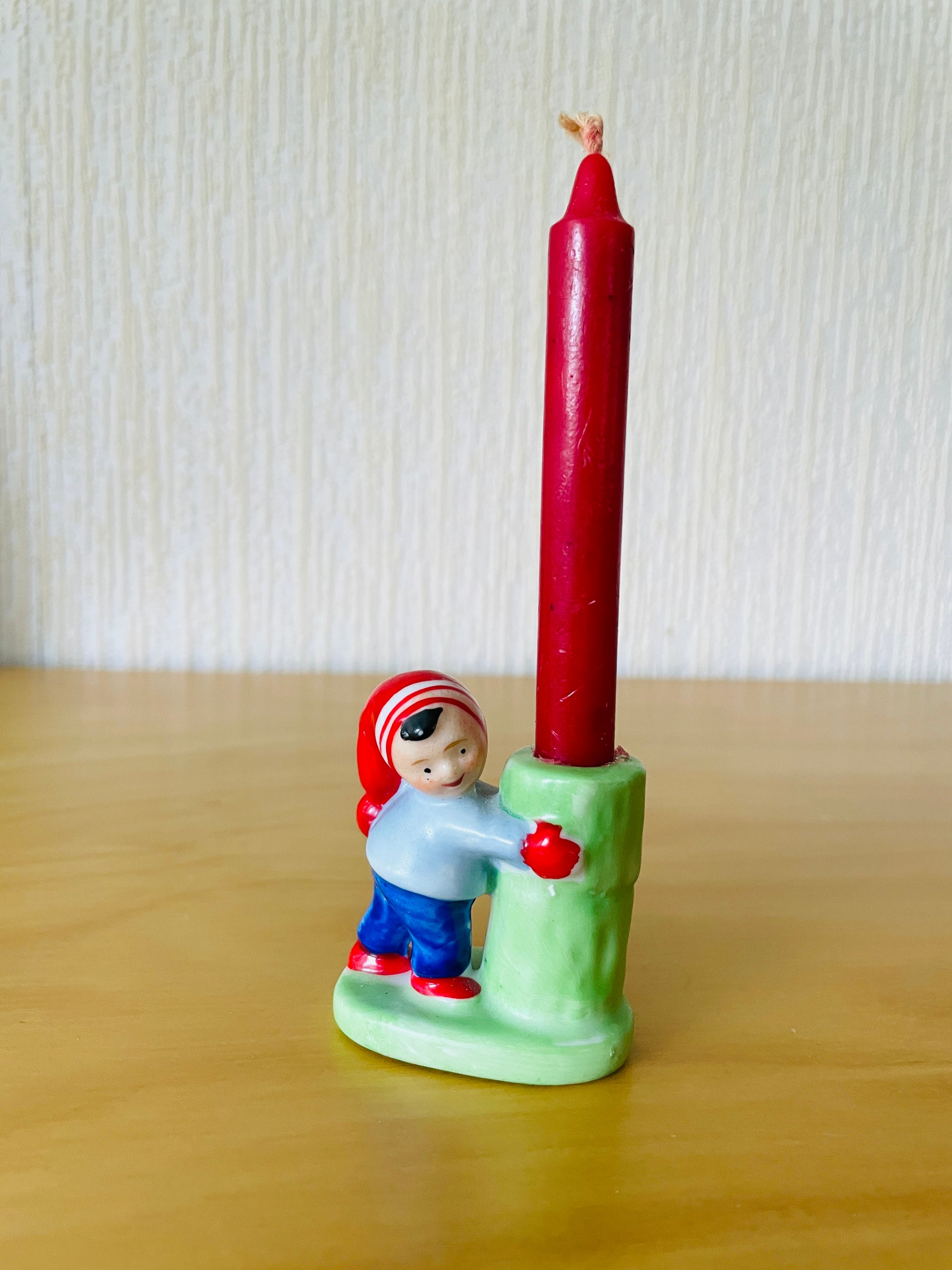 ミニキャンドルシリーズで小さな男の子がツリーを持っている、可愛らしいキャンドルスタンドです。今回、色々なミニキャンドルスタンドをご紹介していますが、どちらも1900年代初期に日本より輸出されたハンドペイントのキャンドルスタンドです。当時は日本のハンドペイントのカップ&ソーサーやクリスマスに向けた飾り物などがとてもヨーロッパやスウエーデンの人たちに好まれていたようです。日本では売られていない物なので、とても希少なものになります。こちらに合うキャンドルをおつけします。2個の在庫があります。