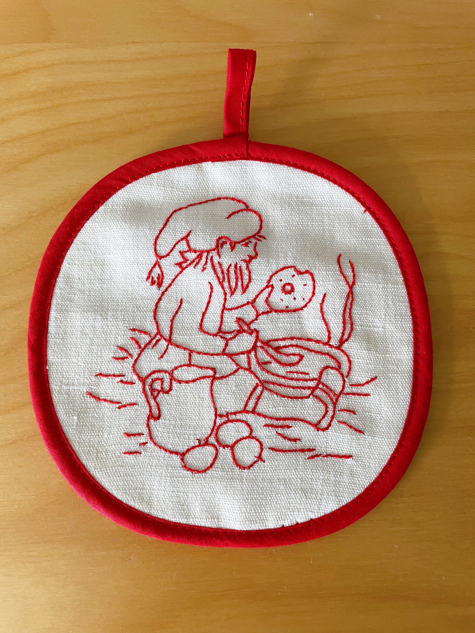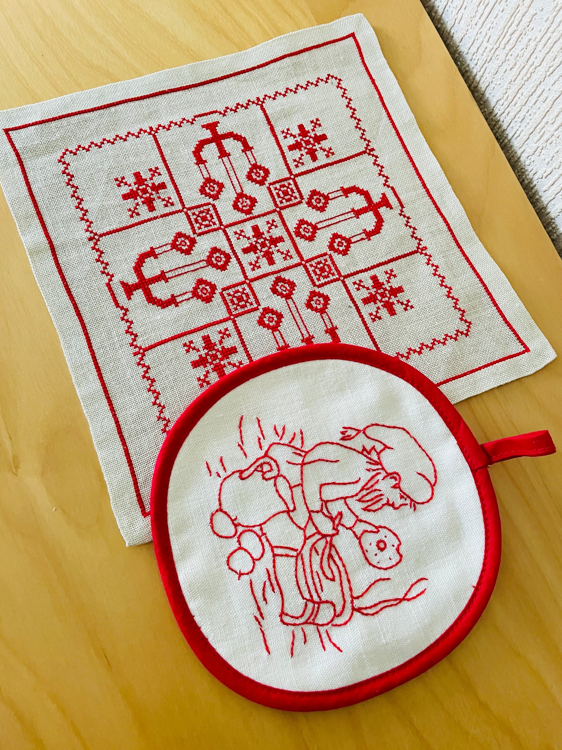 北欧のクリスマス/刺繍のクロス/刺繍のポットマット/2枚セット