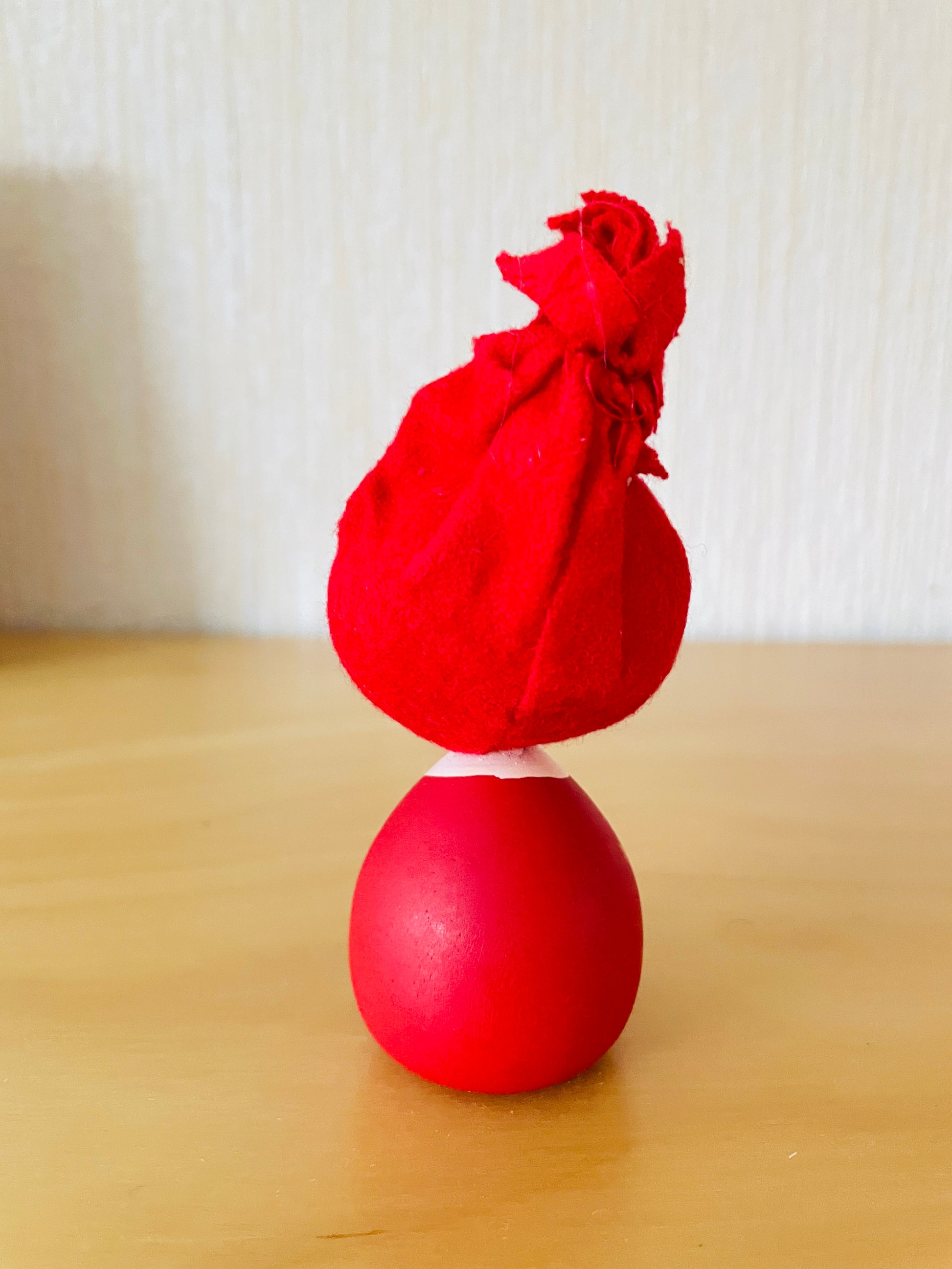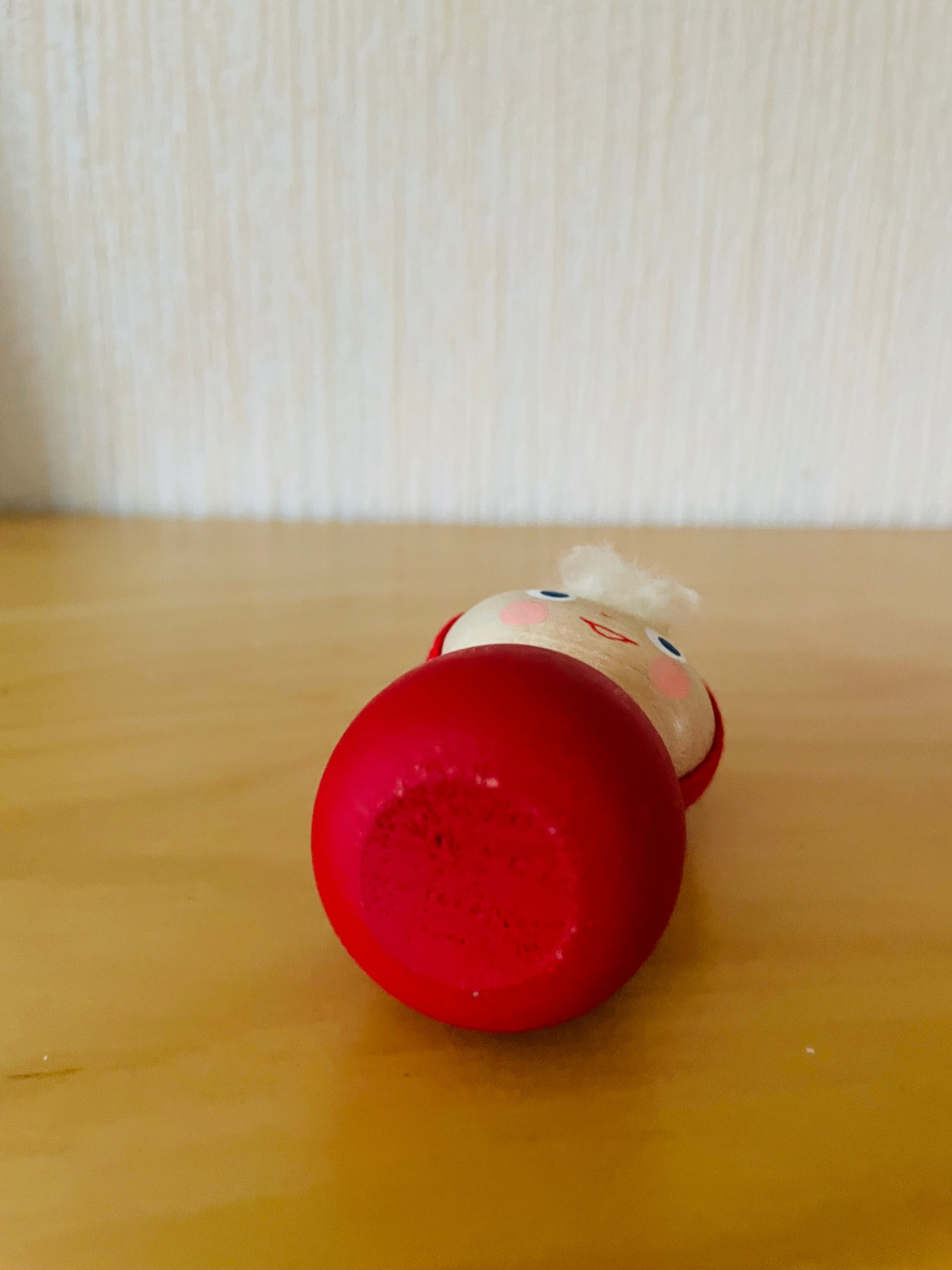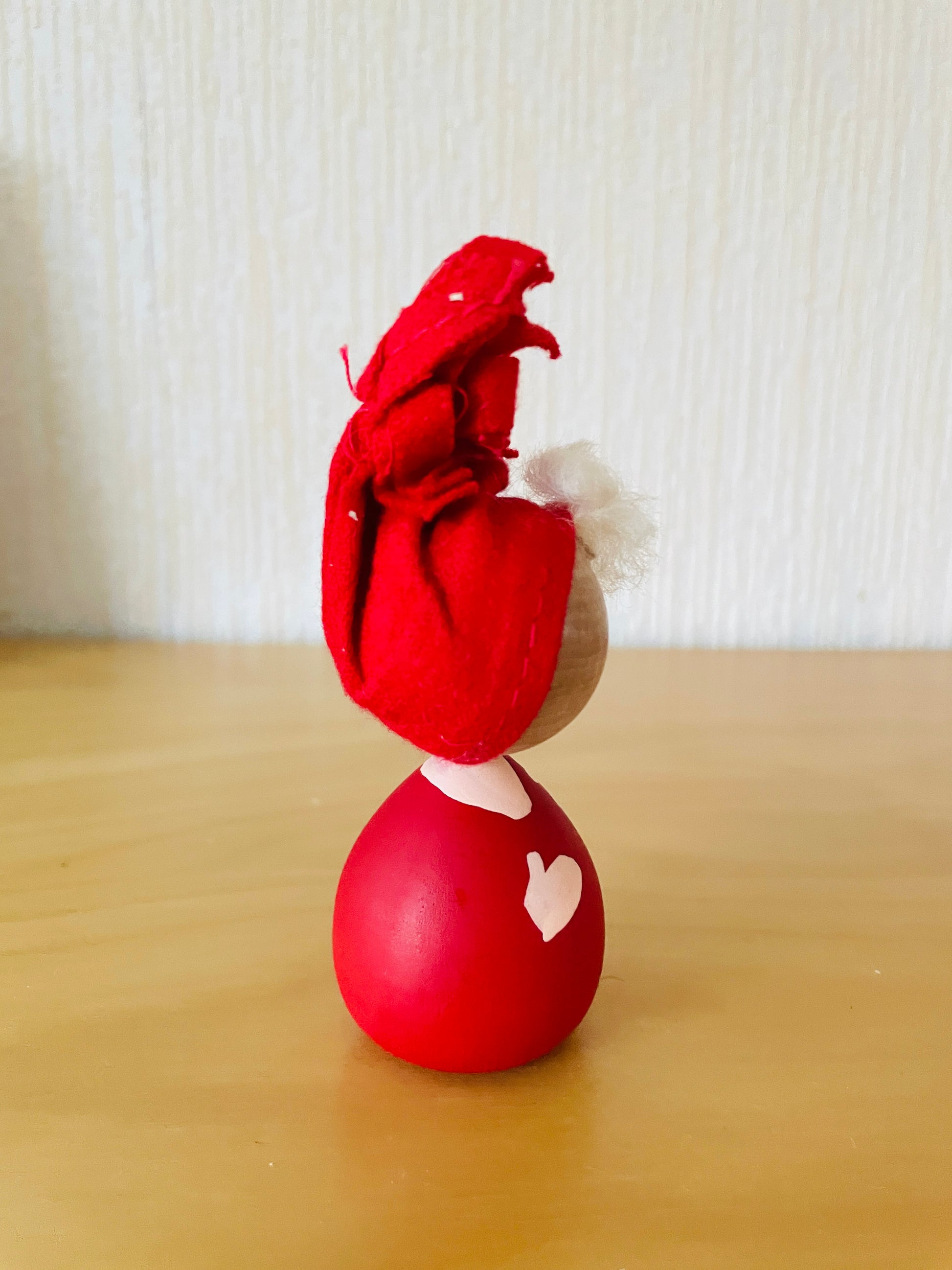 ハンドメイドの木製で出来た、お目目がまんまる、ブルー愛の可愛いトムテニッセ、女の子の人形です。ピンクのミント手袋とエリカラーがおしゃれポイント。