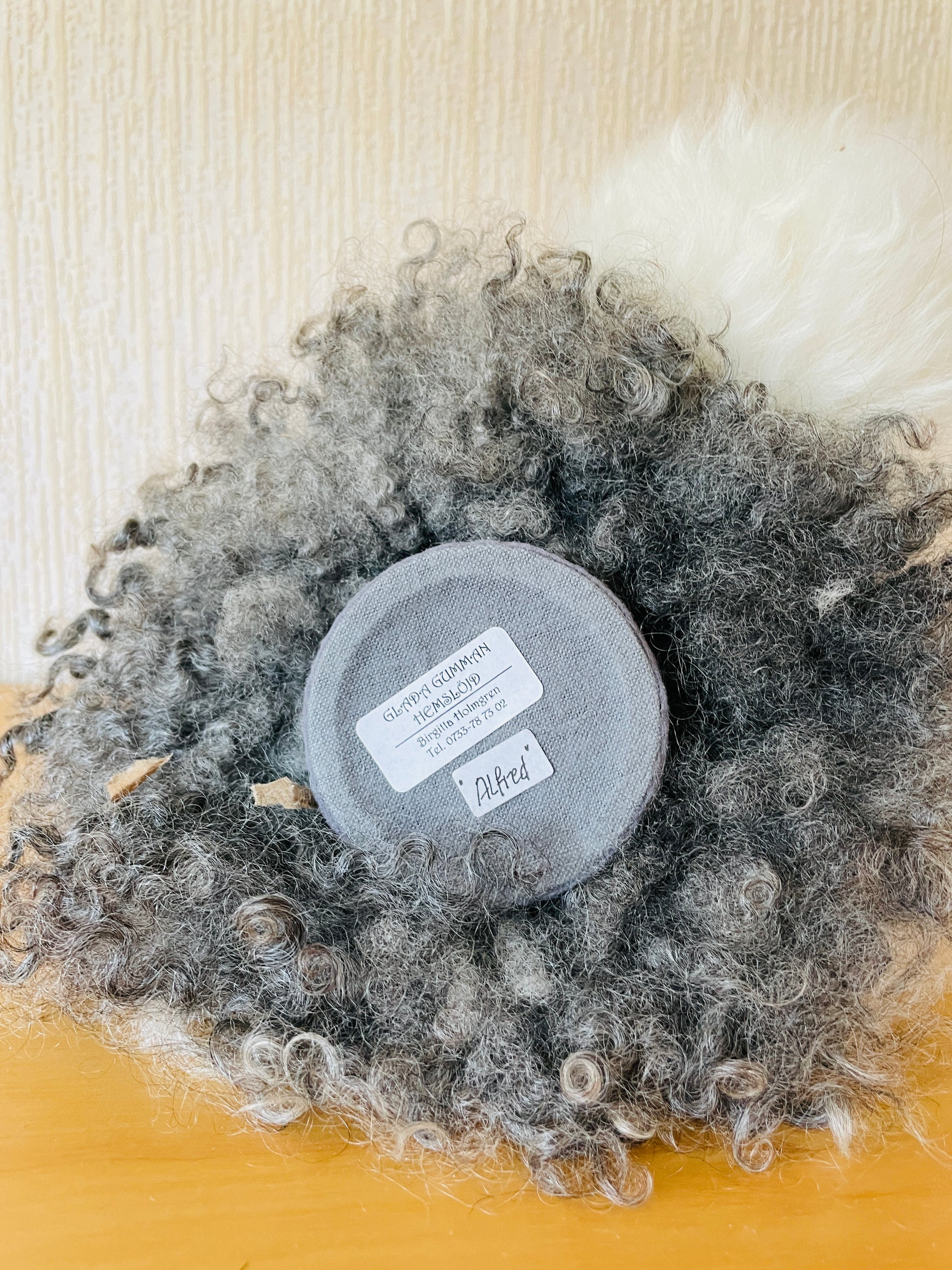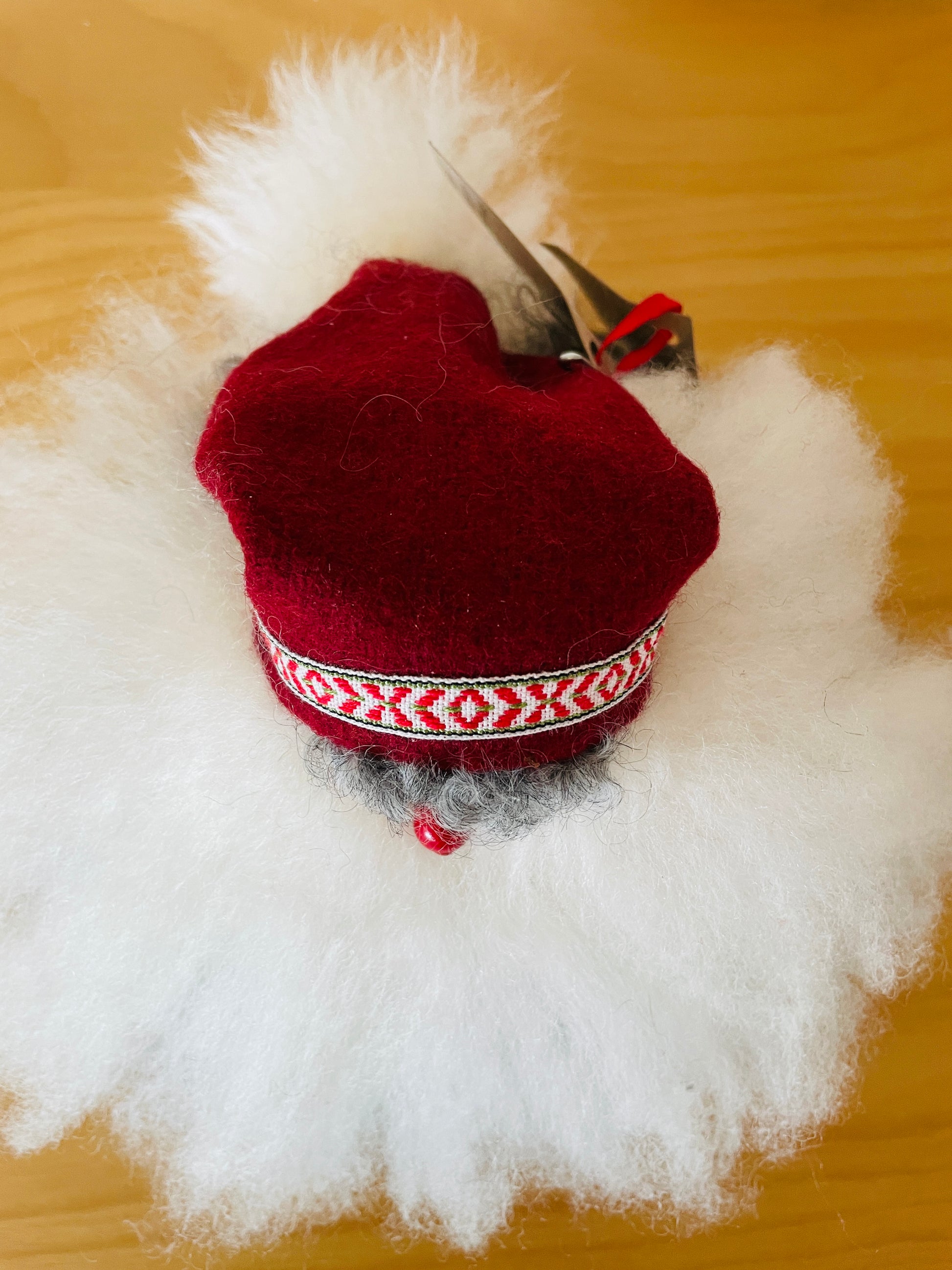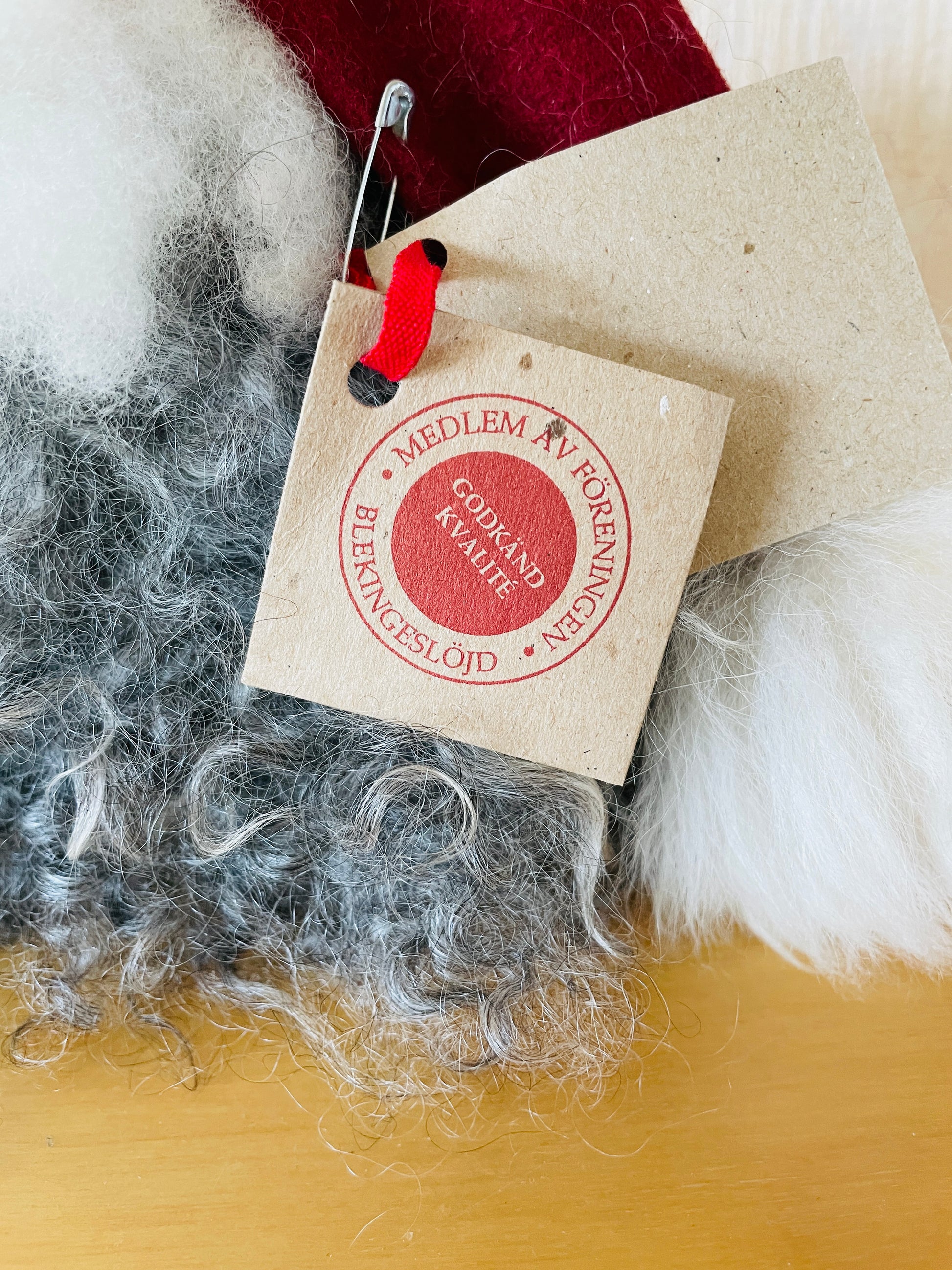 Birgitta/ビギッタさんハンドメイドのモフモフお髭のトムテさんのお人形です。たっぷりの本羊毛を使って仕上げたお人形です。名前がアルフレッドと言います。真っ赤な長い帽子には先にまた羊毛が使われています。見た感じより大きさがあります。新品未使用品です。