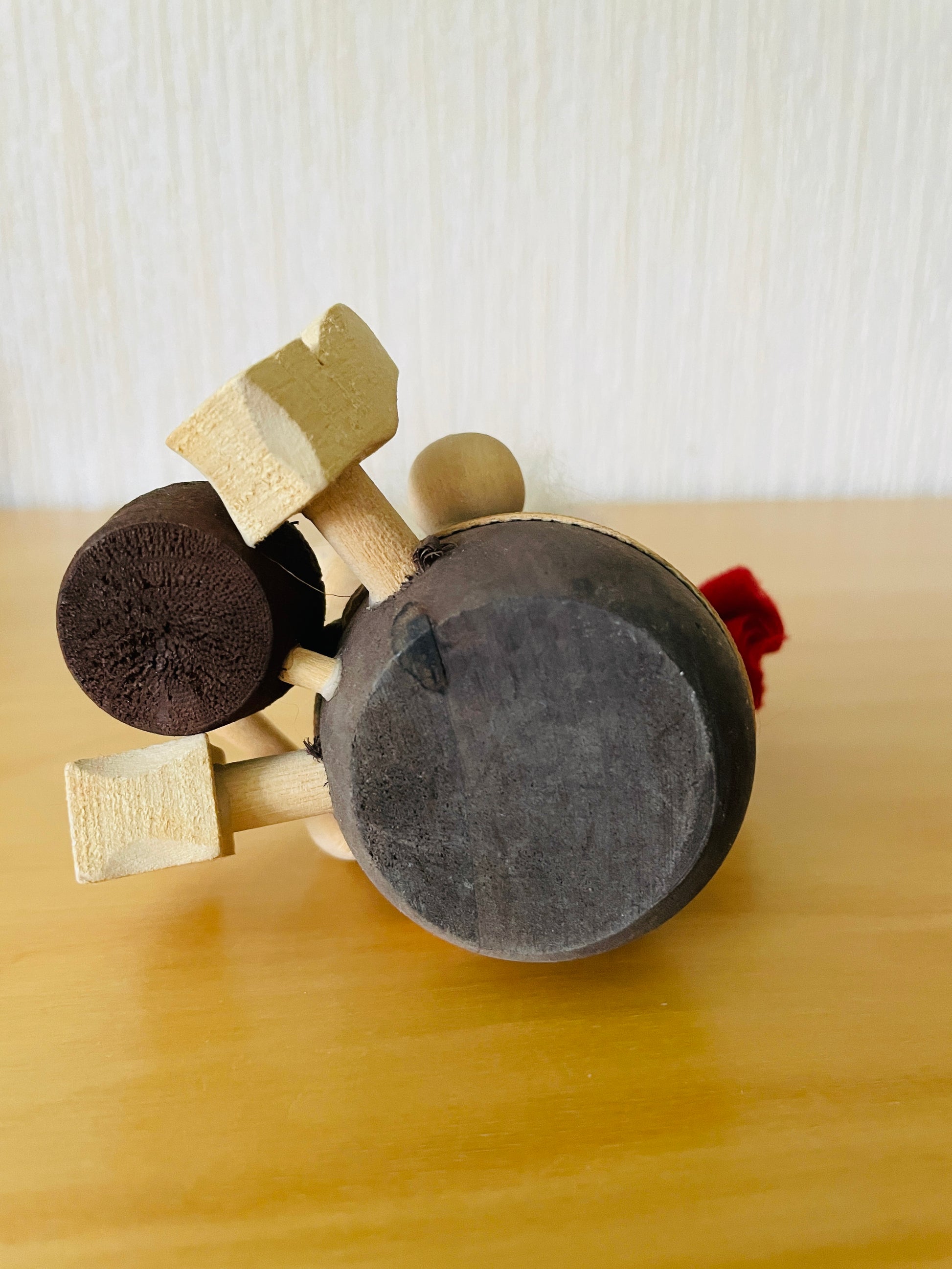 ハンドメイドの木製で出来た、トムテさんがミルクがゆを抱えているお人形です。北欧のトムテさんはとても小さな姿をしていて、普段は馬小屋に住んでいて、普通人間には姿は見ません。クリスマスの夜になると、いつも守ってくれて感謝の意味を込めてご馳走のミルが湯を馬小屋の脇にそっと置く習慣があるので、いつもトムテさんはミルクが湯がランタンを持っているお人形が多いです。