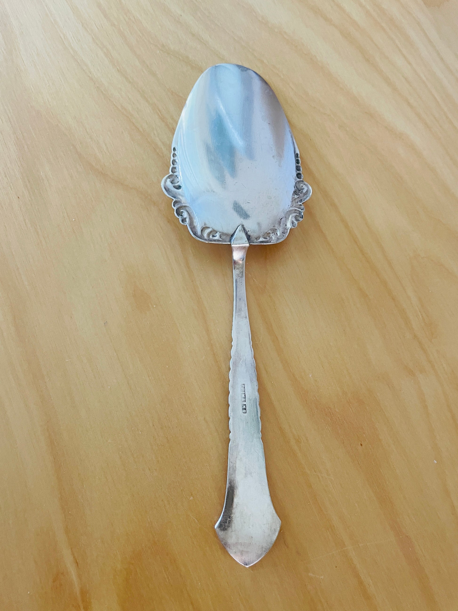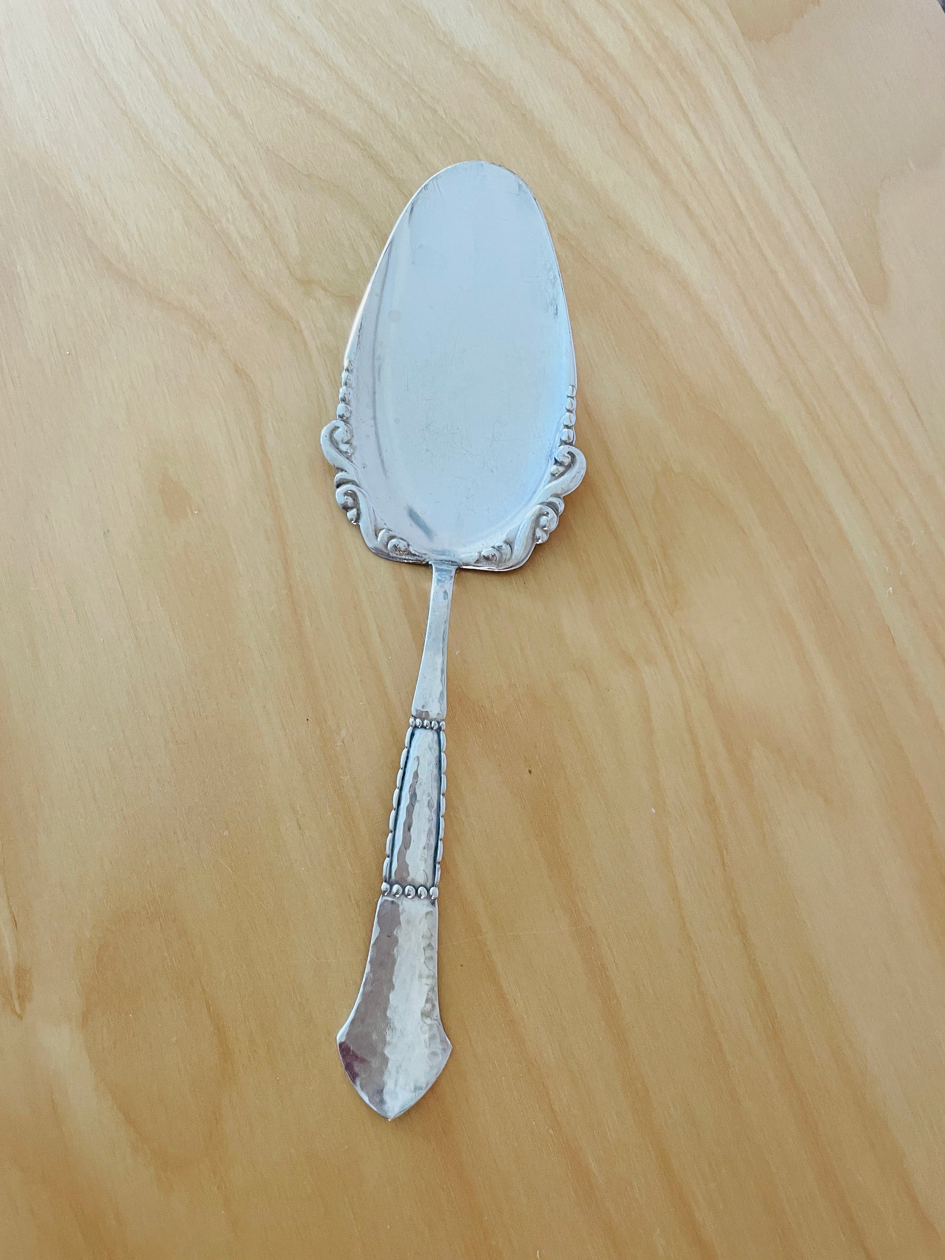 とても持ちやすい、サイドにデコレーション彫りのアンテイークなデザインが素敵なケーキサーバーです。