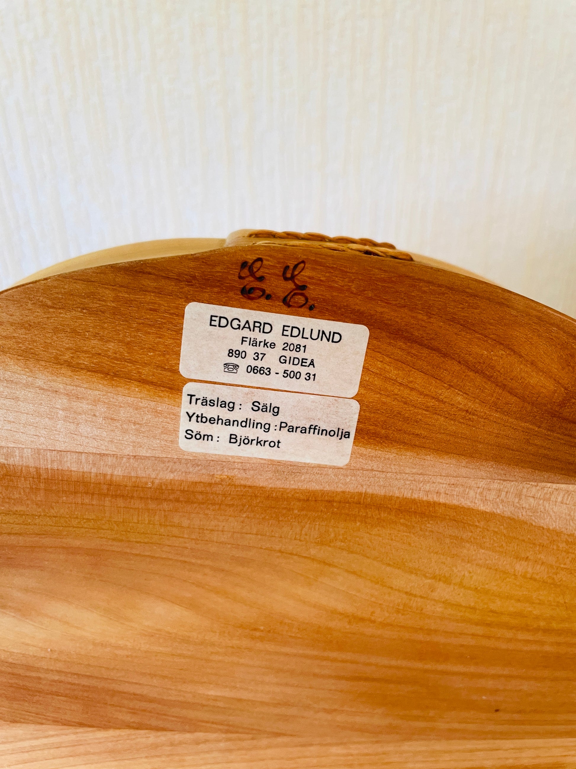 こちらのトレイはSälg/セリイいう木でネコヤナギ科の樹木を使っていて、止めつなぎ部分は白樺の根を使っています。キメが細かくて丈夫な木ですので、使うたびに艶が出て、ヴィンテージ感がましてきます。