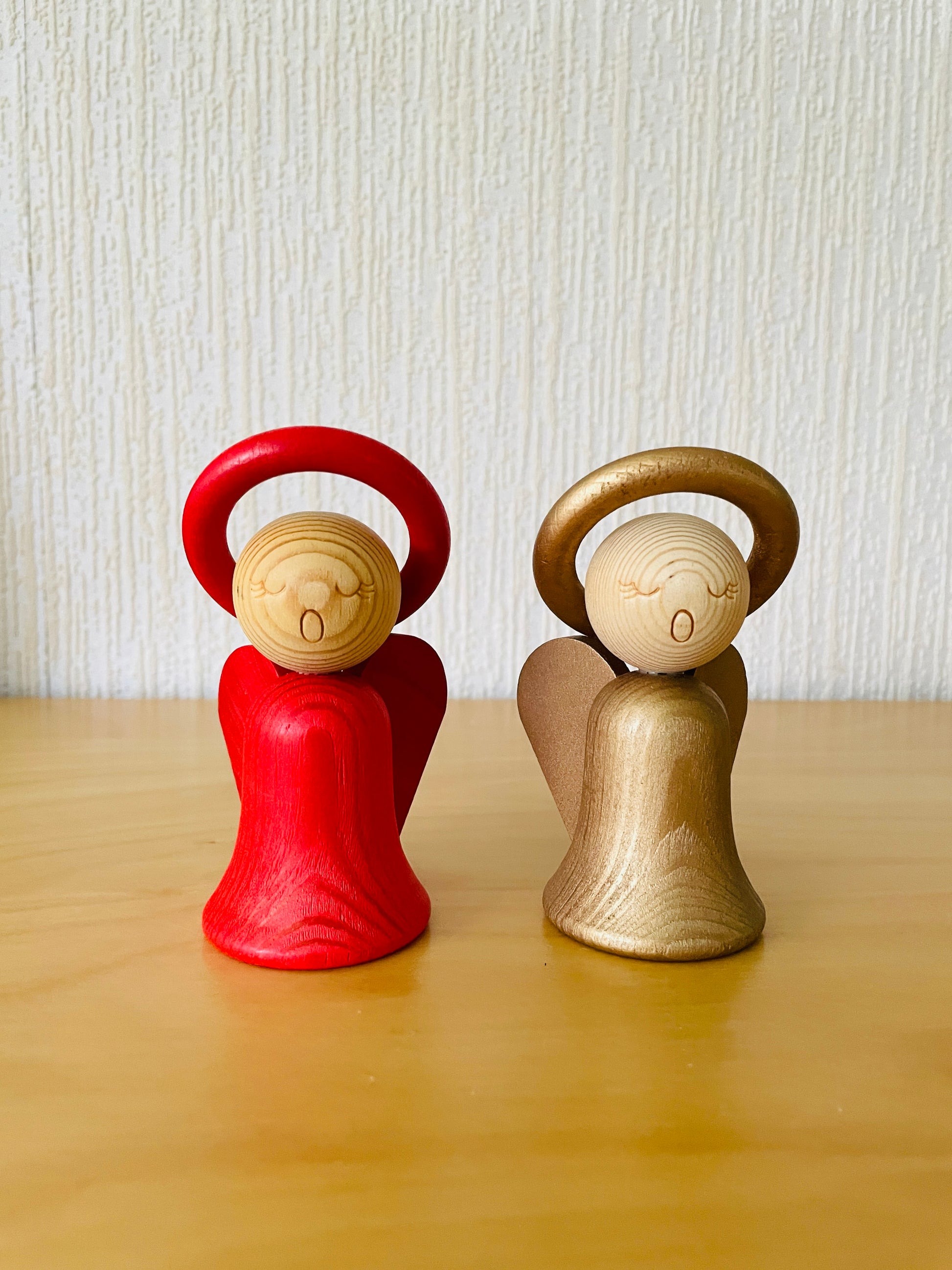 Aarikka/アーリッカより赤いエンジェルさんの木製のオブジェのご紹介です。デザインはKaija Aarikka/カイヤ.アーリッカ.今回はこちらの赤とゴールドのふたりのエンジェルさんをお迎えしました。