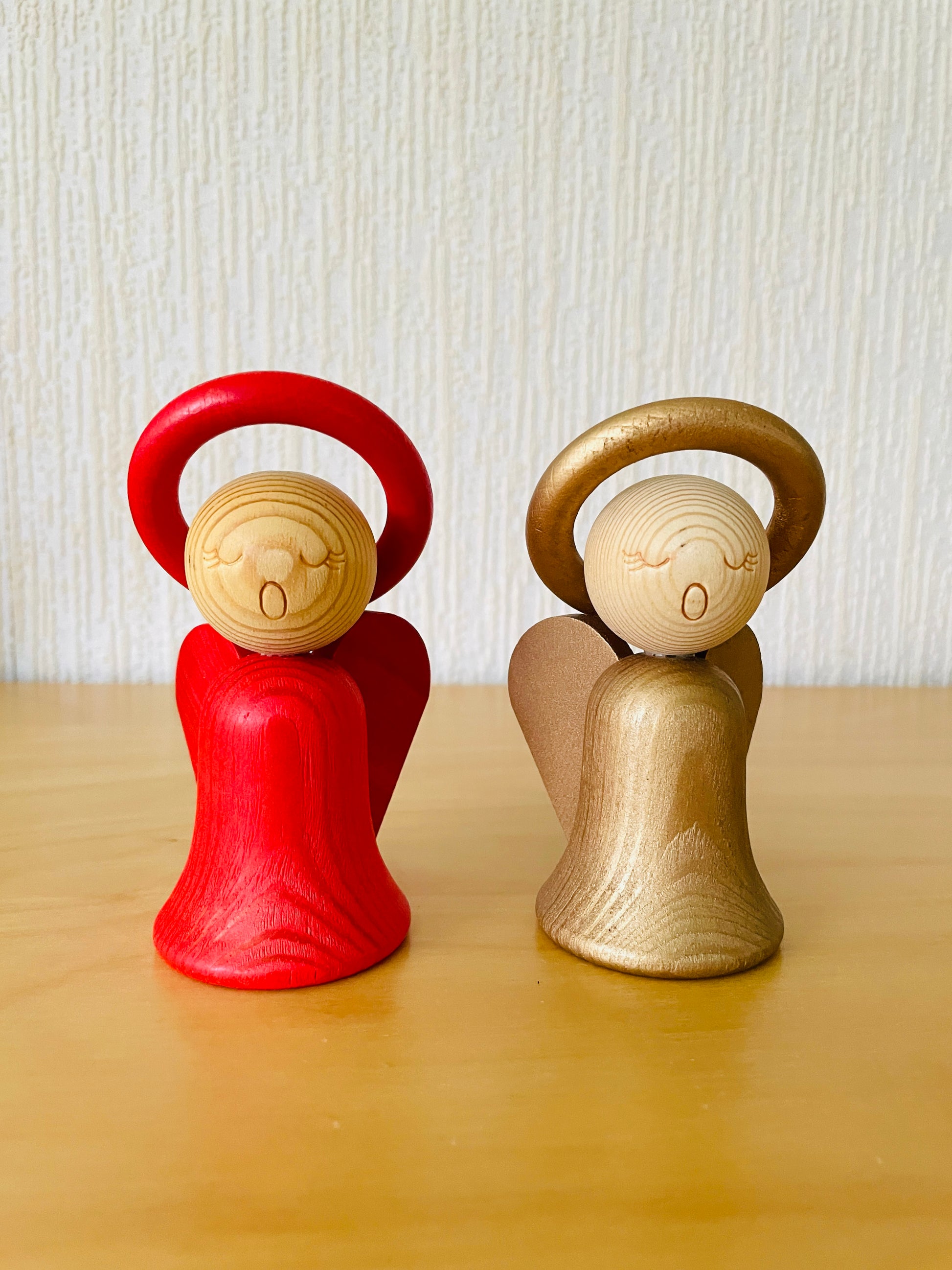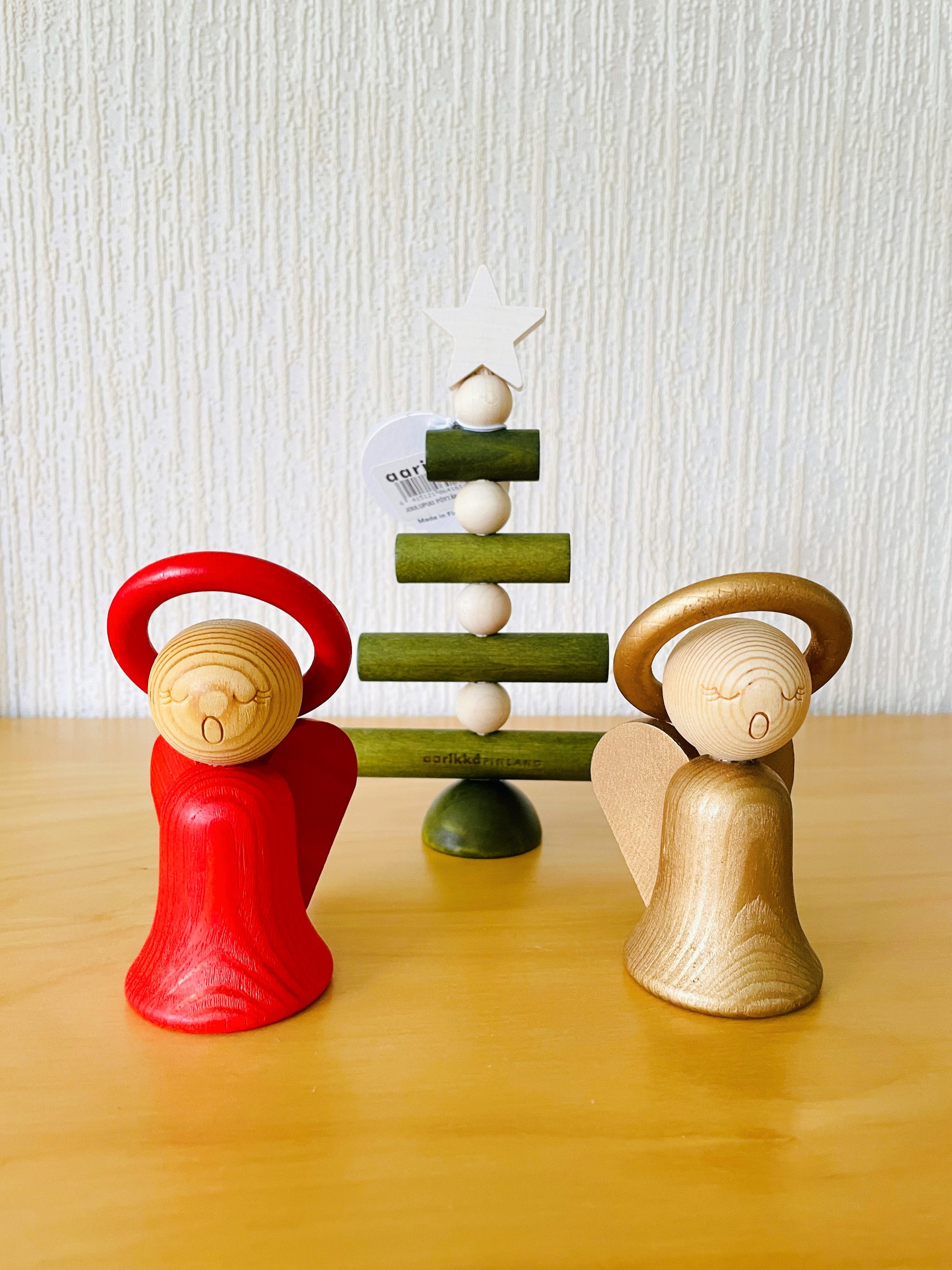 Aarikka/アーリッカより赤いエンジェルさんの木製のオブジェのご紹介です。デザインはKaija Aarikka/カイヤ.アーリッカ.今回はこちらのゴールドトレッドのふたりのエンジェルさんをお迎えしました。