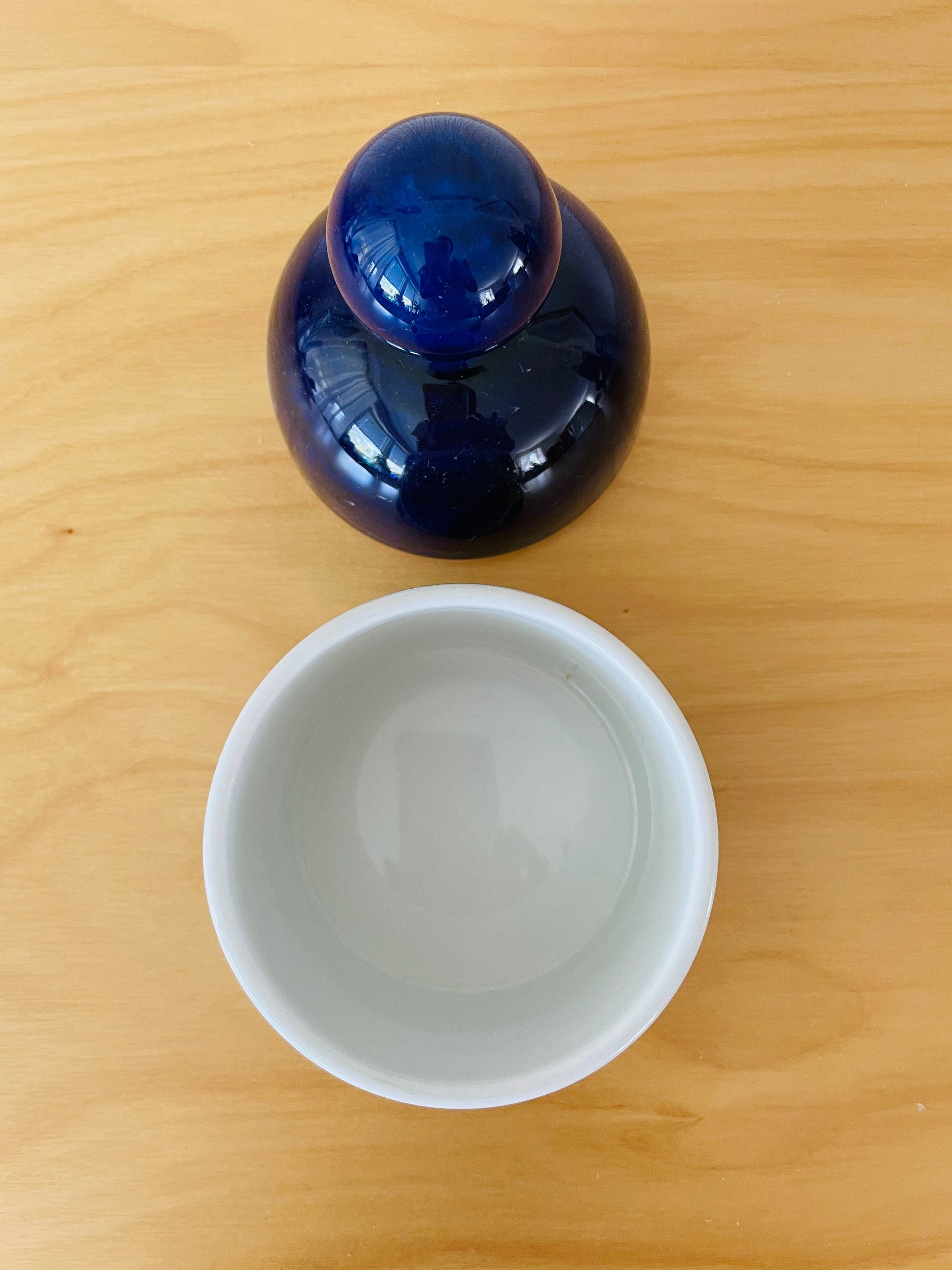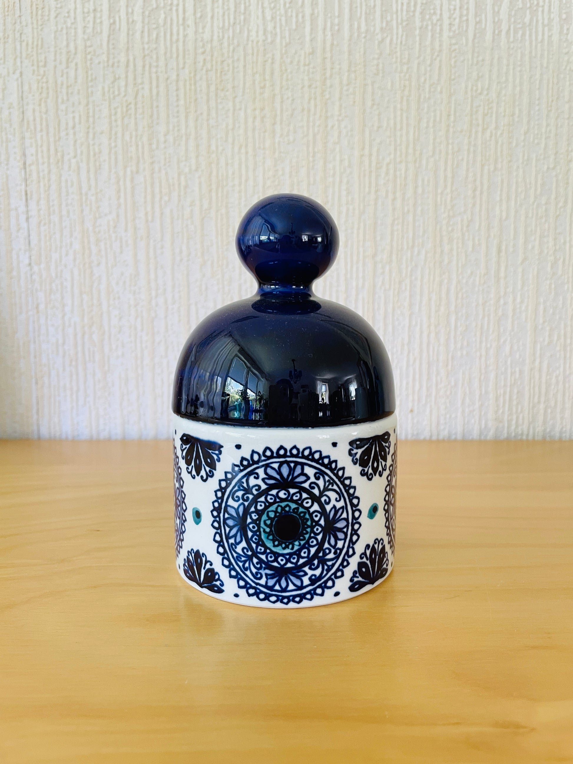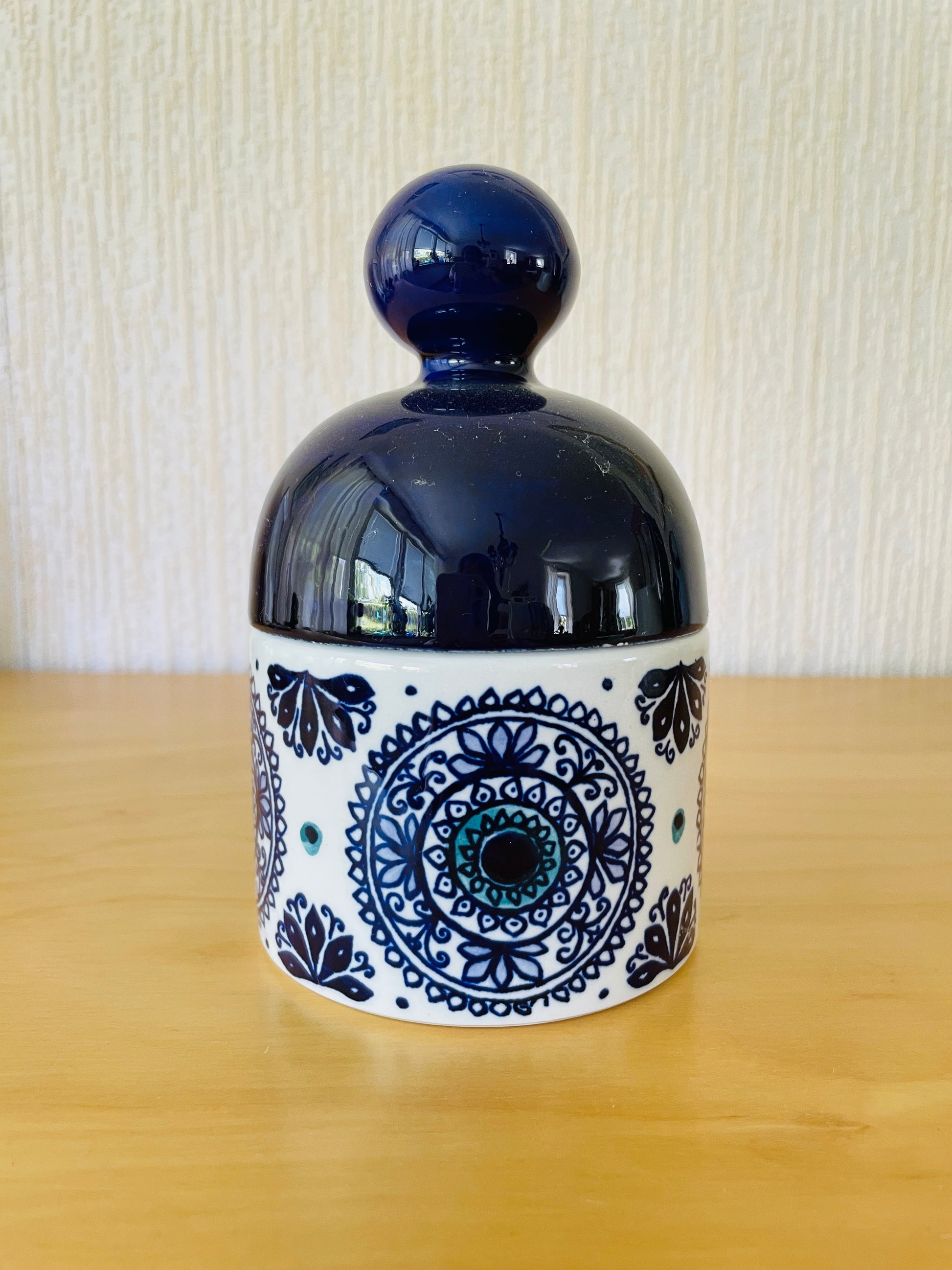 アラビア/アートデパートメント/芸術部門にて製作された作品になります。惹き困られるようなブルーの色合いと幾何学模様なデザインがなんとも素敵なポットです。