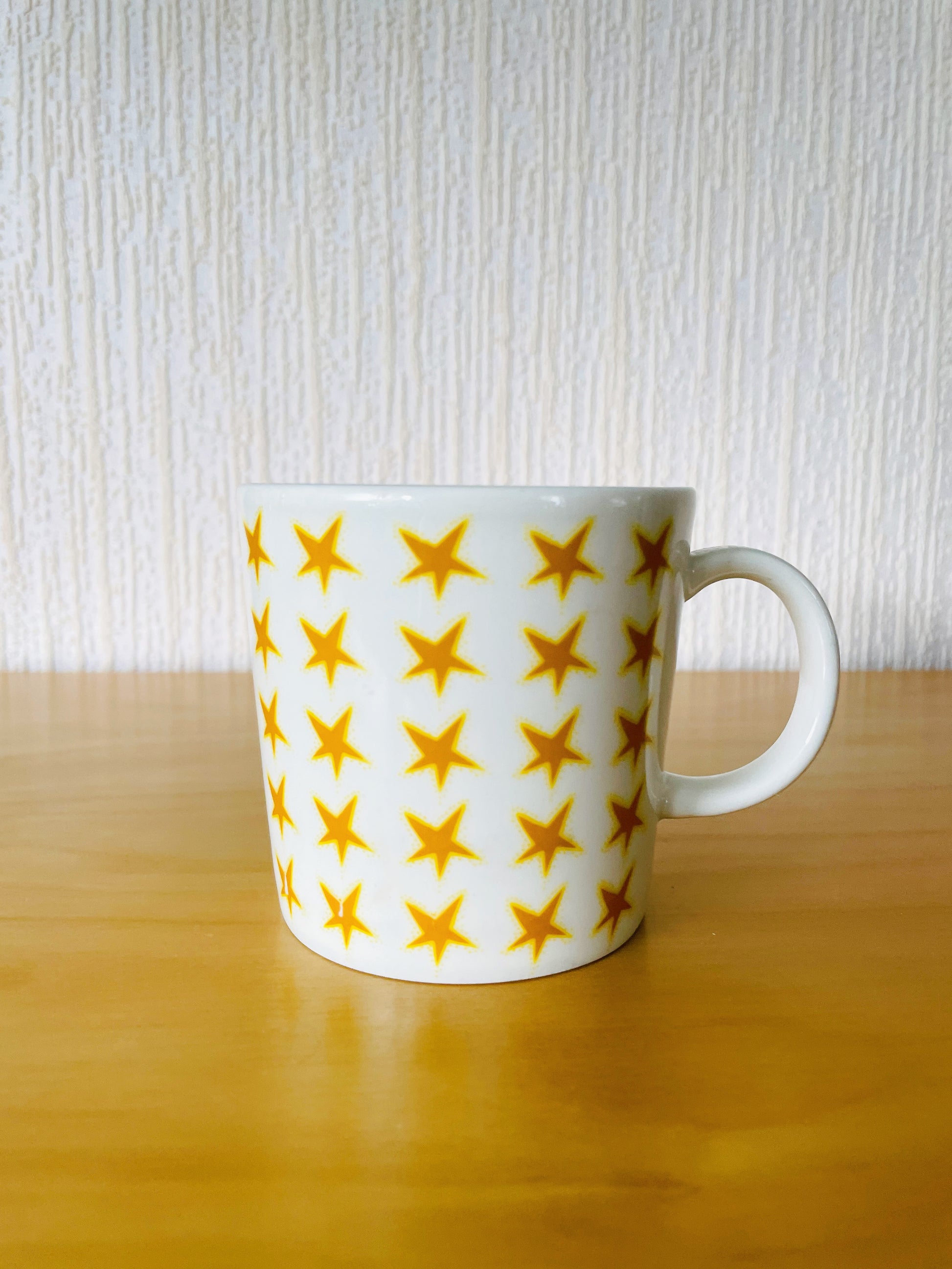 イエローの星がマグカップ周りに一面デザインされています。デザインはKaj Franck/カイ.フランクです。とても持ちやすくコレクターも沢山いる人気のテーマのマグカップです。
