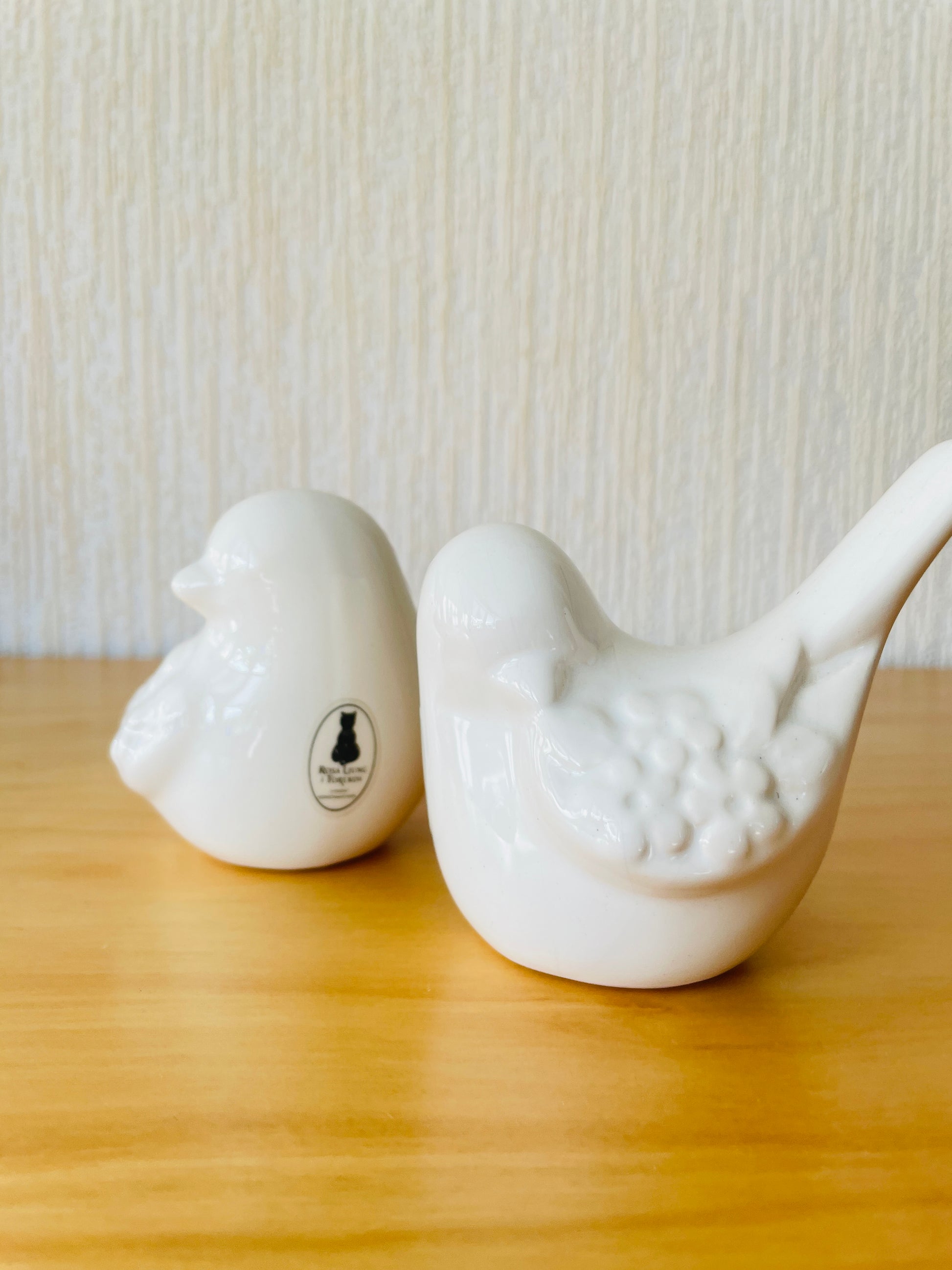 尻尾が下の鳥さんと上を向いている鳥さん、一緒にお気に入りのコーナーに飾ったら素敵ですね