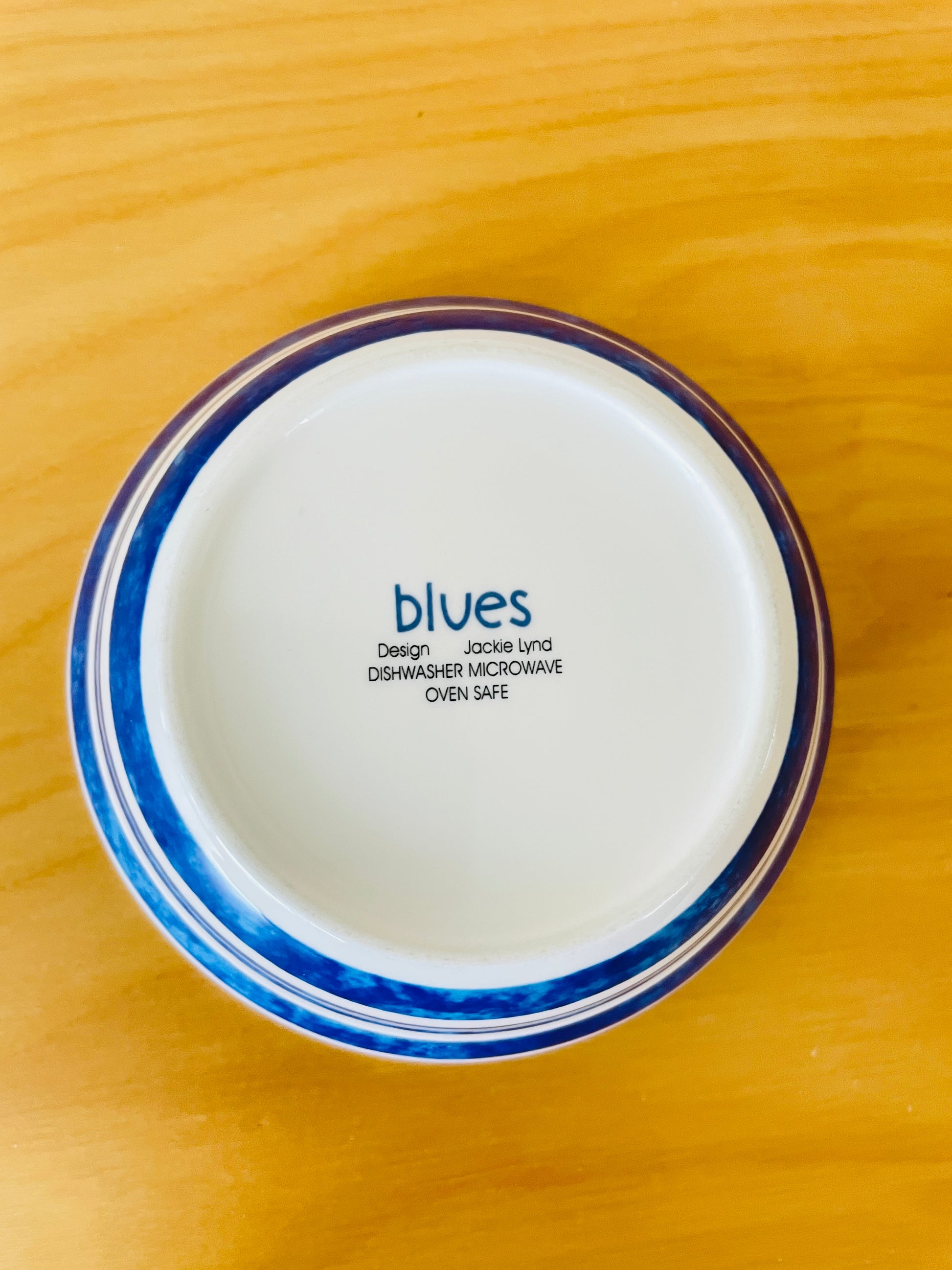 ロールストランドで1974年〜1990年までたくさんの食器類のデザインを担当していたJackie Lynd/ジャッキー.リンド、Birgitta/ビギッタ、Isolde/イソルデ、Japonica/ジャポニカなどは彼女のデザインです。 そのほかにも数多くの作品を作り上げました。 1971年に全てのロールストランド在籍のデザイナーたちは辞めてその中の数多くのデザイナーがフリーランスとして働き始めました。Jackie Lynd/ジャッキーリンドもその中の一人で、こちらのBlues/ブルースという作品は彼女がフリーランスになって1980年から90年代にスウエーデンの大手のDUKA/という食器やガラス、あらゆる陶器を売っていたチェーン店のオリジナルデザインとして発売したシリーズです。今はもう売られていません。 ブルーの縦のラインとソーサーのマーブル柄のようなブルーがマッチしていてとても素敵な作品です。