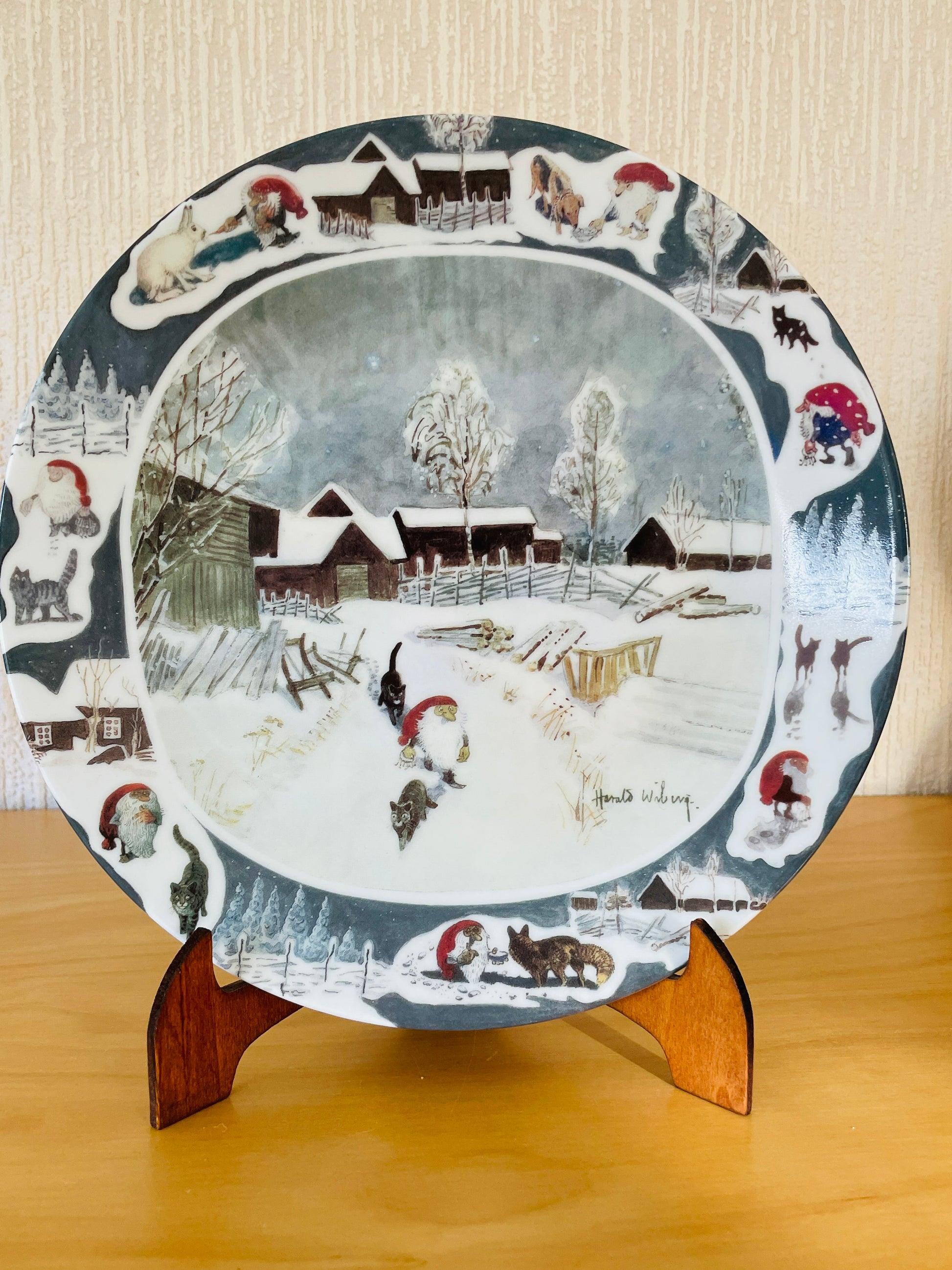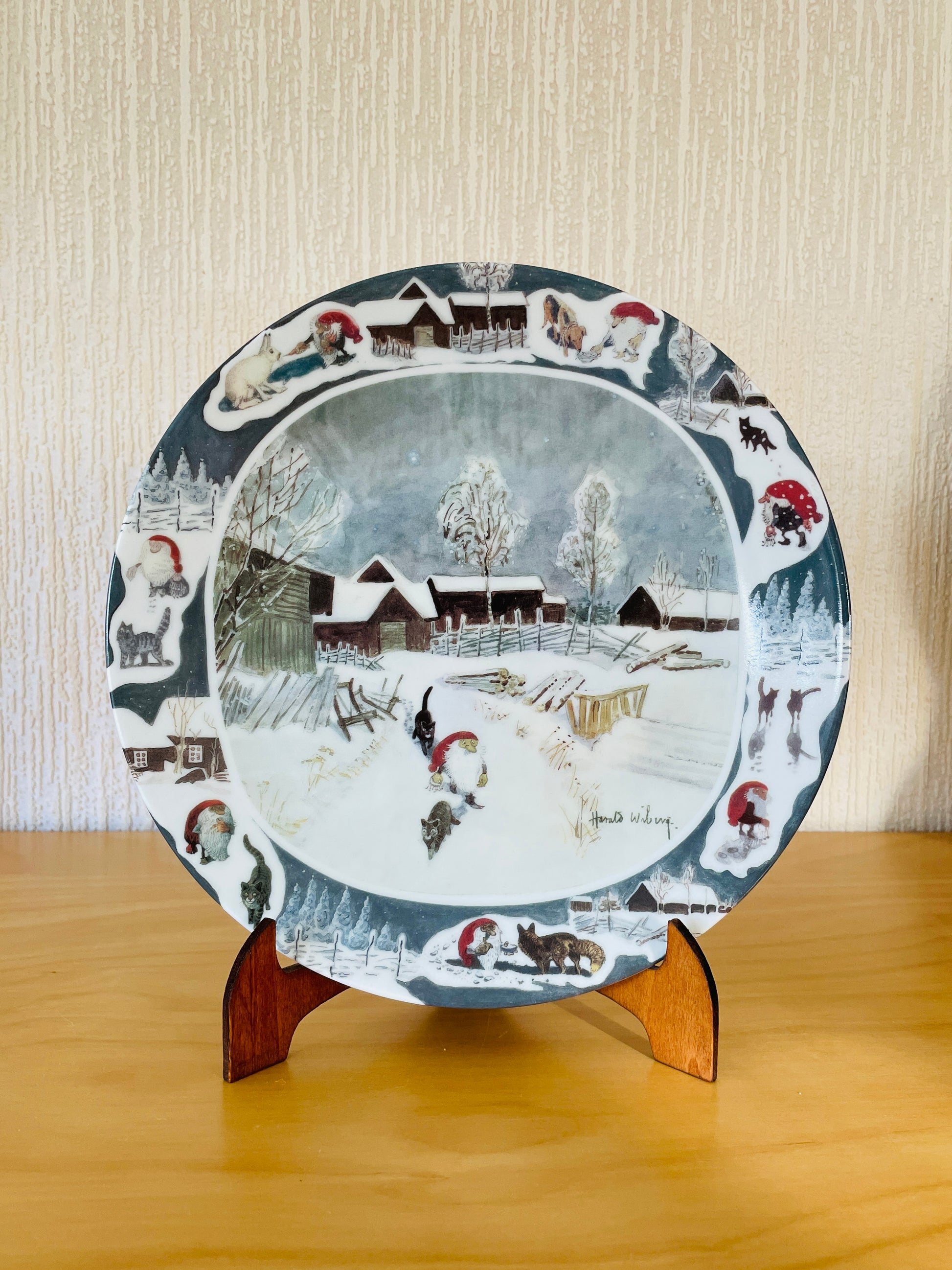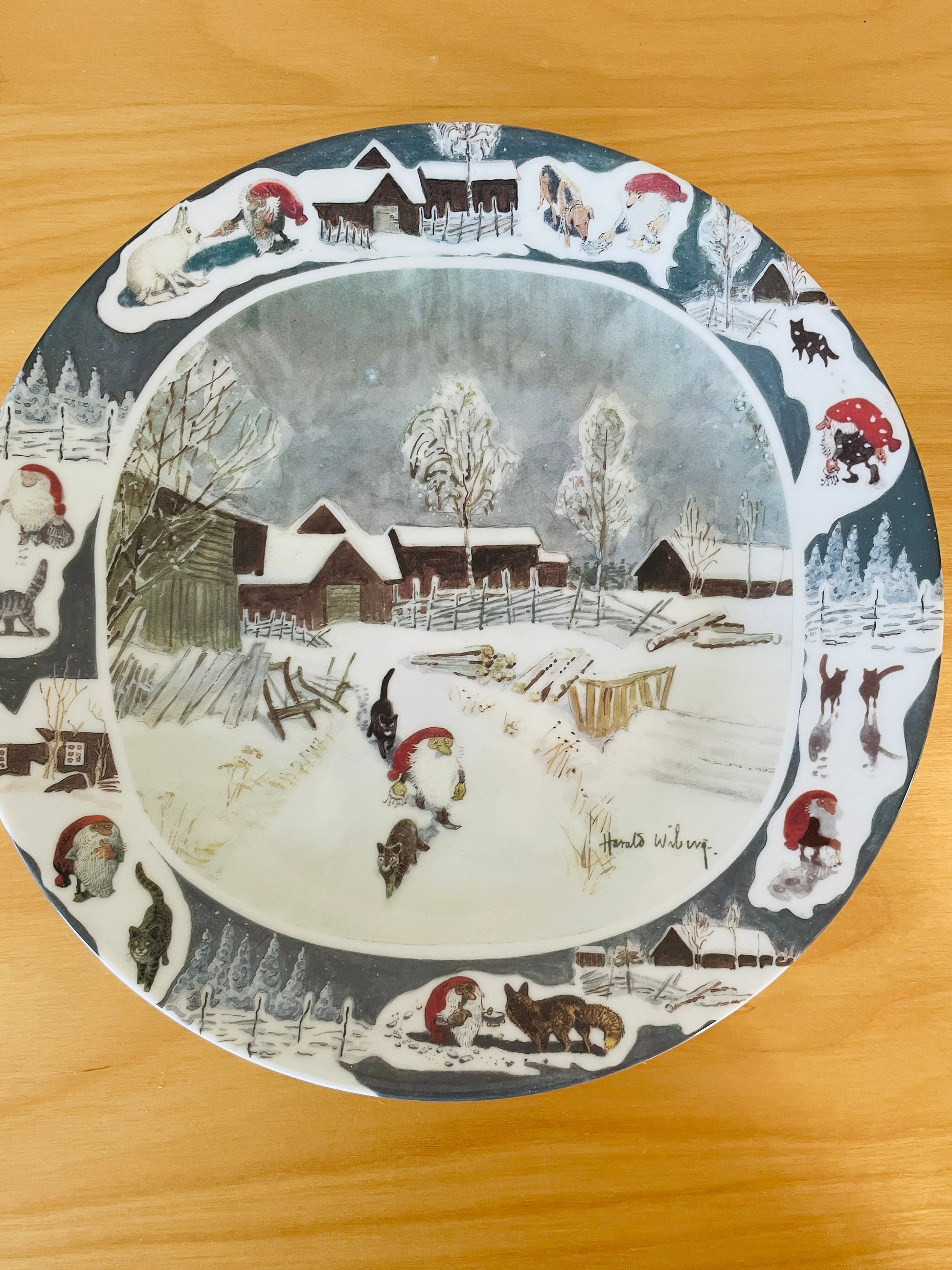 Guld Kroken/ゴールド.クローケン/Jul Tallrik/クリスマスプレート/Harald Wiberg/ハーラルド.ヴィーベリ/Tomten & Katterna/トムテと猫ちゃんたち
