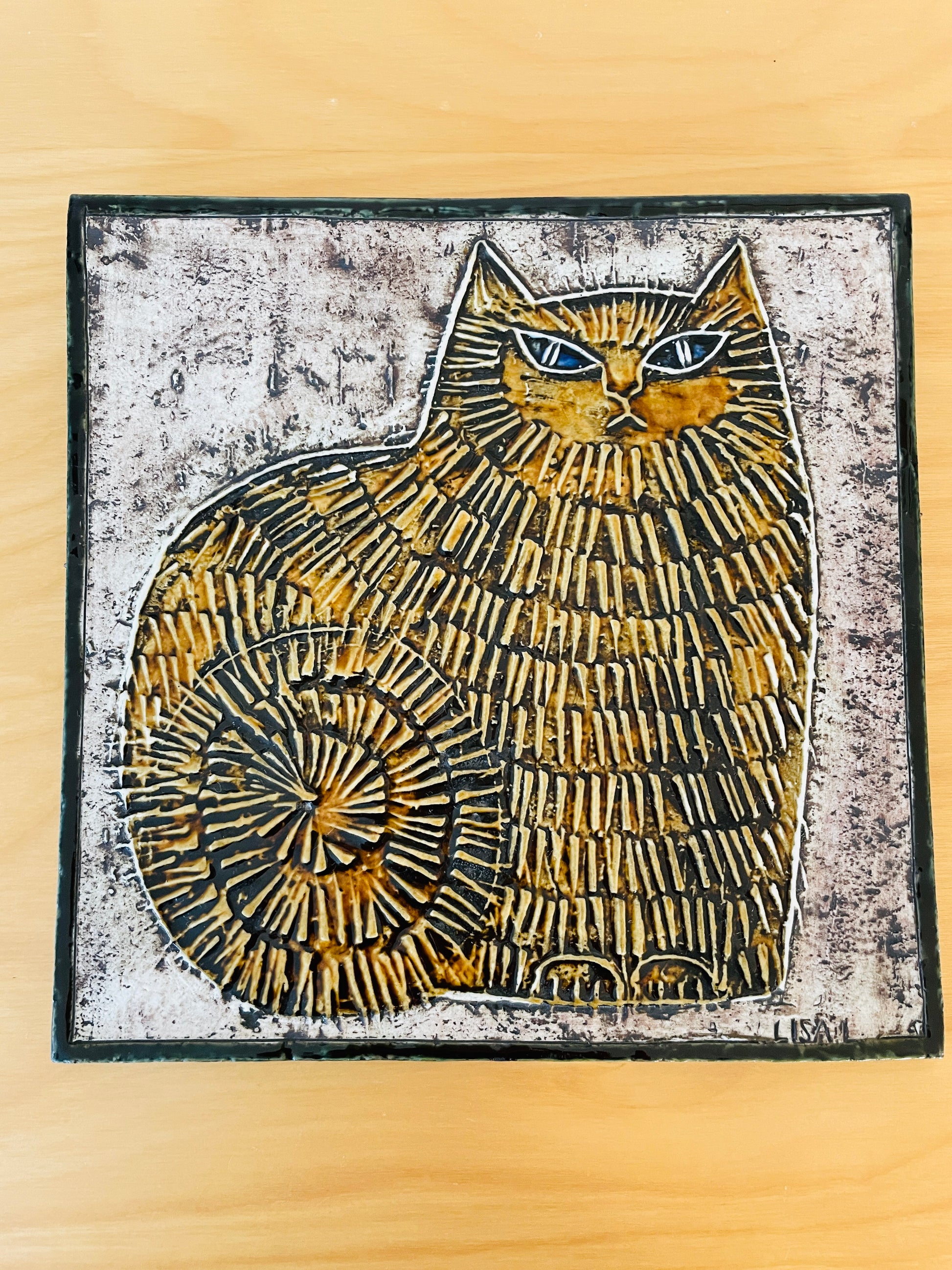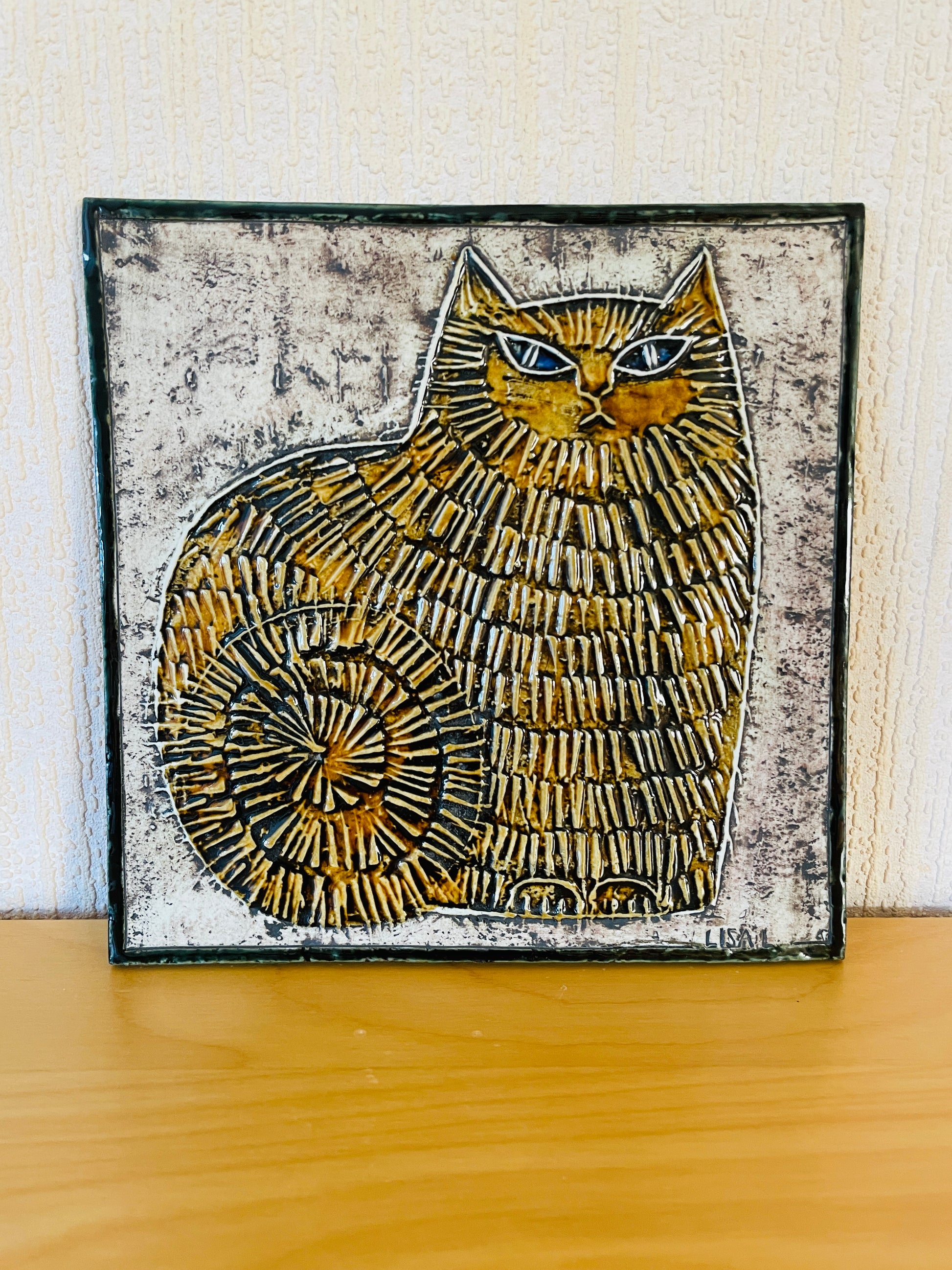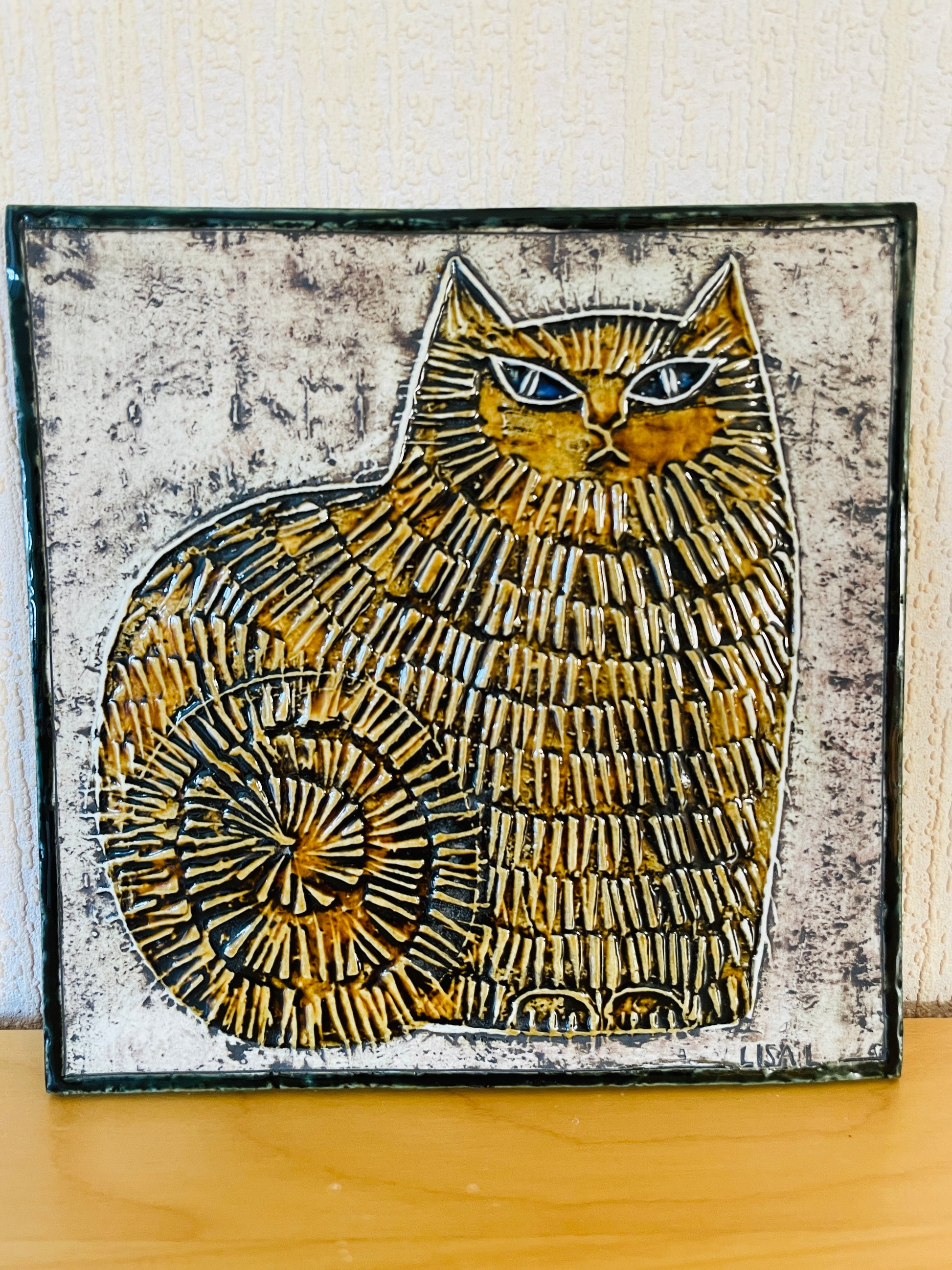 Gustvsberg/グスタフベリより、日本でも有名な陶芸家、Lisa Larson/リサ ラーソンのUNIK/ユニークから猫ちゃんの陶板です。 スウェーデンでも未だに人気が高く、コレクターの間では高額で取引されるUNIKシリーズ。このシリーズは全部で9種類のモチーフがあり、リサ ラーソンといえば猫のデザインが有名ですが、猫ちゃんの陶板は2種類ございますが、こちらのブラウンカラーの猫ちゃんは座りネコちゃんです。 釉薬の加減で一つとして同じものが存在しない作品の為、世界に一つのUNIKという作品をお家に招いて見てはいかがでしょうか。久々の入荷になります。手紙扱いは追跡、補償が付きませんので、心配なお客様は追跡のみ、またはRek2000/補償つきのご購入をお勧めします