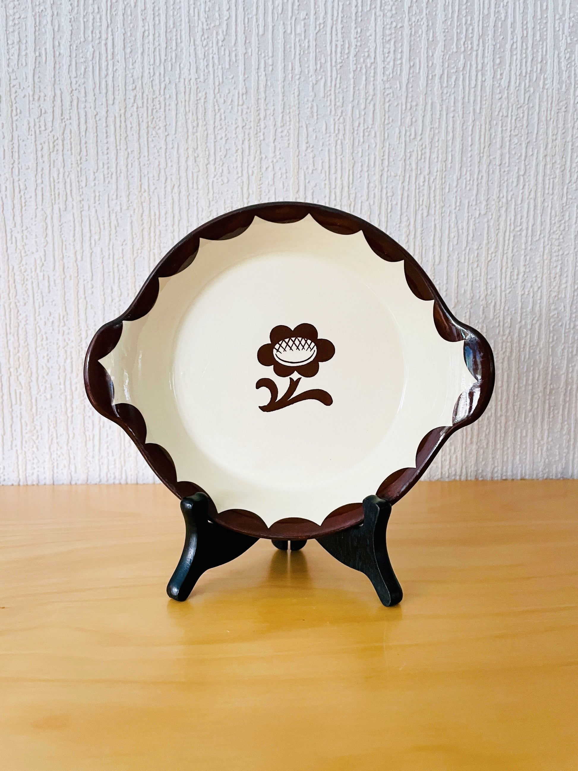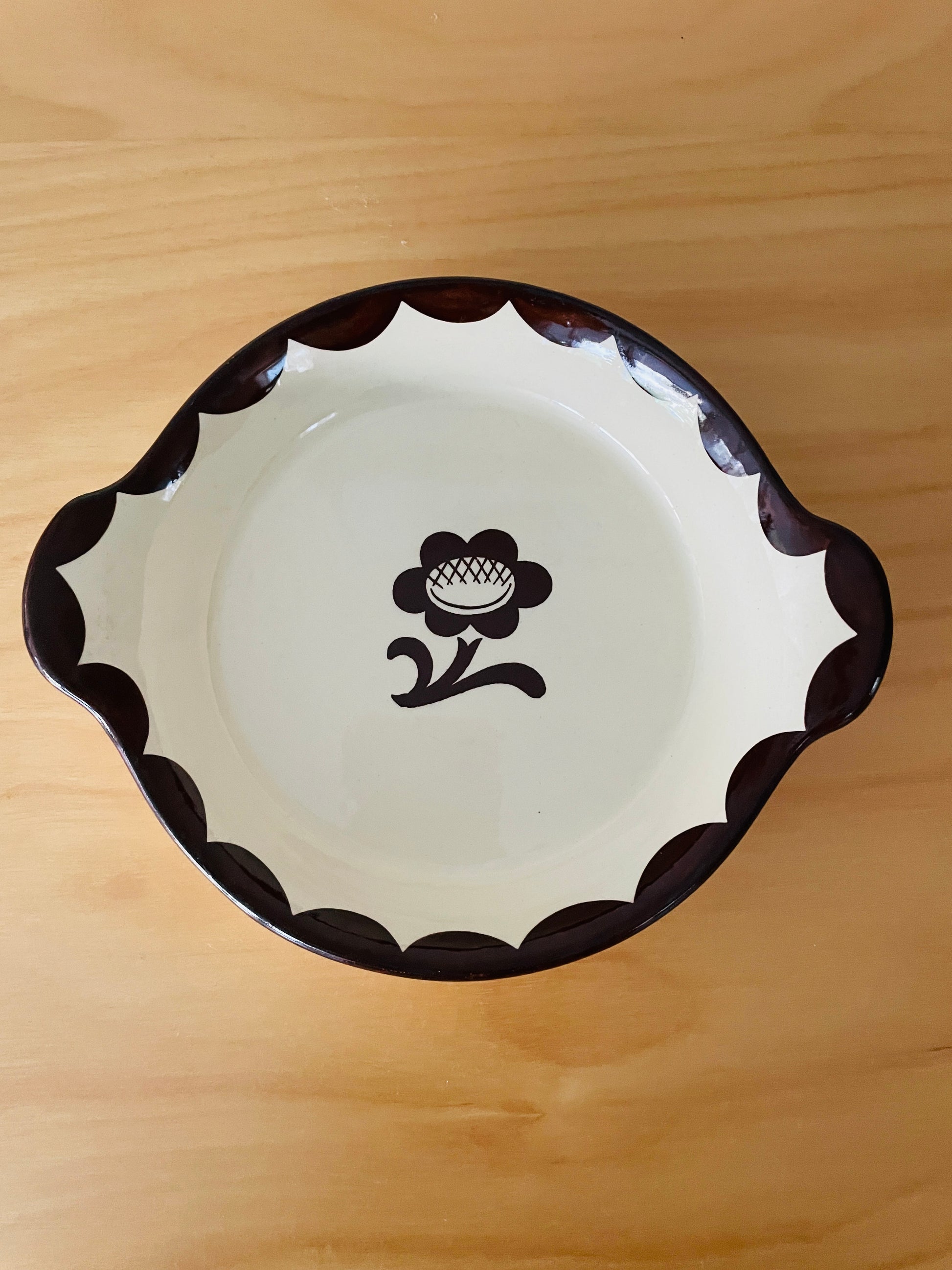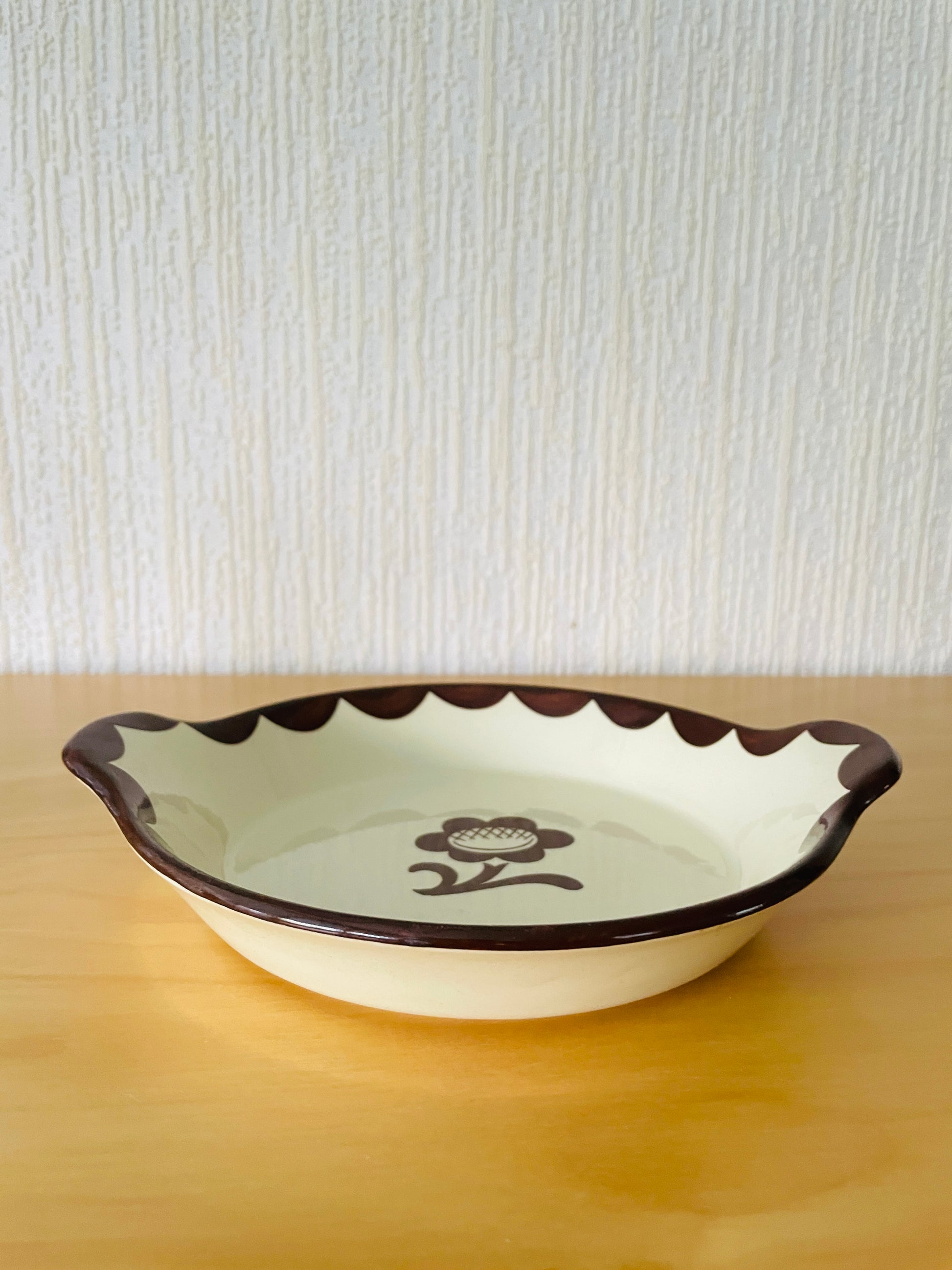 こげ茶色のお花とほかにもグリーン、ブルーの色違いもあります。1930年に、ピューロはその頃では画期的なオーブンデイッシュを売り出しました。