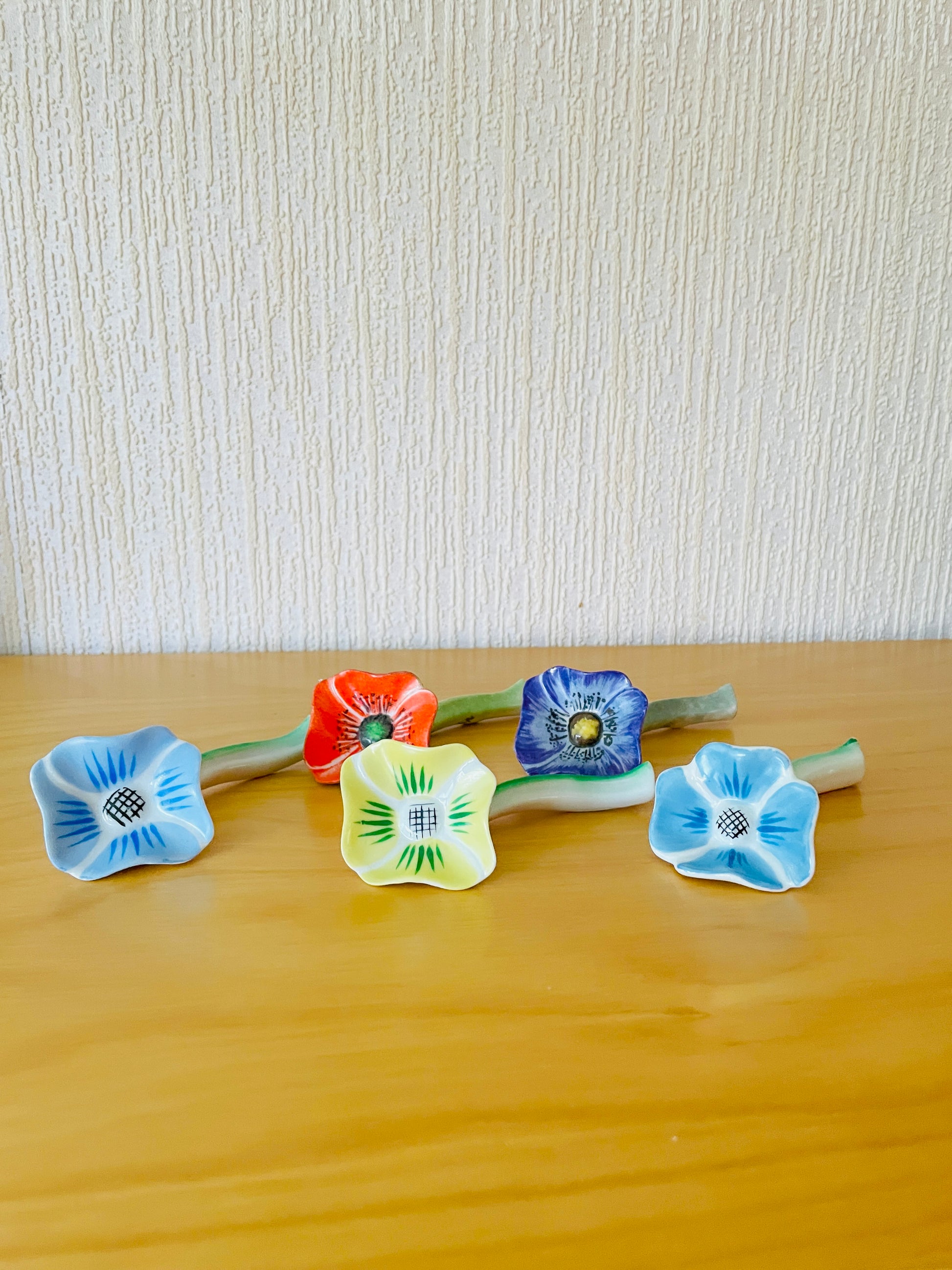 飾っても素敵なカトラリーレスト、ハンドペイントなので色具合がそれぞれ微妙に違って、どの色も欲しくなってしまう可愛らしさですね。