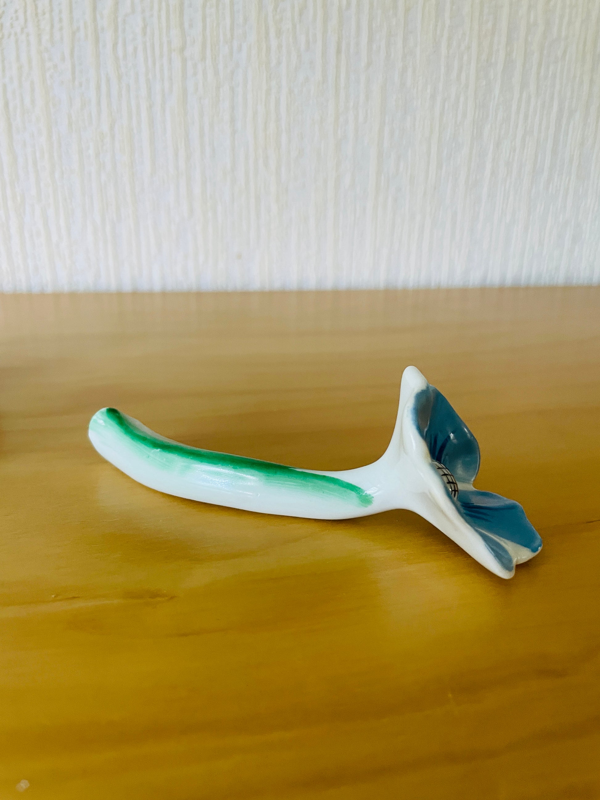 Hackefors/ハッケフォシュ窯より淡いブルー色のハンドペイントのお花がとても素敵なカトラリーレストです。