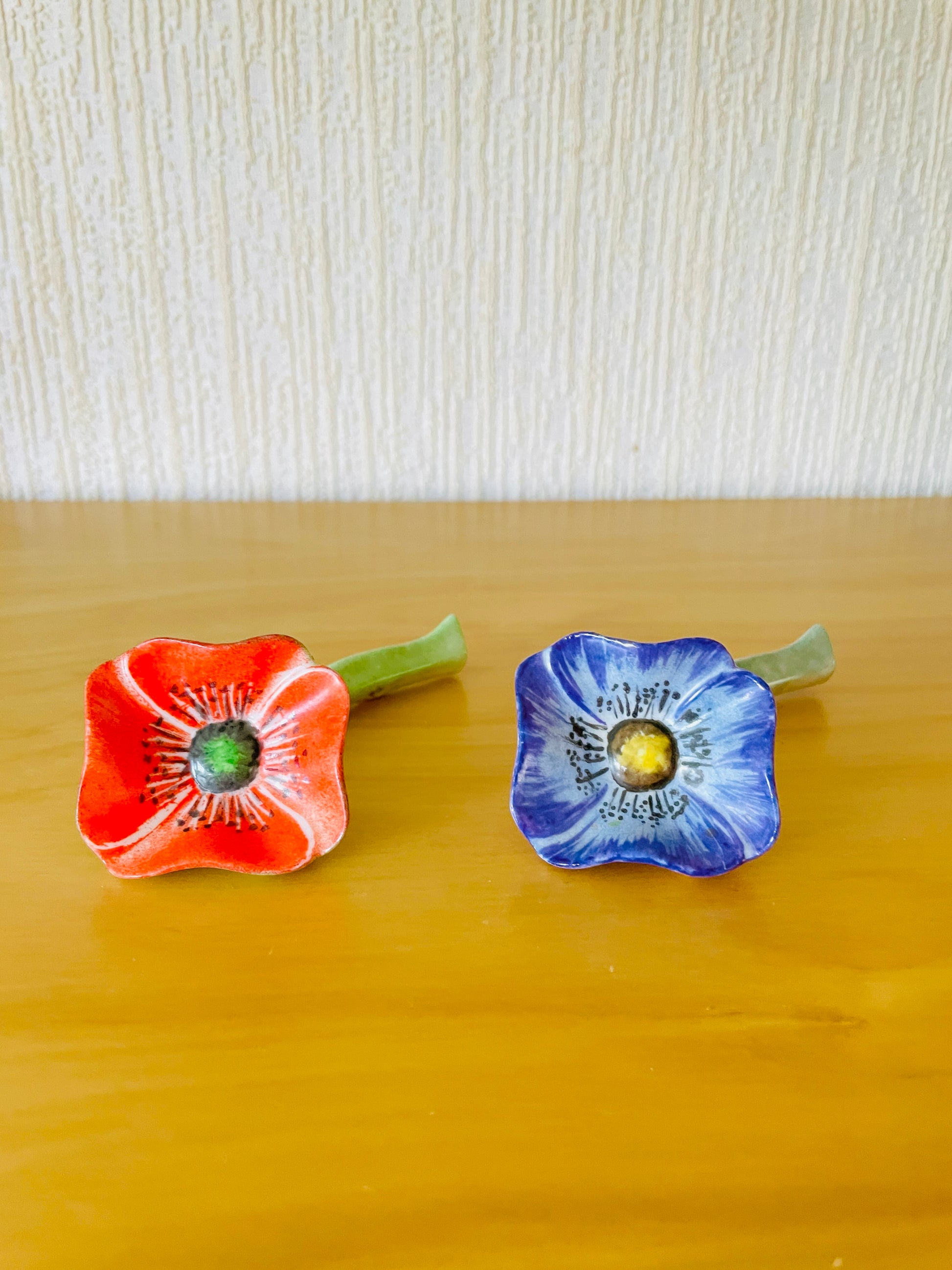 飾っても素敵なカトラリーレスト、ハンドペイントなので色具合がそれぞれ微妙に違って、どの色も欲しくなってしまう可愛らしさですね。