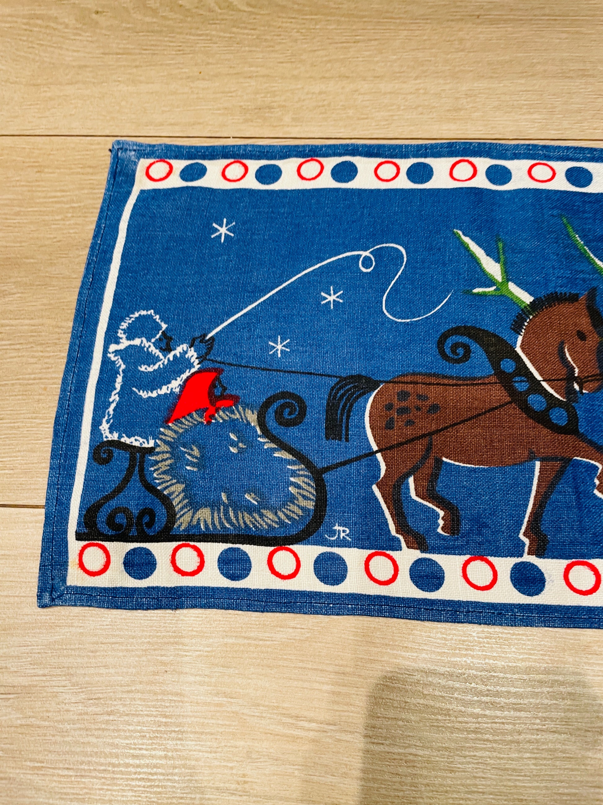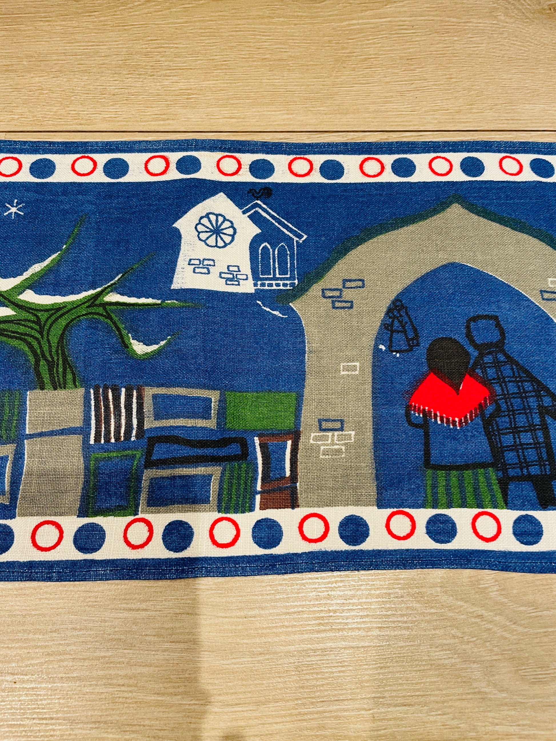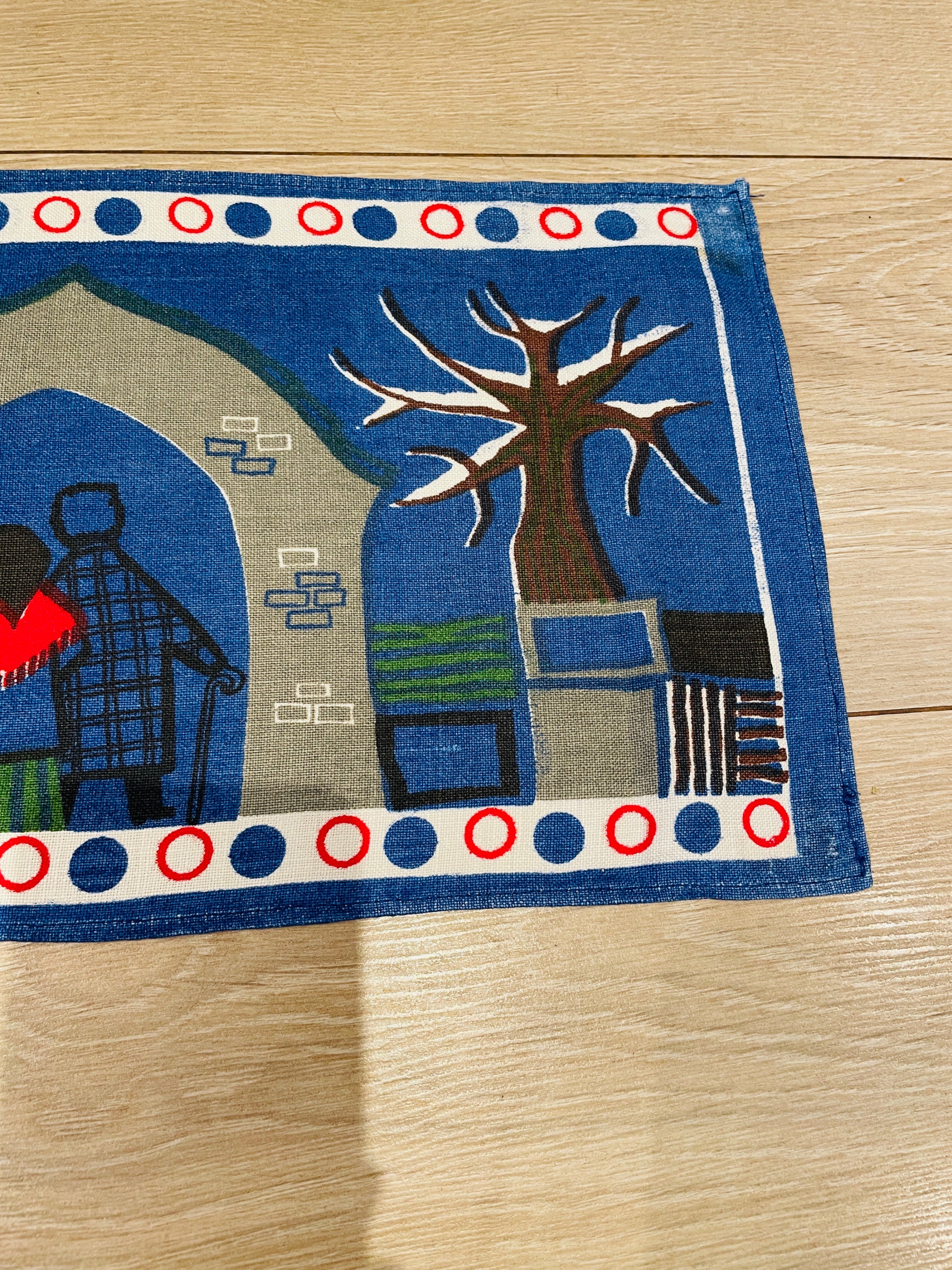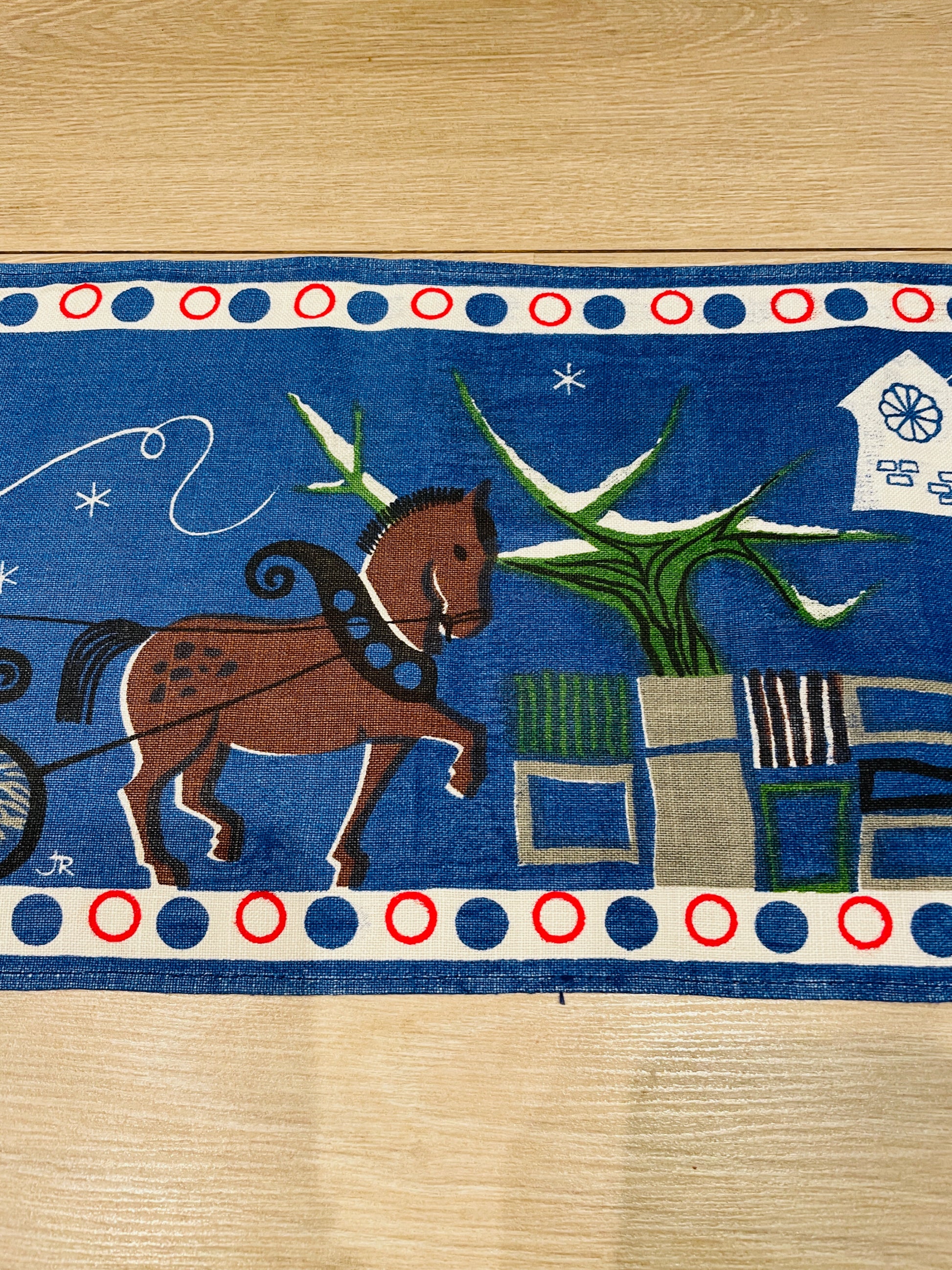 Jerry Roupe/ジェリー.ロウぺデザインによる、縦に長い壁にかけるタペストリーのご紹介です。 こちらでも大変人気があり、クリスマス時期になると高値でオークションに出される希少な作品になります。 可愛いトムテさんたちがクリスマスツリーを登っています。とても可愛らしくて、ユーモア溢れている作品です。ジングルベル付きです。オリジナルのジェリーロウペの作品です。