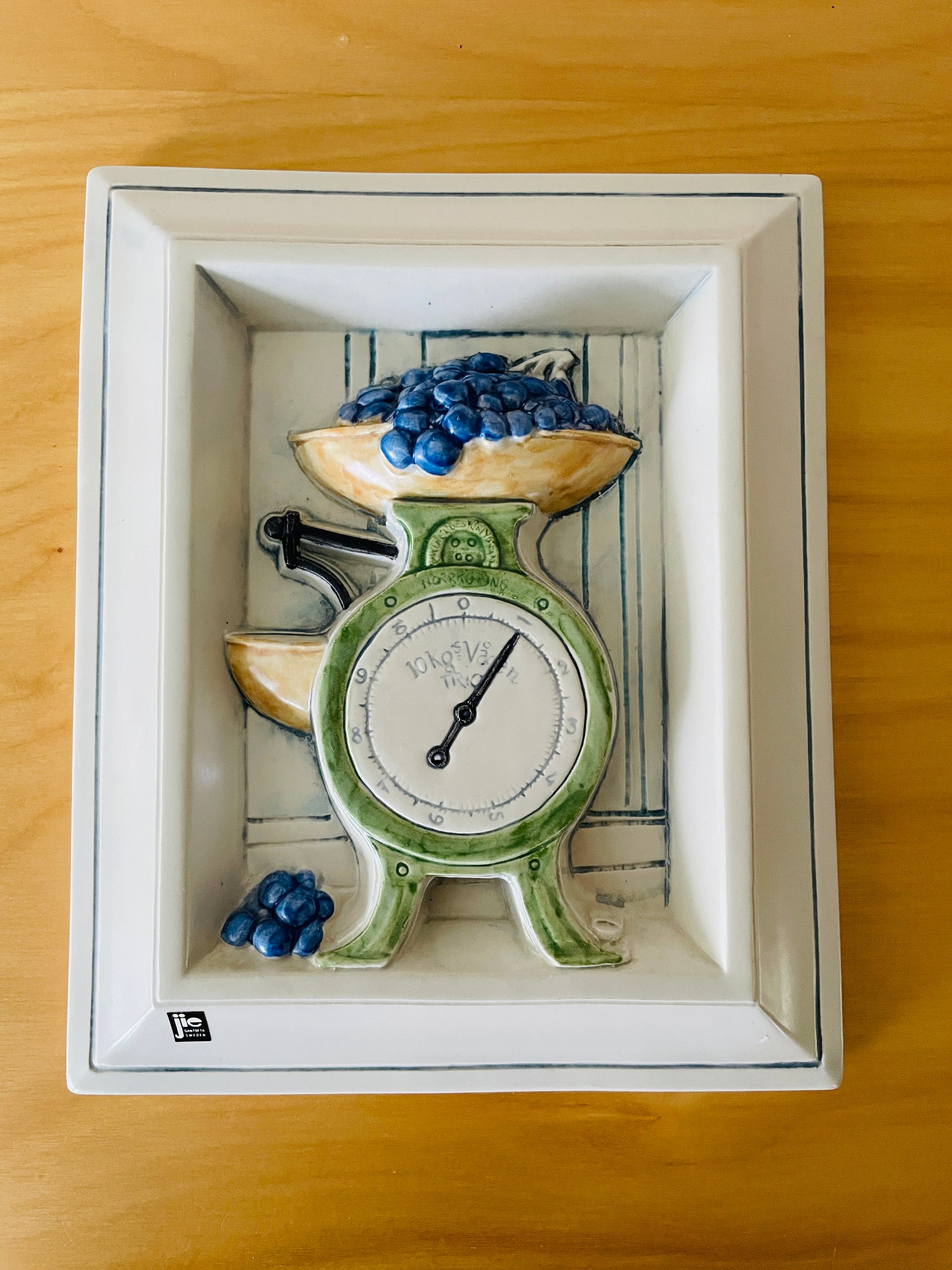 Jie Gantofta/ジイ.ガントフタ/陶板/スウエーデンの昔のキッチンシリーズ/ブルーベリーと秤