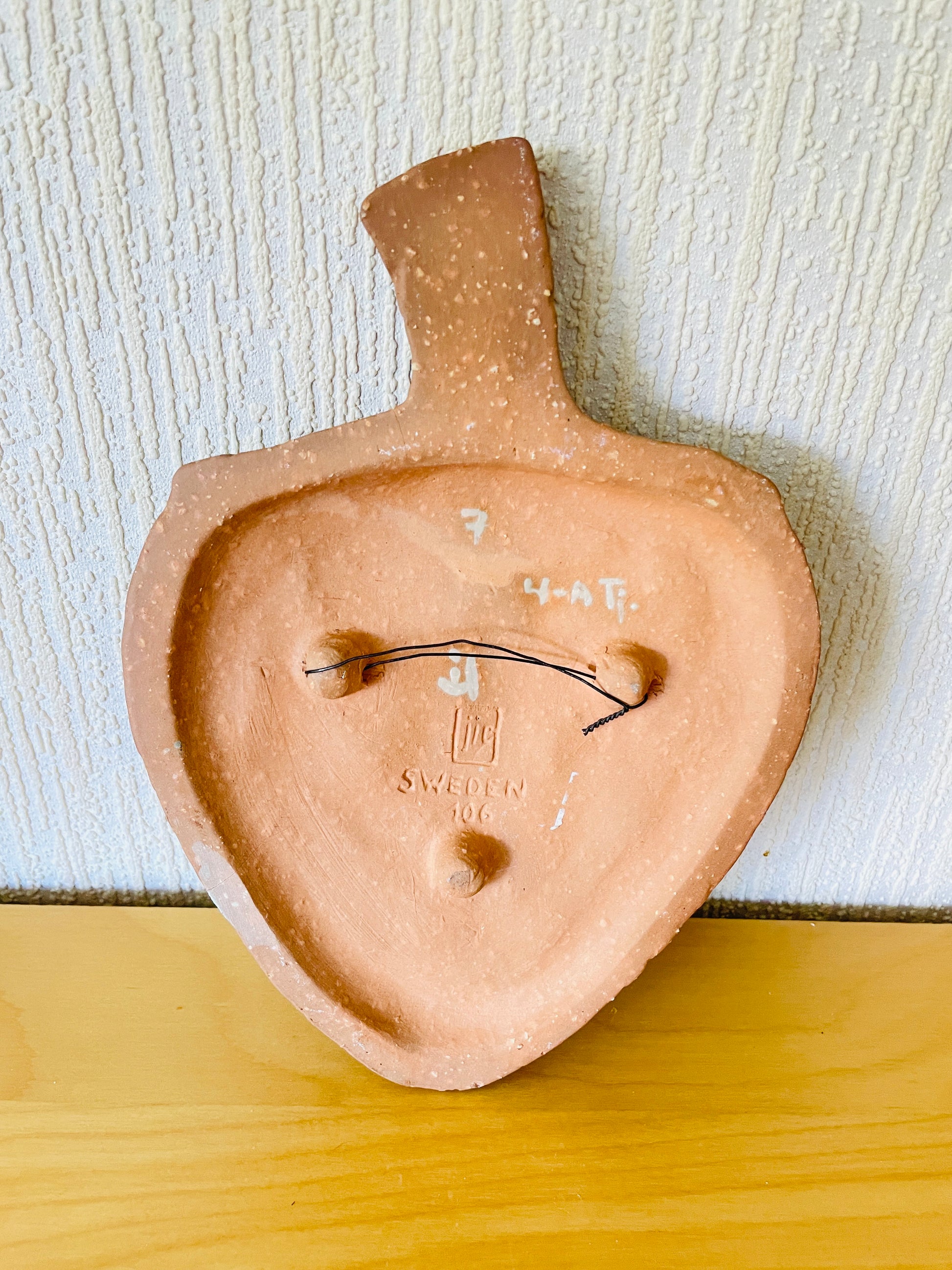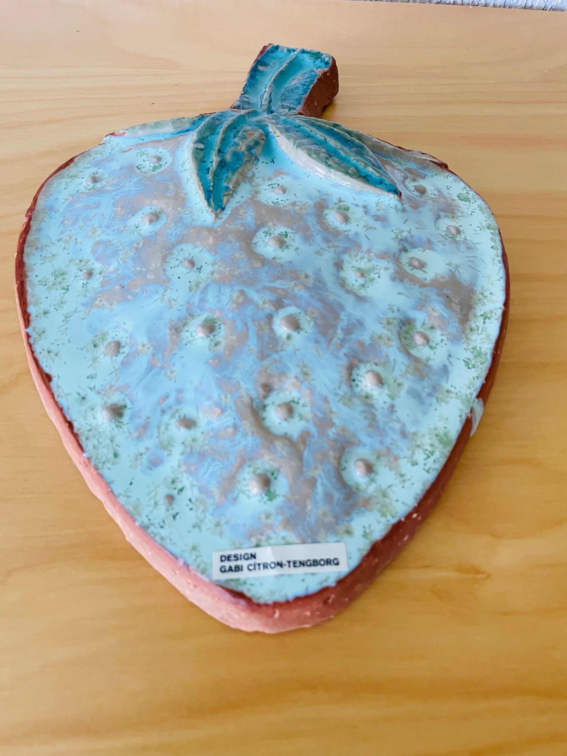 こちらのとっても素敵な淡いエメラルドグリーンカラーのイチゴの陶板の、デザインはGabi(Gabriell)Citron-Tengborg/ガビ シトロン-テンボリによるものです。 ジイガントフタ時代に彼女自身よる一点ものの製作された、アートピースになります。彼女はJie Gantofta/ジイガントフタに1972年-1974年の間、所属して、又グスタフスベリのStig Lindberg/スティグ リンドベリの下でも活動していました。