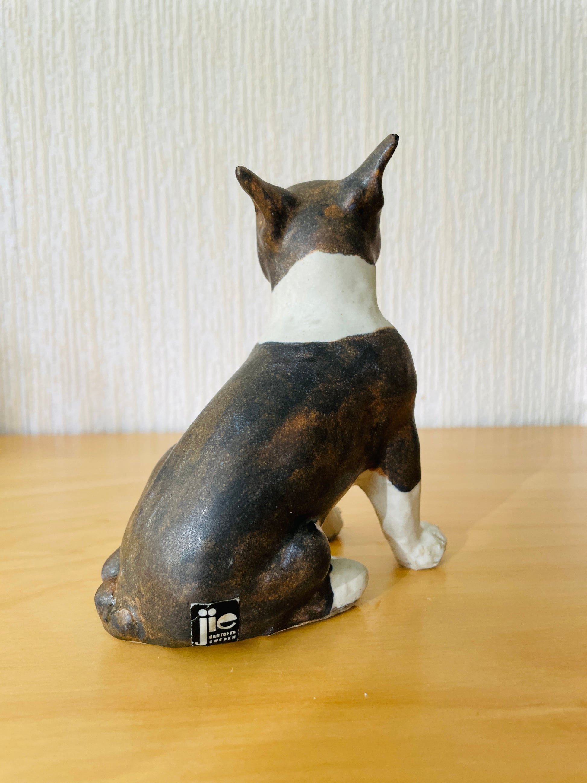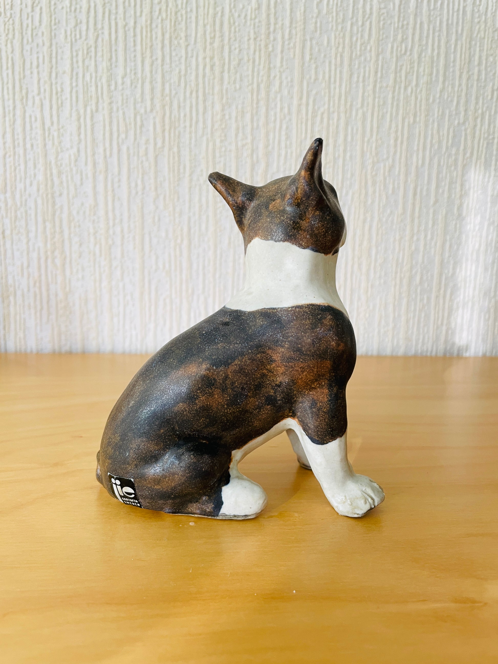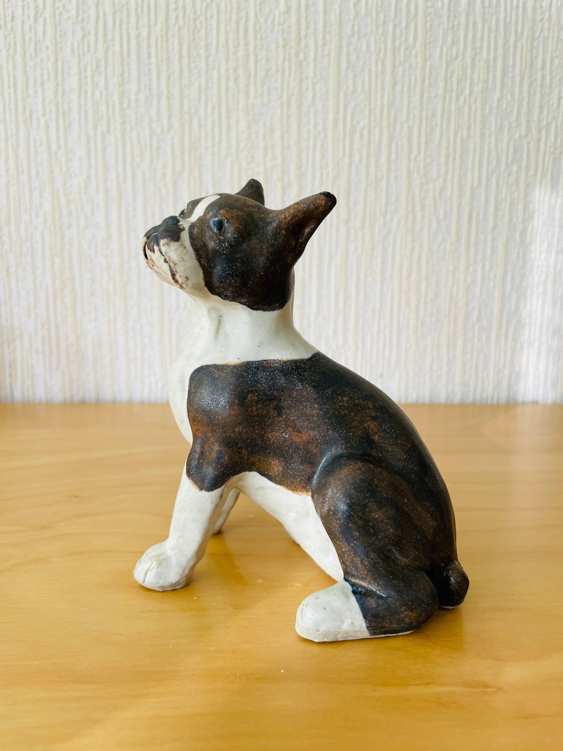Jie Gantofta/ジィ ガントフタ/ケンネルシリーズより、大変珍しいボストンテリアのオブジェのご紹介です。先日、ご紹介しました陶板と同じ作者の作品になります。顔の表情や胸の厚み、喉の弛み具合など、ボストンテリア好きにはたまらない作品です。デザインはMaria Erikcson/マリア.エリックソンです。彼女はワンちゃんのオブジェなどワンコシリーズを沢山制作しています。1970年代の作品で、この当時こちらスウエーデンではボストンテリアが大変人気の犬種でもありました。ただ、あまり製作数が少なかったので、あまり出回ってはいなかったようです。大変希少な作品です。当店初入荷になります。
