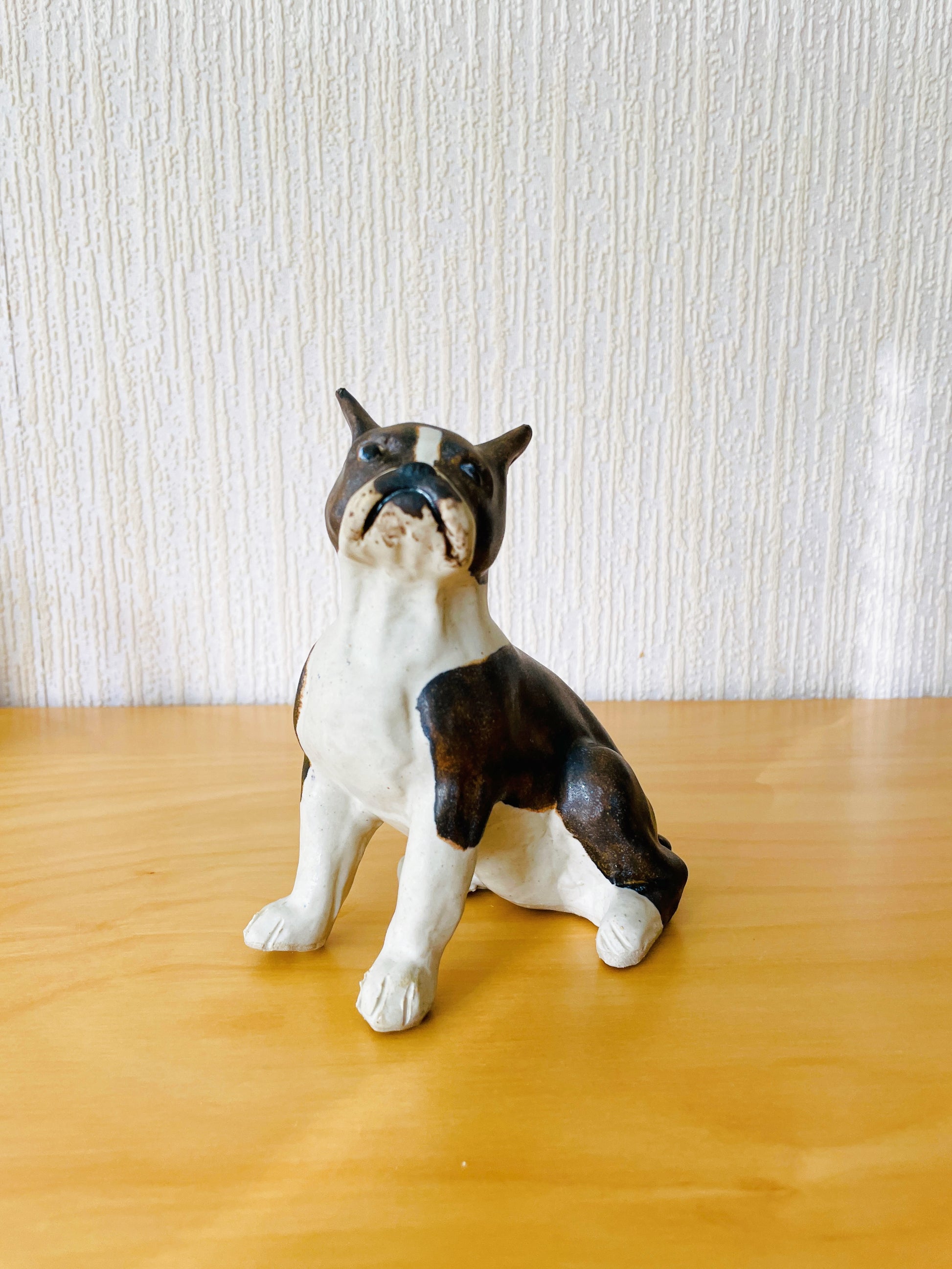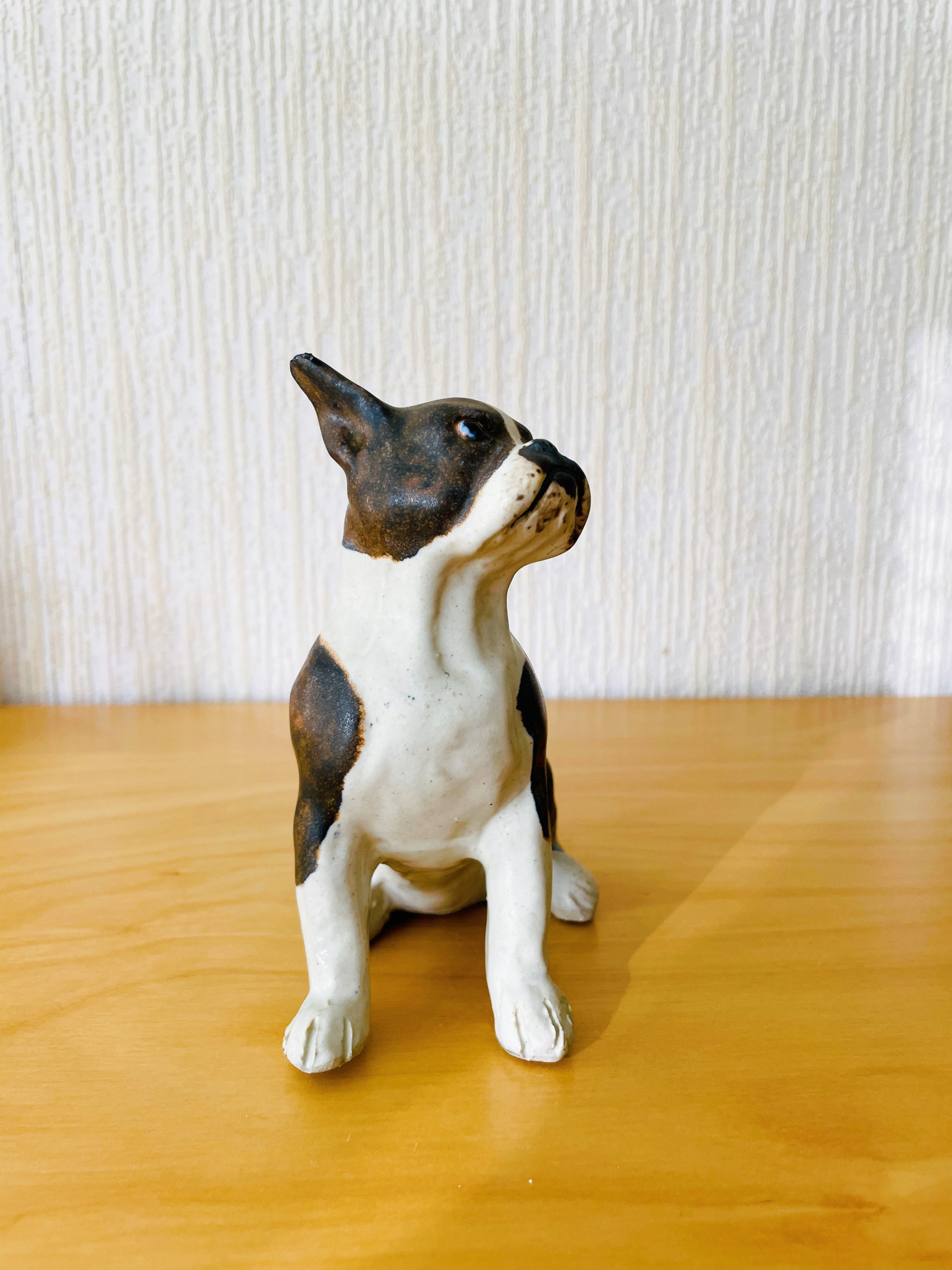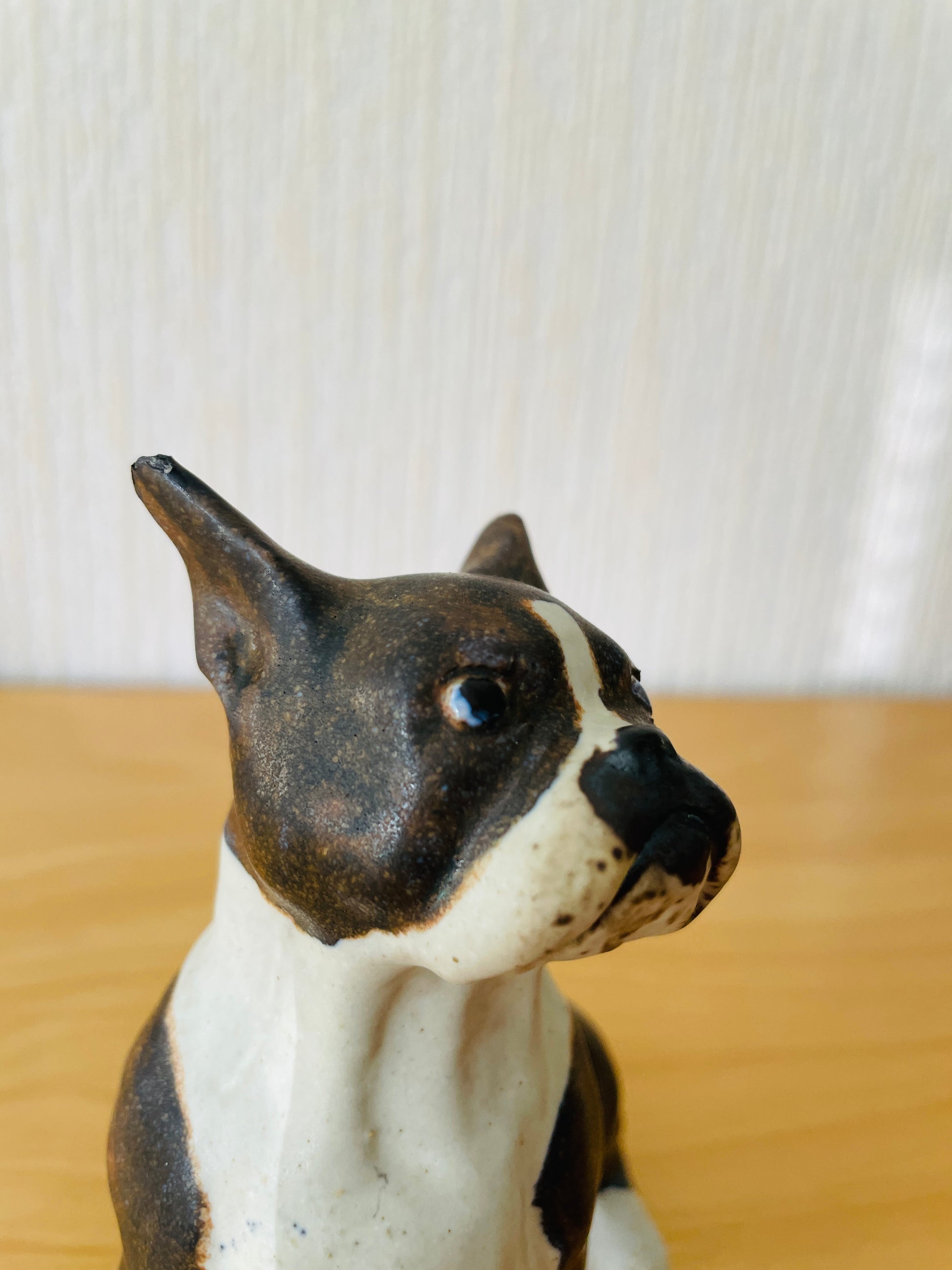 Jie Gantofta/ジィ ガントフタ/ケンネルシリーズより、大変珍しいボストンテリアのオブジェのご紹介です。先日、ご紹介しました陶板と同じ作者の作品になります。顔の表情や胸の厚み、喉の弛み具合など、ボストンテリア好きにはたまらない作品です。デザインはMaria Erikcson/マリア.エリックソンです。彼女はワンちゃんのオブジェなどワンコシリーズを沢山制作しています。1970年代の作品で、この当時こちらスウエーデンではボストンテリアが大変人気の犬種でもありました。ただ、あまり製作数が少なかったので、あまり出回ってはいなかったようです。大変希少な作品です。当店初入荷になります。