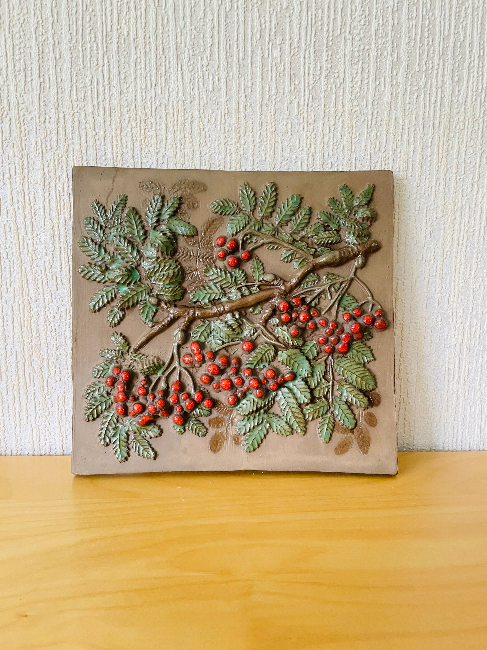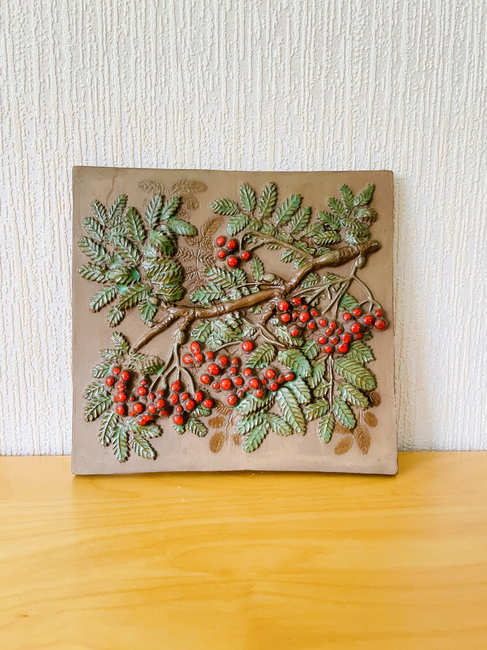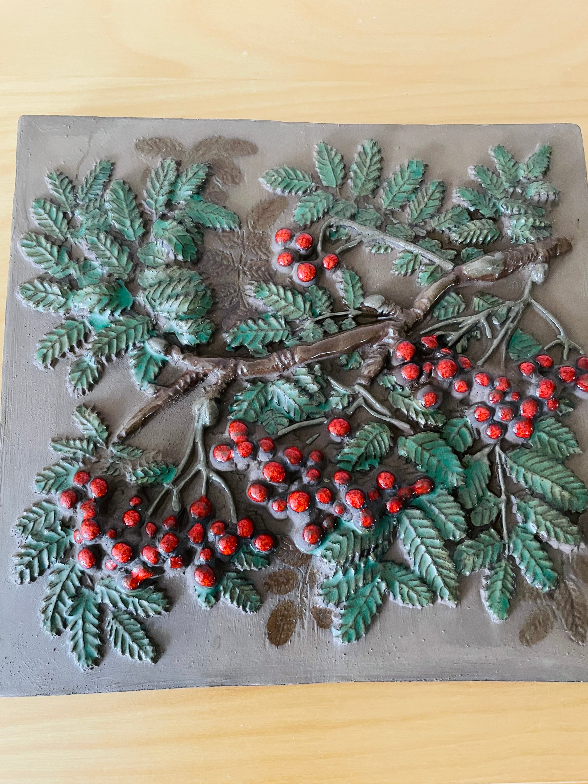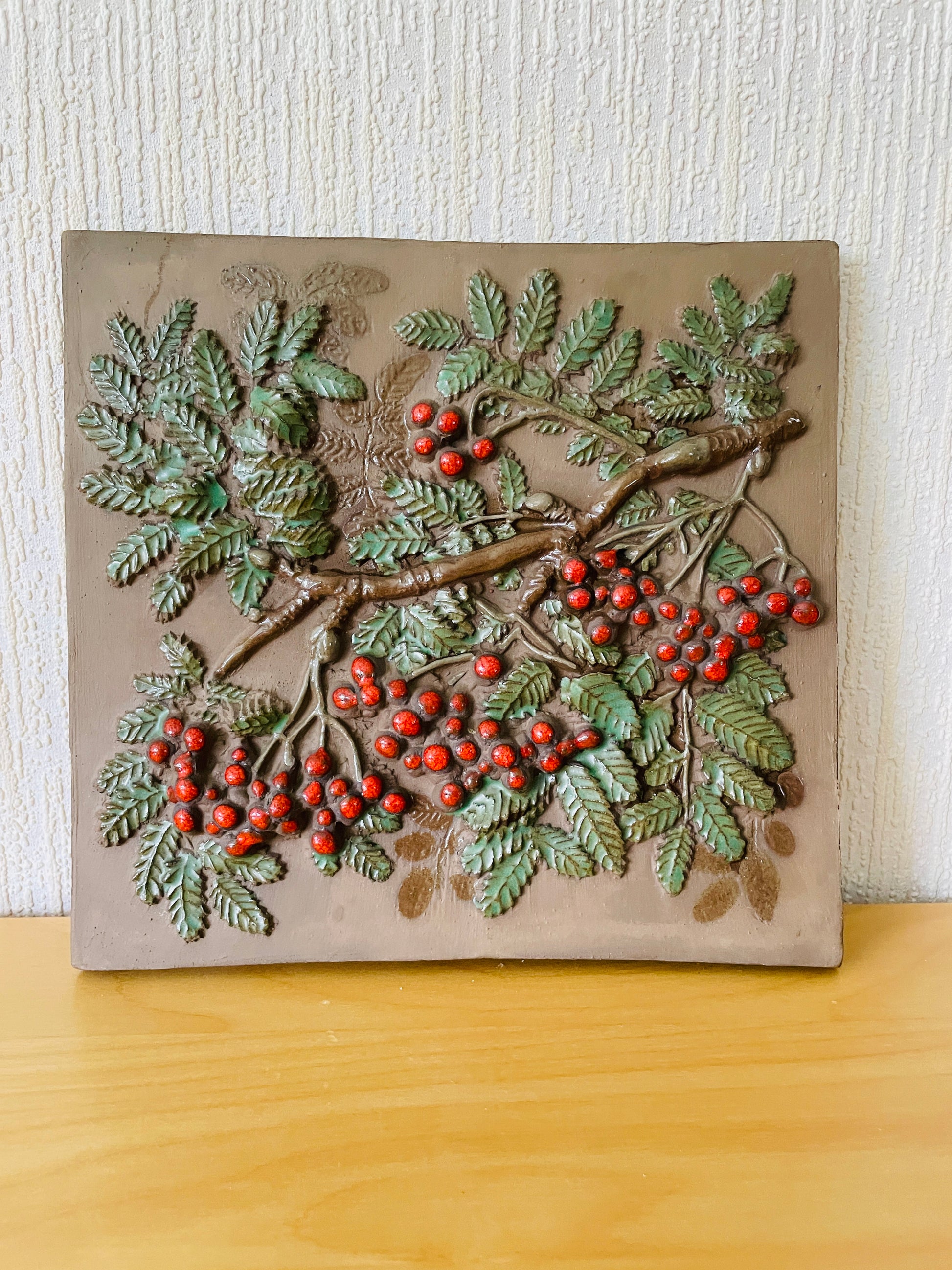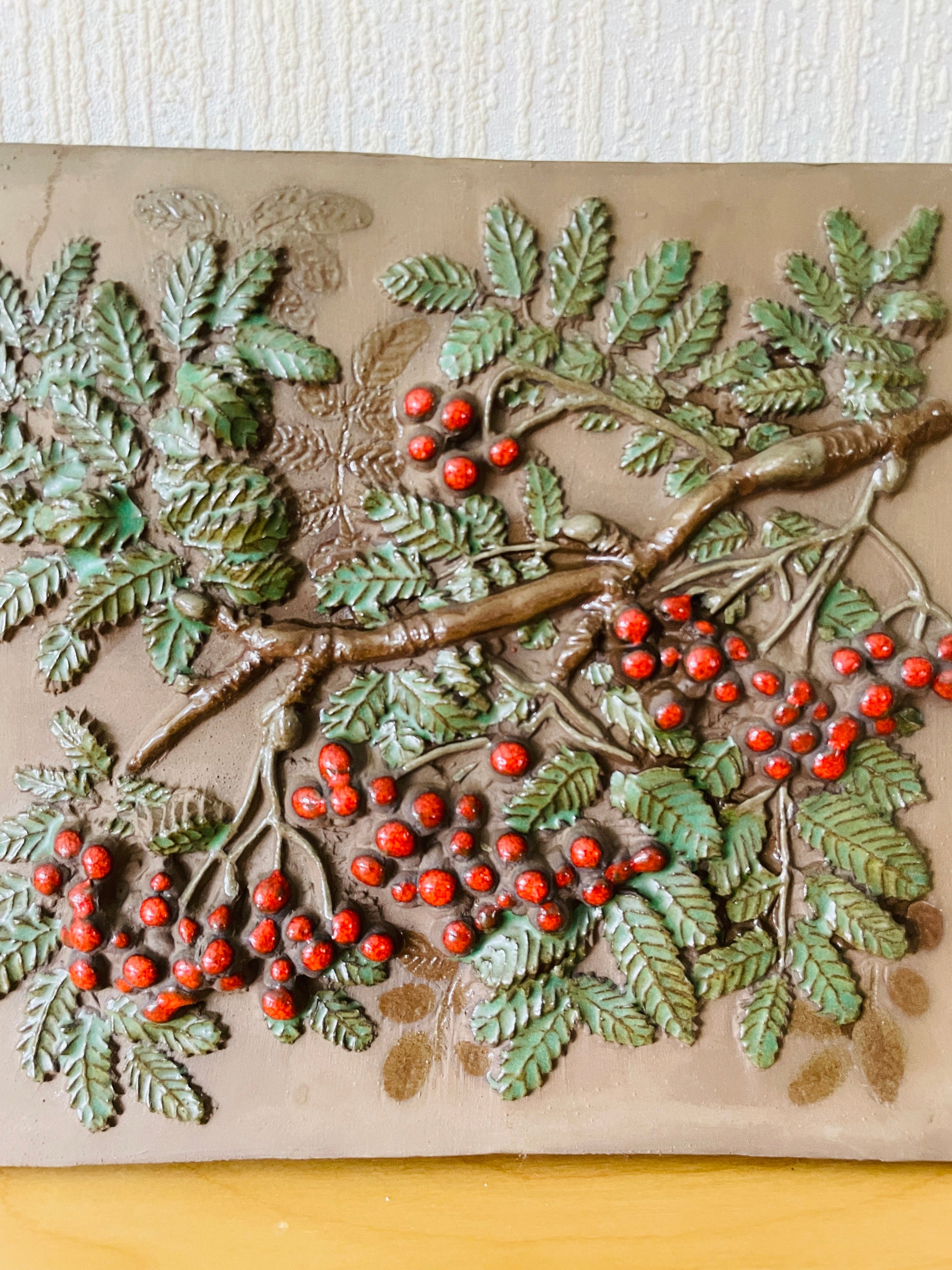 Jie Gantofta/ジイガントフタよりナナカマドの実と葉っぱが立体的にまるで浮き上がって見える、とても素敵な陶板のご紹介です。