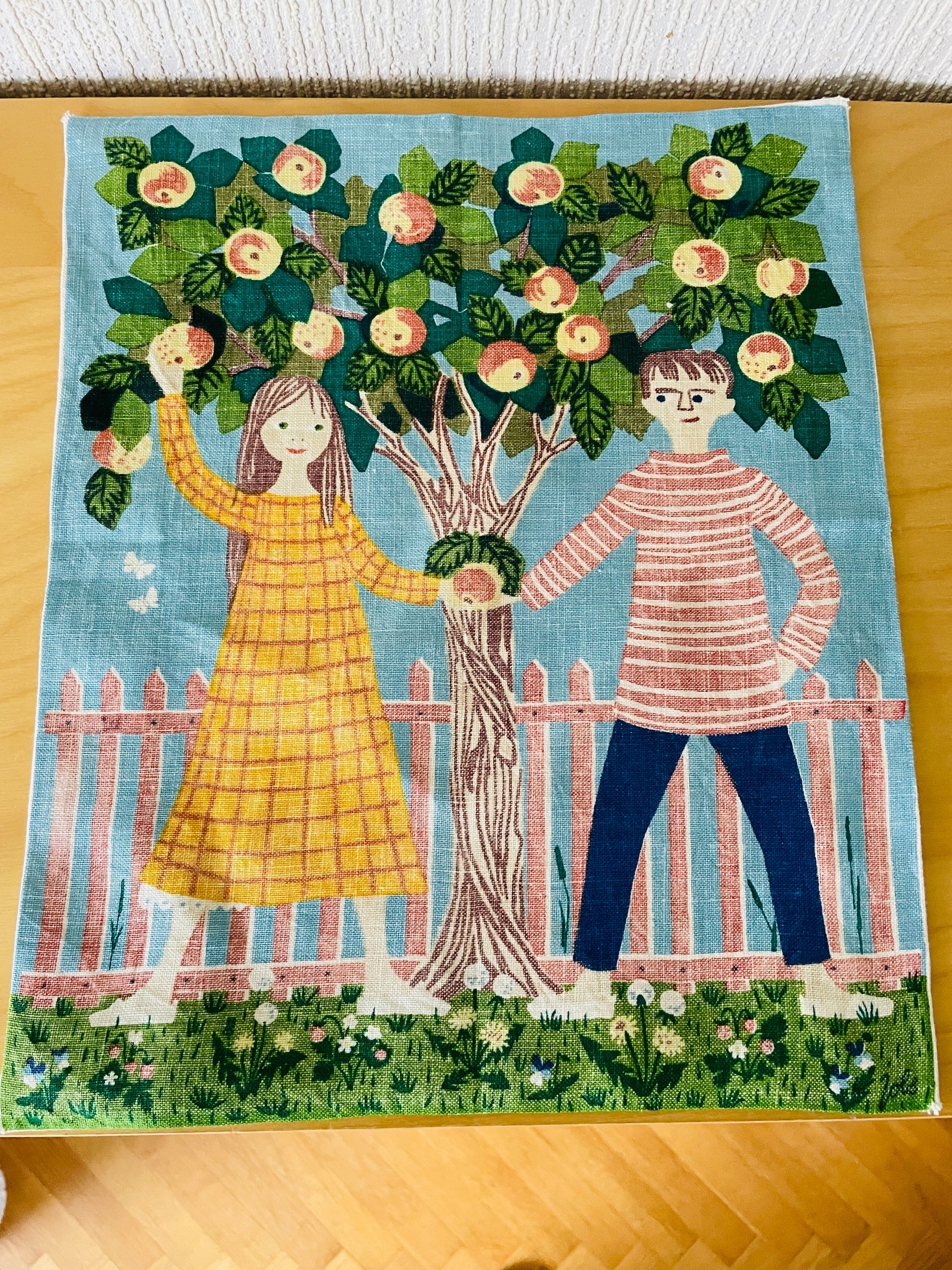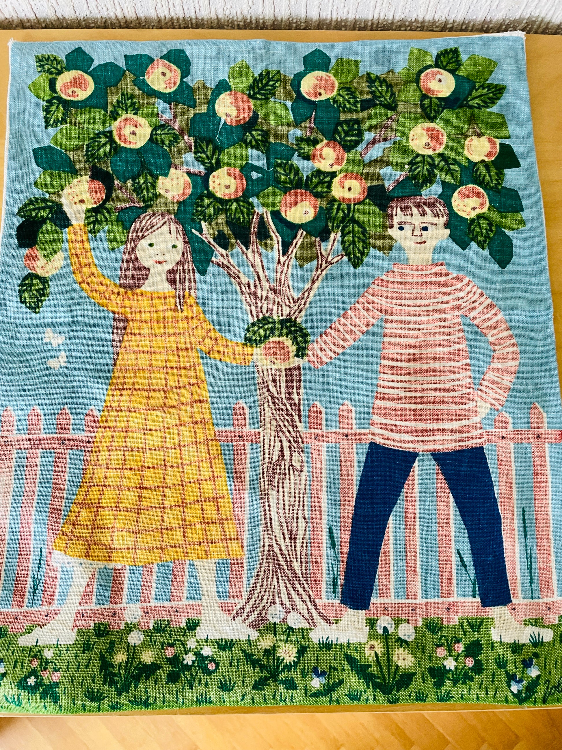 Goken Jobs Handtryck/ジョブスからLisbet Jobs/リスベット.ジョブスデザインによる、エデンという題目のリネン地のタペストリーのご紹介です。
