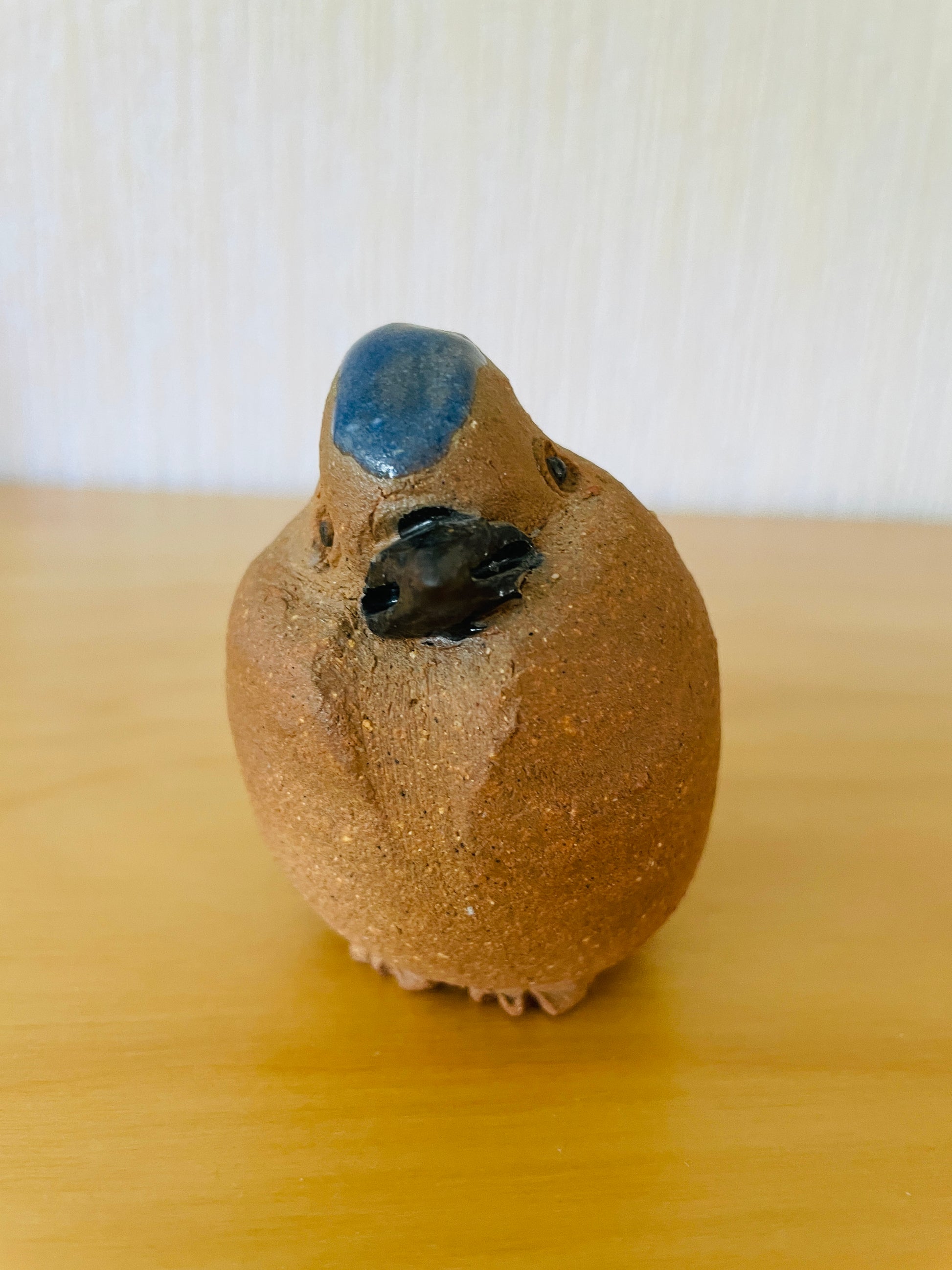 土の特徴を活かした、今にも動き出しそうな、ことりが見事な作品です。