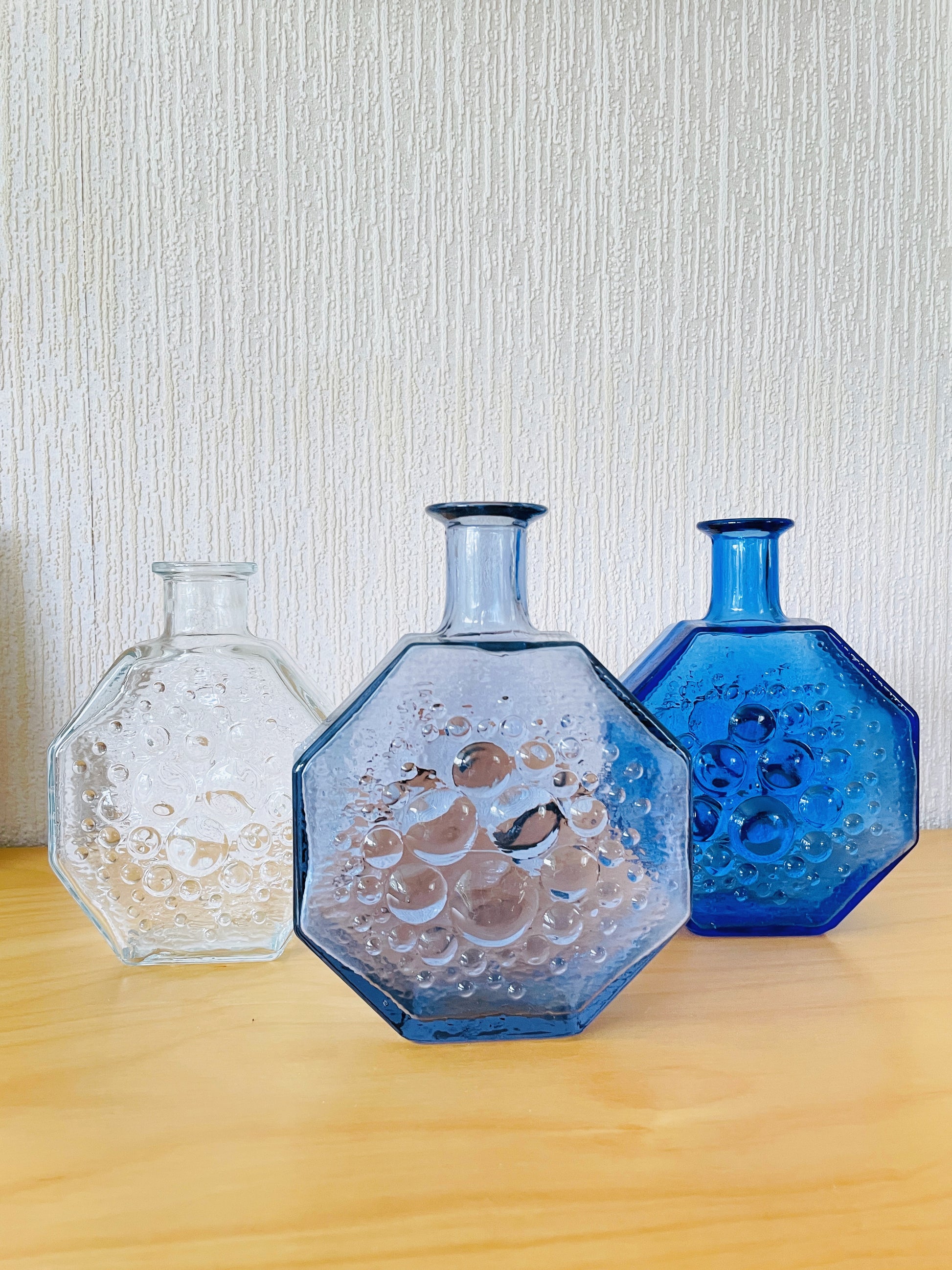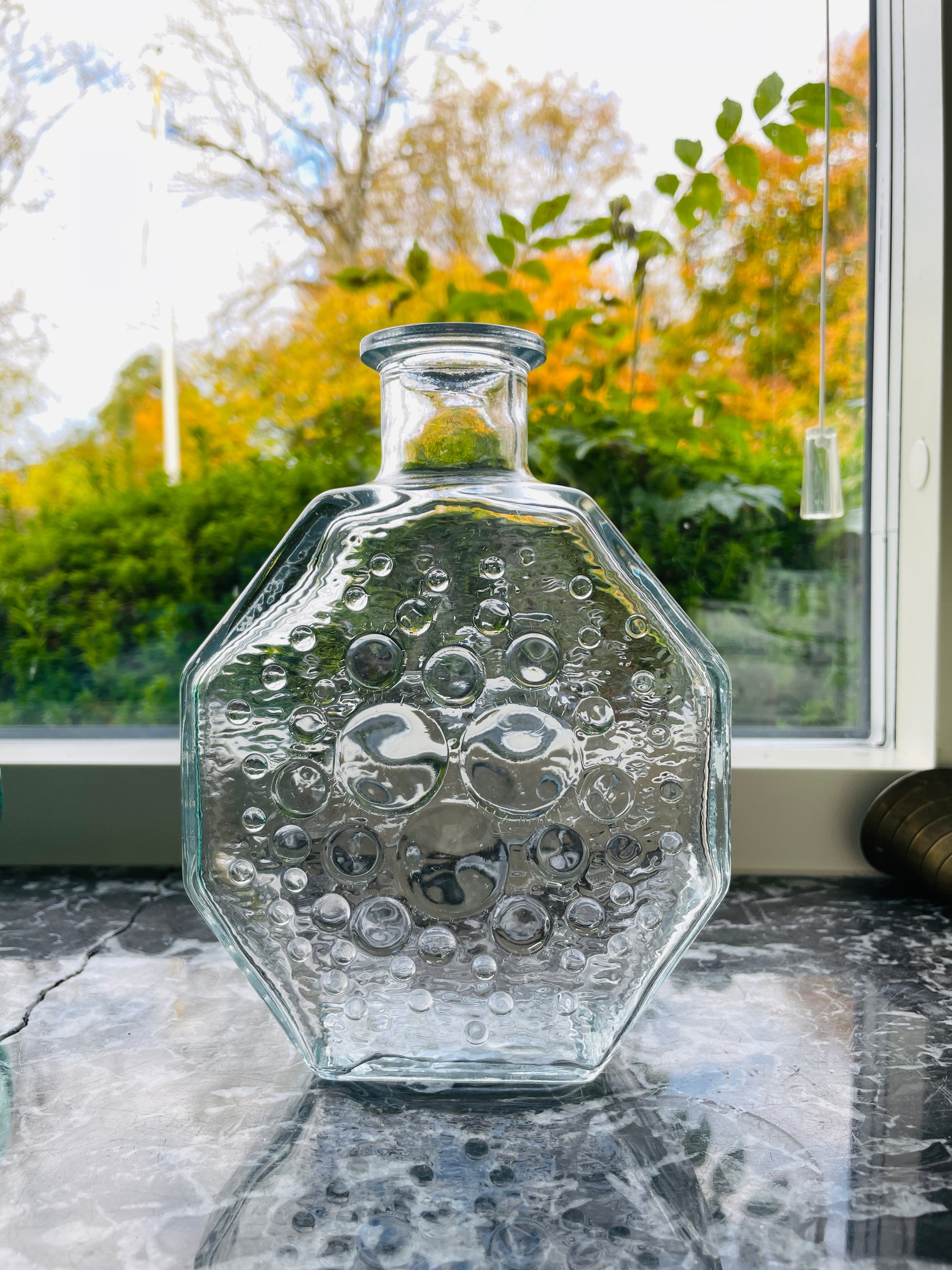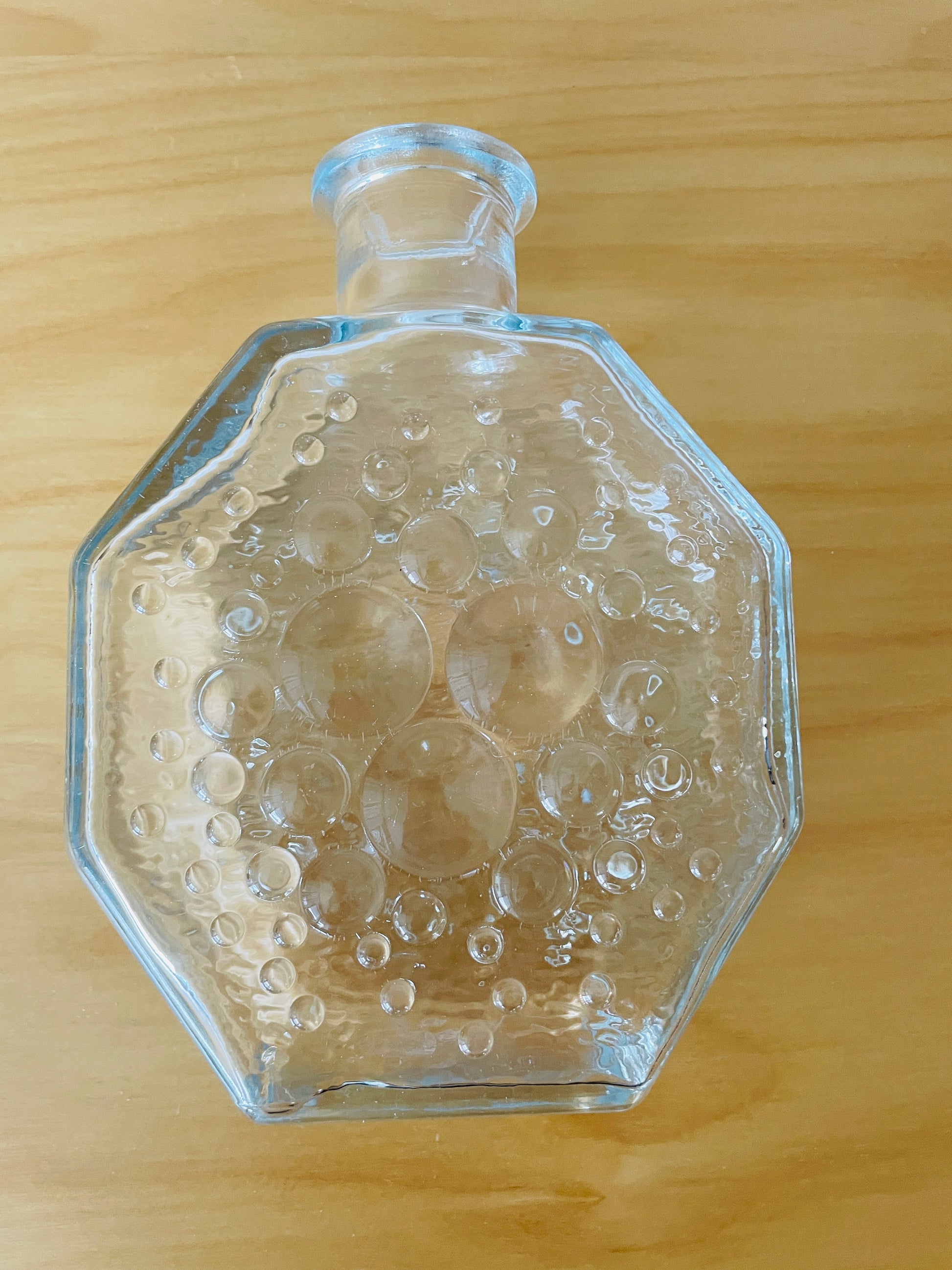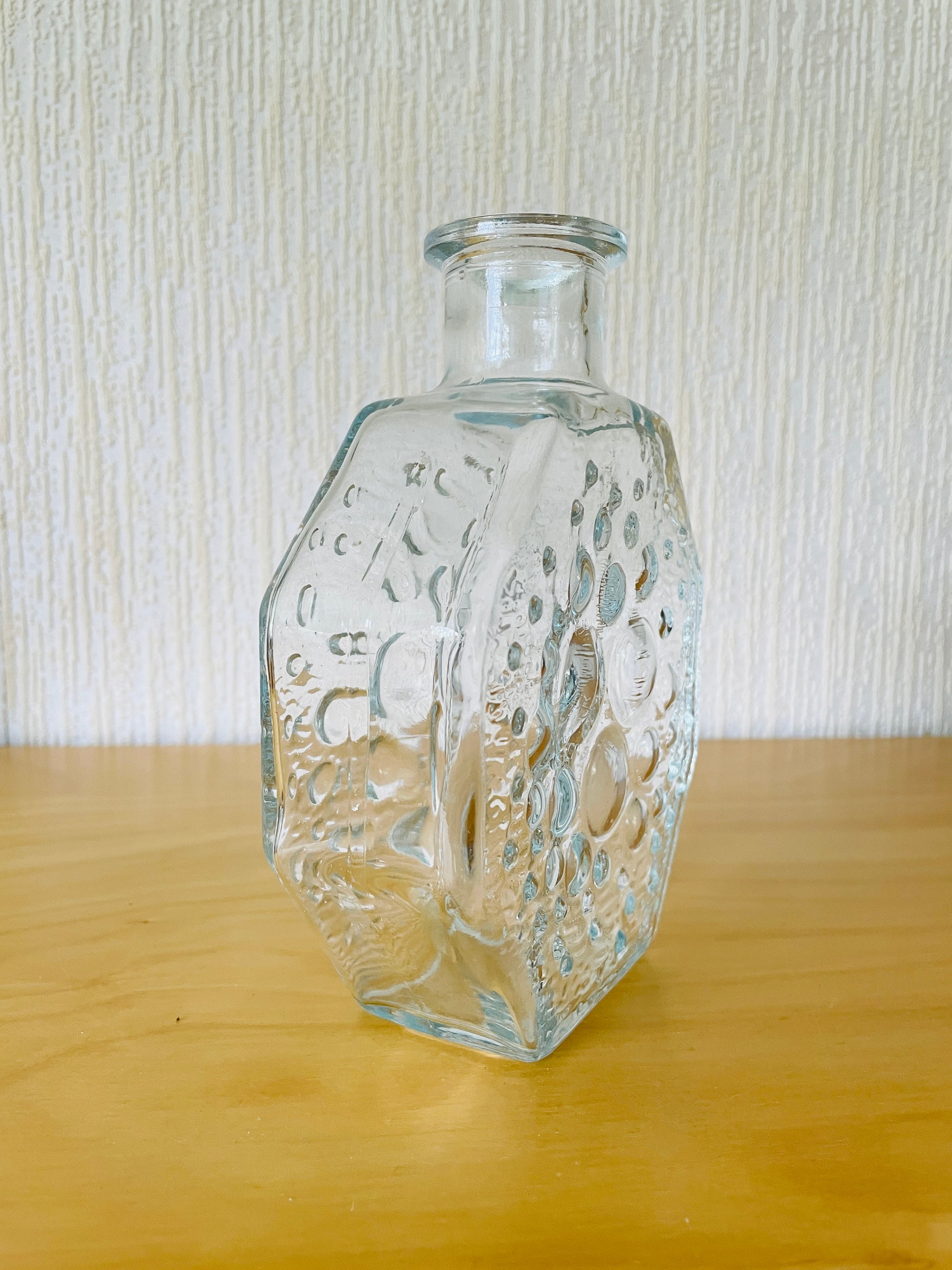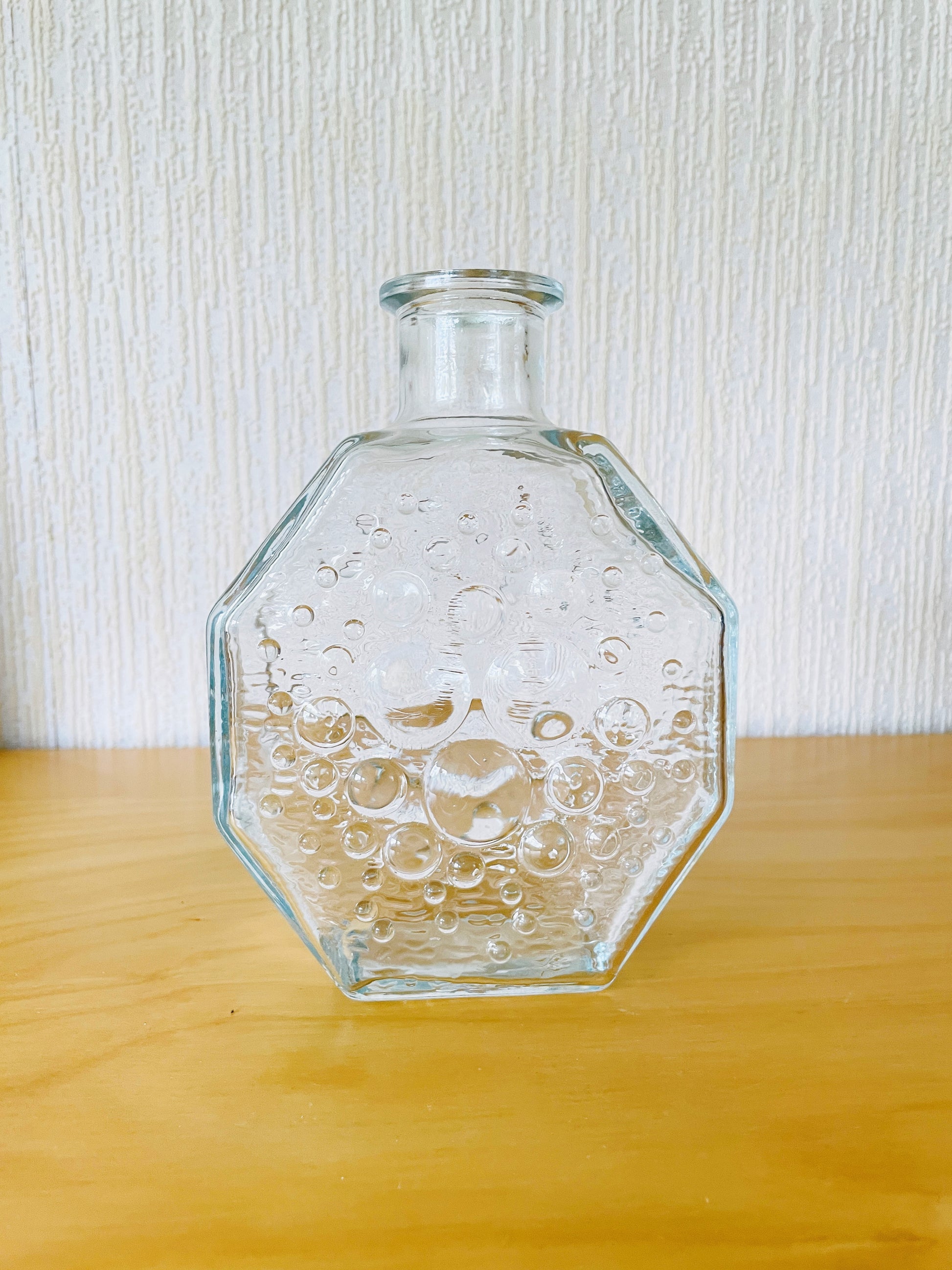 フインランドのガラスメーカー、Riihimäenlashi/リイヒマエンラシ社からStella Polaris/ステラポラリスのクリアのガラスのボトルのご紹介です。Nanny Still/ナニー.ステイルによるデザインです。