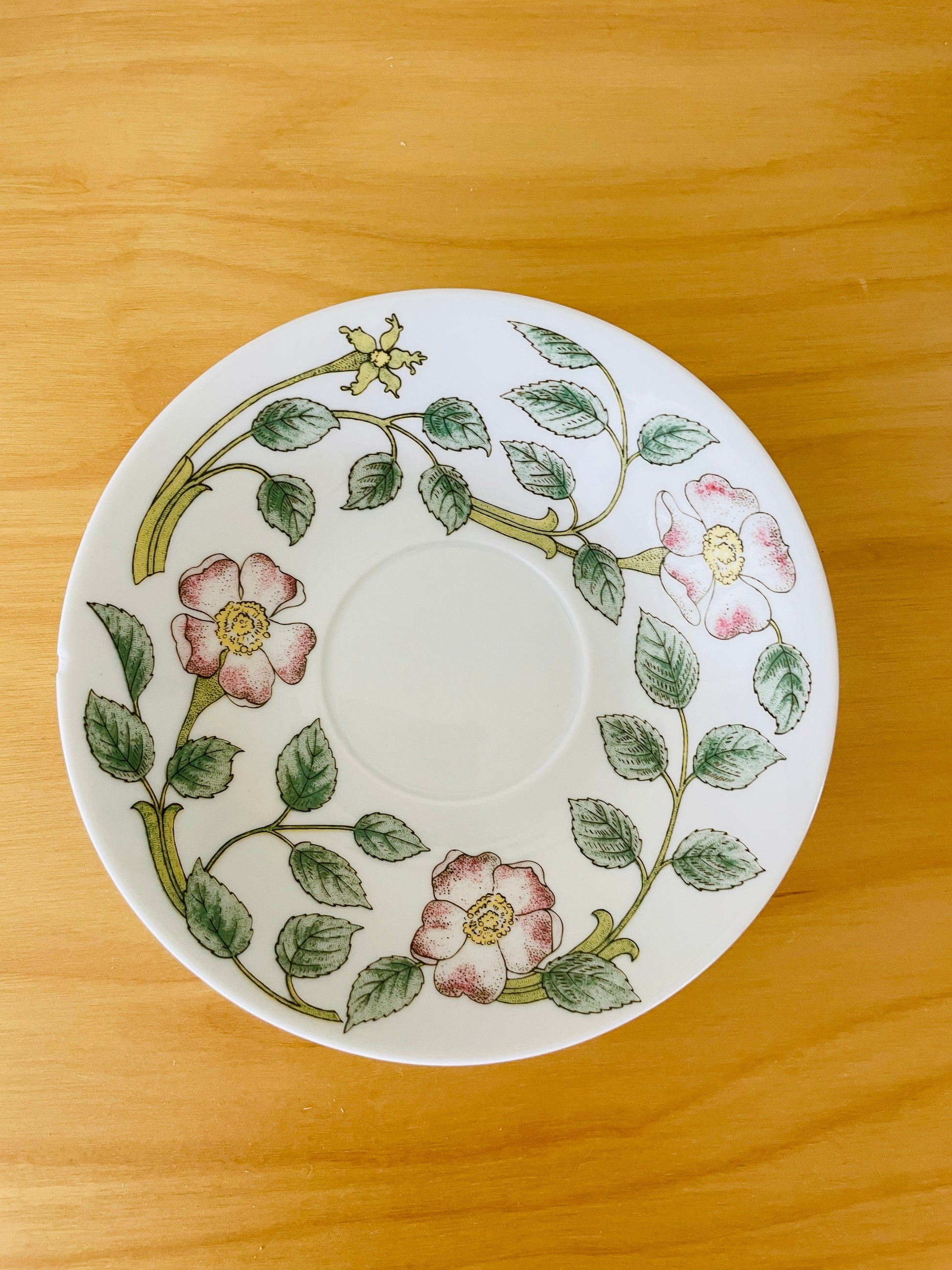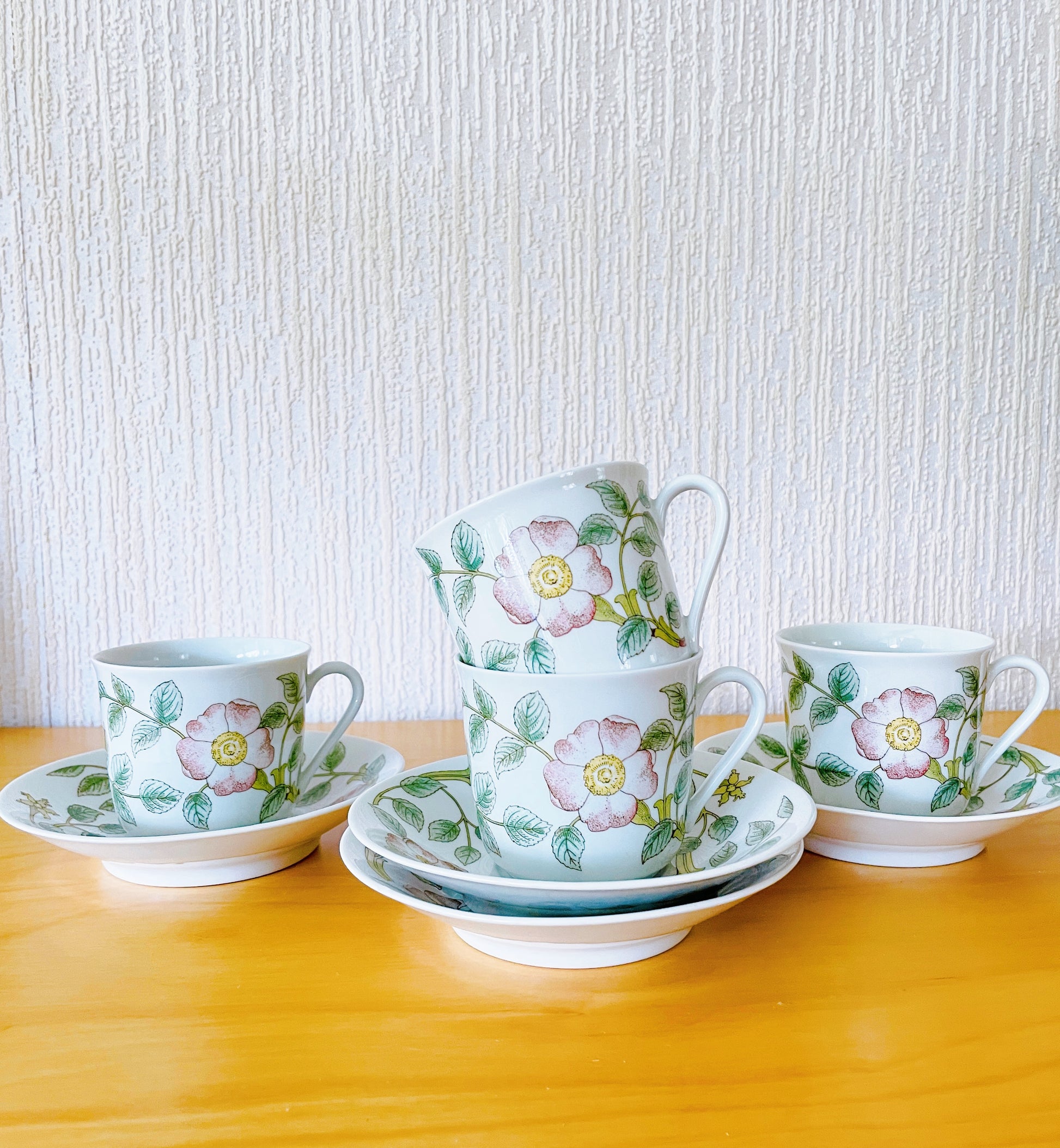 Rörstrand/ロールストランドより、Nyponros/ニッポンローズのカップ&ソーサーのご紹介です。ニッポンローズとはハマナスの花の事で、英名をローズヒップと言います。こちらでは海外沿いに多く自生していて、夏の季節にとても優美な匂いを放ちます。デザインはJackie Lynd/ジャッキー.リンドでフオルムはシルビアのカップ&ソーサーと同じです。こちらの萌えポイントはカップの底とソーサーの裏にデザインされた、お花のデザインがとても素敵な作品です。コーヒーカップのみの製造販売されたものです。ボタニカルアートのような繊細なタッチと淡い色合いがお花好きな方にお勧めなカップ&ソーサーです。4セット入荷しました。