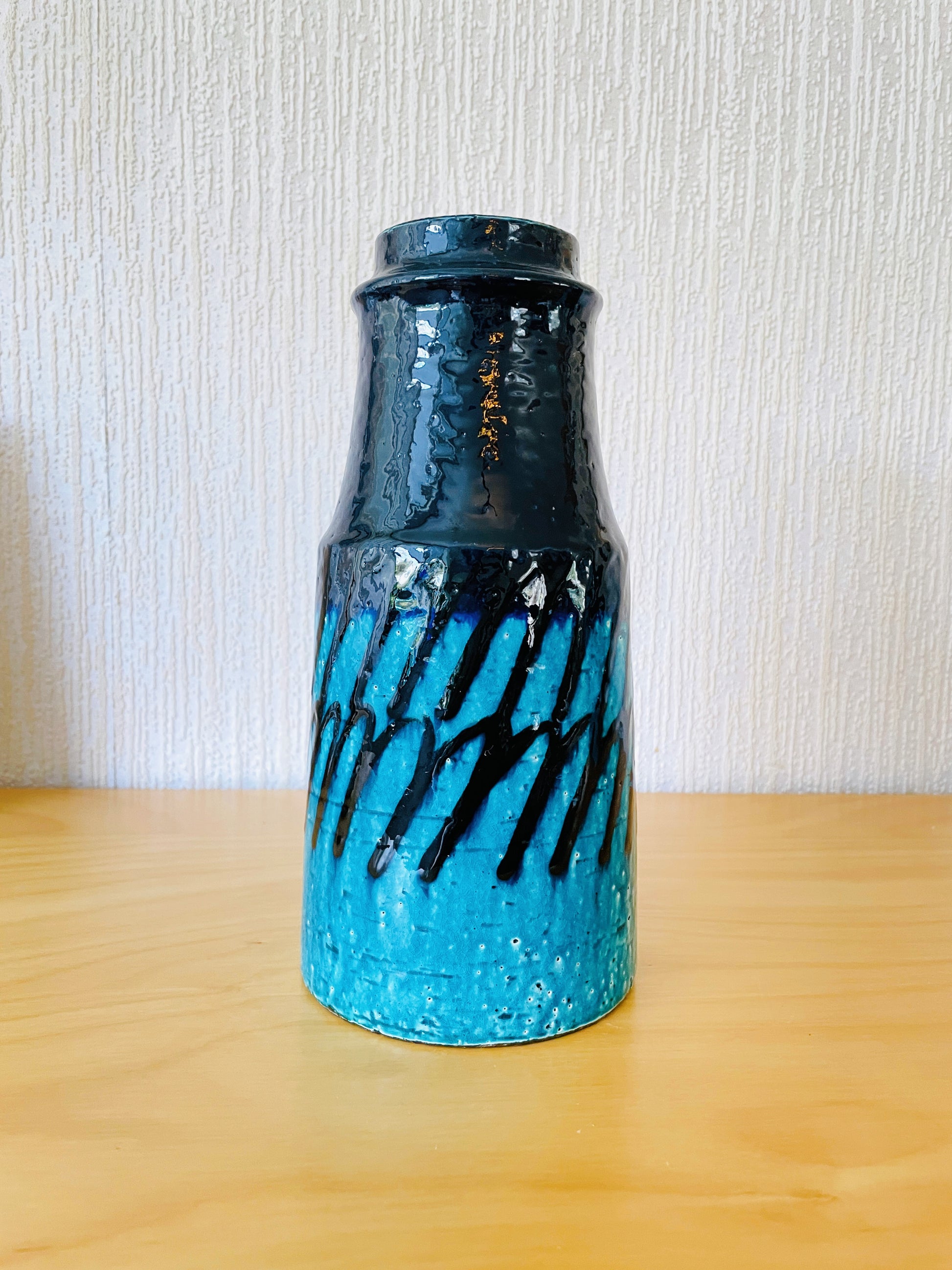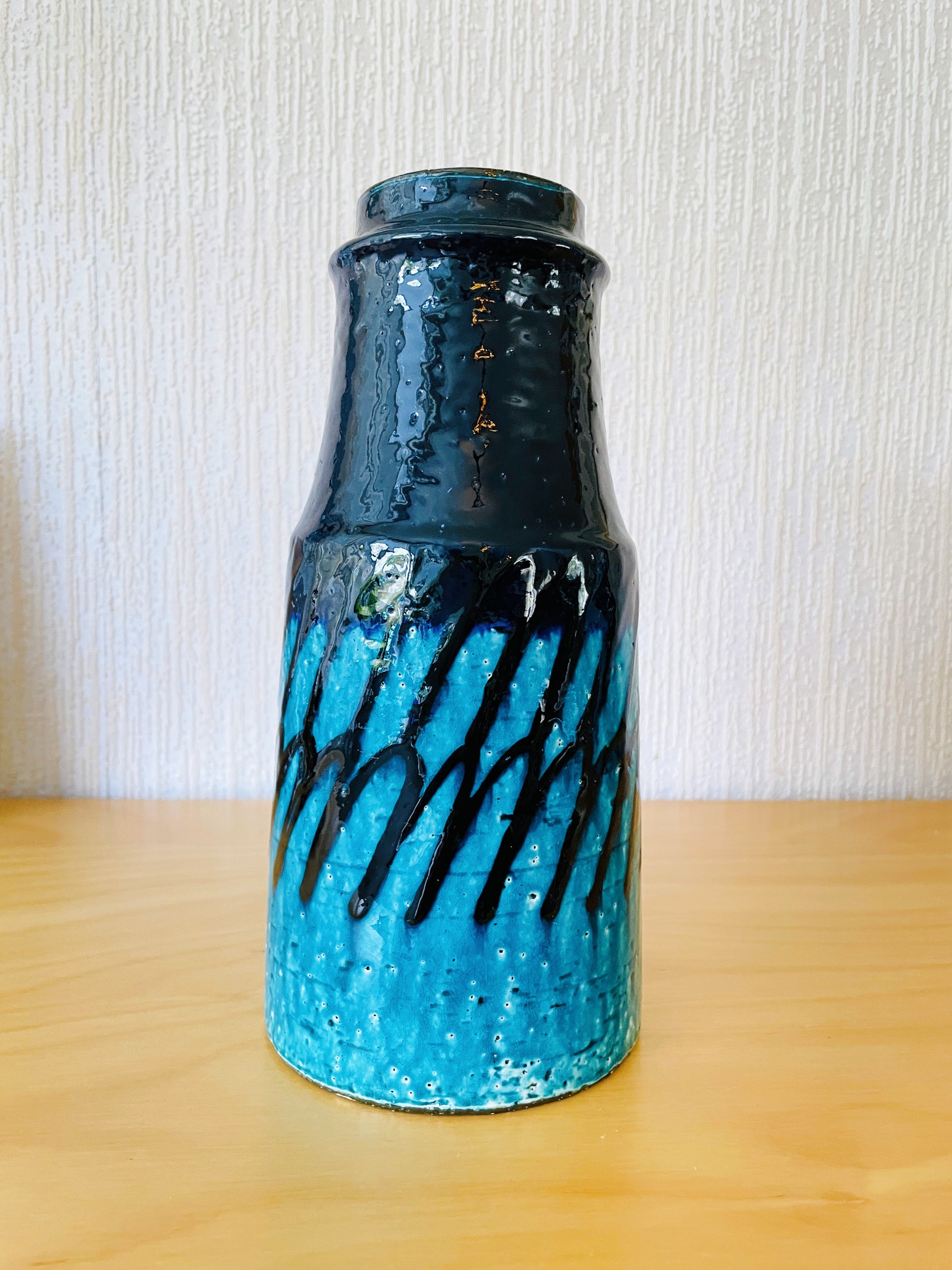 こちらはターコイズブルーの上に少し凹凸がある深い濃いブルーの釉薬を重ね付けし、上部を濃いブルーで引き締めたアクセントのあるインギャの独特のフオルムとデザインです。